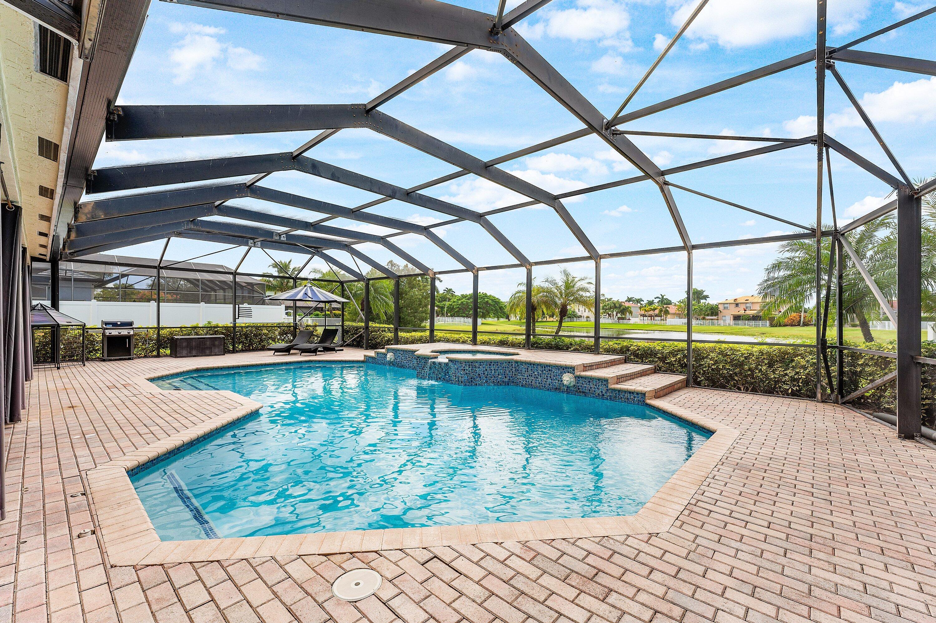 Gunite, Inground, Screened, Spa, Freeform