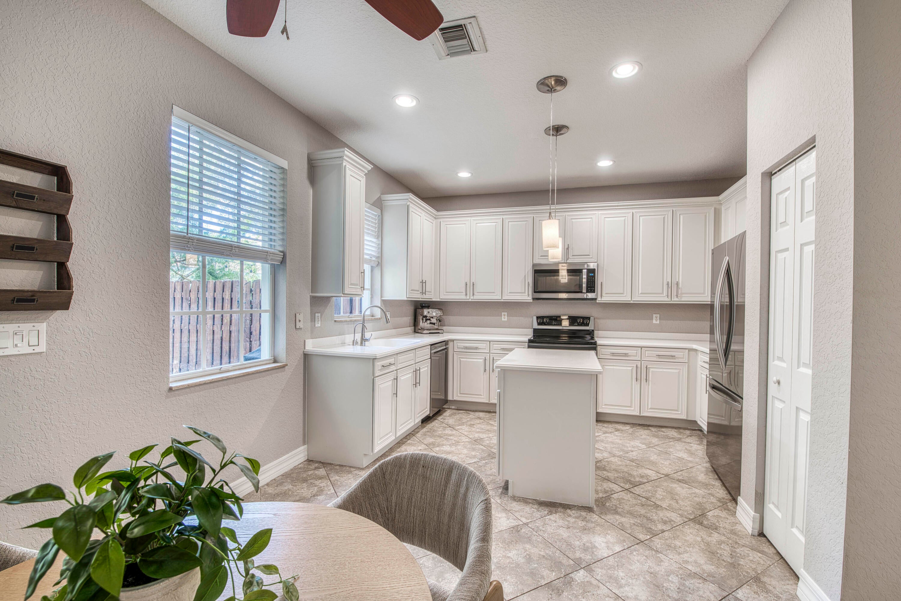 4 bedrooms, in Jupiter, for this price? Unheard of! This elegant, END unit is light, bright, and has views of a peaceful lake! This is townhouse living that feels like a separate home: downstairs hosts all your common spaces, including kitchen, breakfast nook, dining, living, and adorable outdoor courtyard. Upstairs, the square footage offers a split bedroom floorplan: the primary hosts his and her closets and an en suite 5-piece bath, 2 more bedrooms with jack & jill bath, and 4th bed perfect for a nursery or office space. Roof is 2025, AC 2021, water heat 2023, protected with impact glass upstairs and panels down. Botanica is serving location envy- enjoy walking under mature trees with sounds of the lake's fountain, right in the heart of Jupiter.