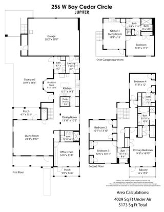Welcome to Botanica, one of Jupiter's most coveted communities, where charm, convenience, and luxury converge. This exceptional courtyard estate is among the largest and most desirable models offered, encompassing 5,173 total square feet, with 4,029 square feet under air. Designed for both gracious living and effortless entertaining, the residence features 6 bedrooms, 5.5 bathrooms, and a 3-car garage, including a private guest suite above the garage. The guest suite spans approximately 660 sqft and is fully equipped with its own kitchen, washer and dryer, private entrance, and living area--ideal for extended family, guests, or a private home office.Inside the main residence, soaring ceilings, expansive living spaces, and abundant natural light create a warm and inviting atmosphere.The chef's kitchen serves as the heart of the home, seamlessly complemented by a butler's pantry that flows into the formal dining area perfect for hosting intimate dinners or large gatherings. And let's not forget all fresco dining in the tropical palm tree courtyard! Botanica's central Jupiter location offers unmatched convenience, just minutes from the hospital, A-rated schools, pristine beaches, world-class golf, and premier shopping and dining. This is a rare opportunity to enjoy refined living in a community known for its character, walkability, and timeless appeal. Botanica is nestled alongside the Botanical Greenway Belt, a 60-acre natural preserve that weaves throughout the community with serene lakes and native Florida scrub. Shaded by mature oaks and lined with inviting sidewalks, Botanica offers an idyllic setting for every lifestyle. All information is deemed reliable and subject to errors, omissions and change without notice. All measurements are approximate.
