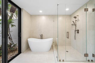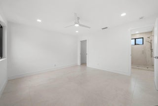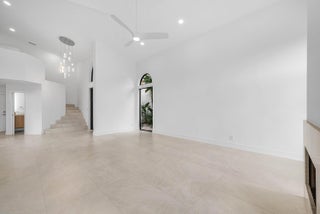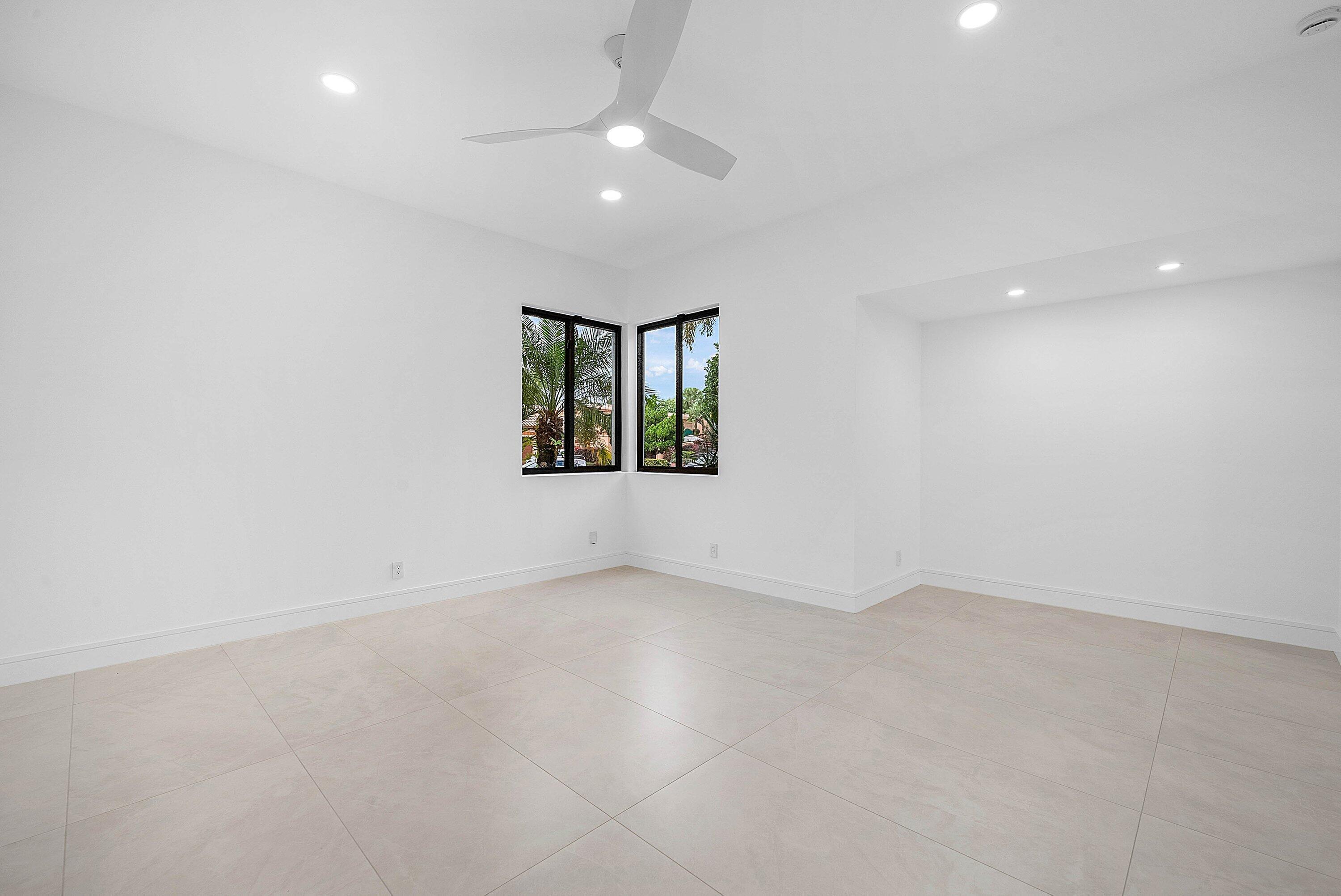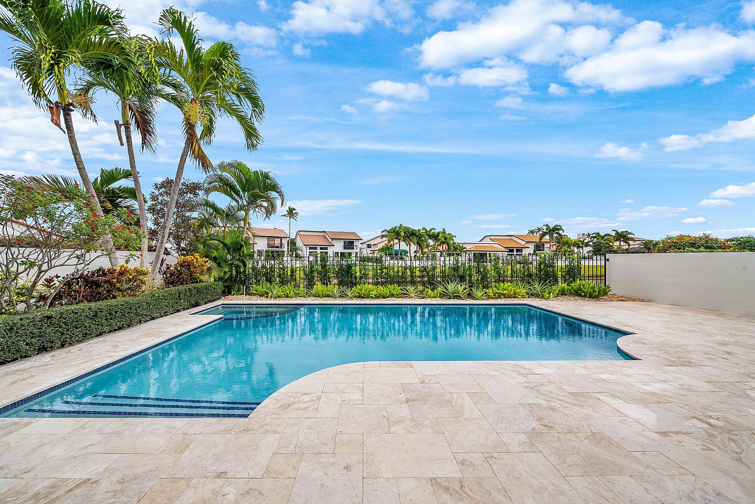 Stunning, and fully renovated 3 bedroom, 2.5 bath residence located in the gated Villa Flora section of Boca Pointe (optional membership). This light-filled, two-story home has been upgraded with high-end premium finishes throughout. A warm modern contemporary design with a calm, elevated feel. Spacious primary suite on the first level featuring a freestanding tub, glass shower doors and double vanity. New porcelain tile flooring runs throughout, complemented by the custom kitchen with all new cabinetry, quartz countertops, and new appliances. Jack and Jill bathroom and loft upstairs. The private outdoor space features a fully refurbished pool, marble pool deck, and updated landscaping. All new impact windows and doors. Custom built-in closets and shelving are installed throughout.Other major upgrades include new plumbing supply lines, two new air conditioning systems, large sections of the duct work replaced, impact garage door and garage door opener, washer and dryer with custom laundry cabinetry, a new flat roof in the front area of the home, an epoxy finished garage floor, an upgraded pool heater. Boca Pointe offers gated security and beautifully maintained grounds, with optional memberships available for golf, tennis, fitness, and social amenities.