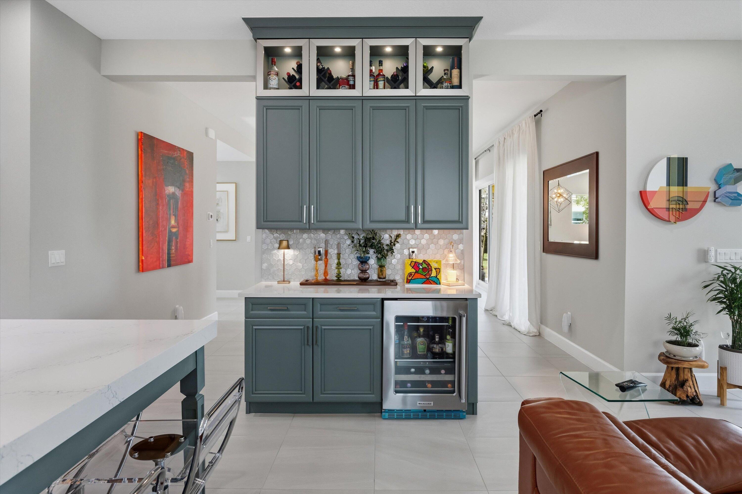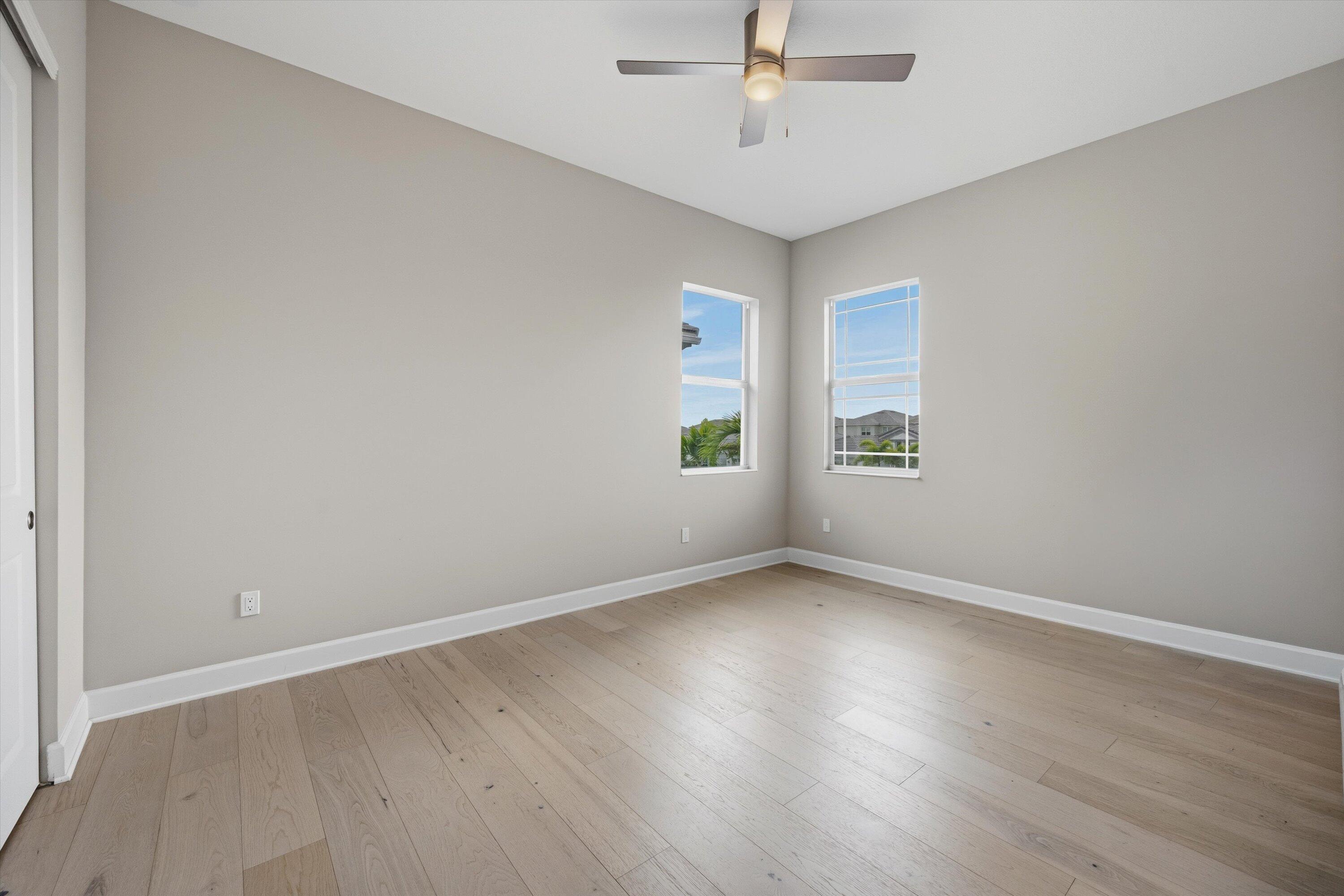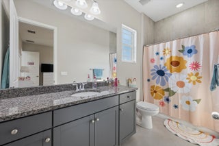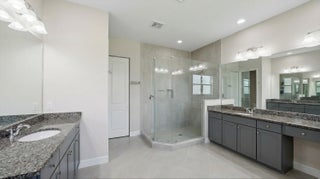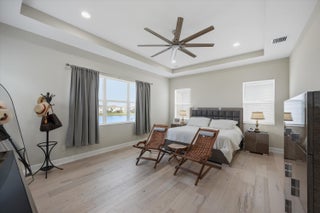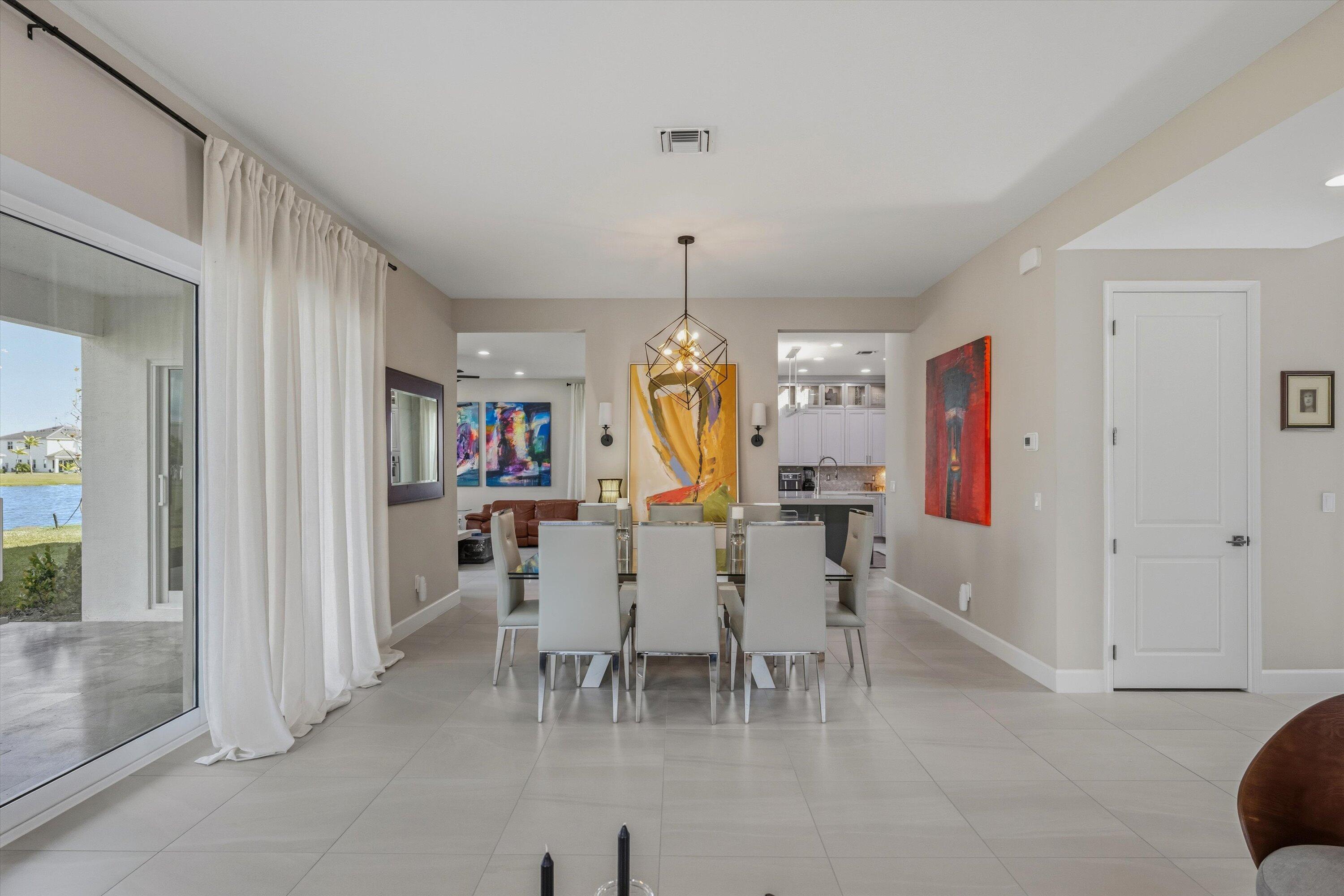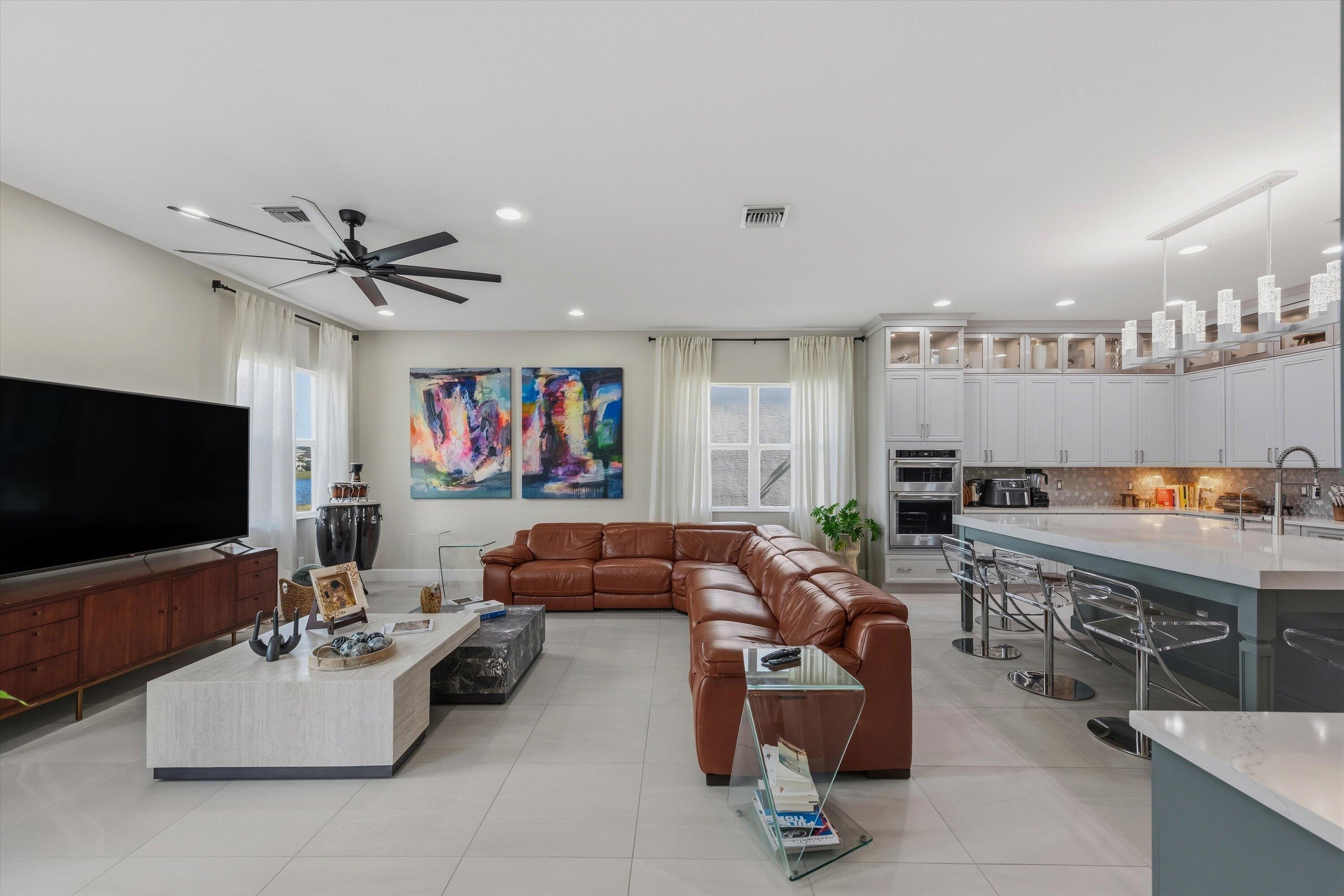 ** PRICED FOR A QUICK SALE ** Welcome to this stunning Kestrel Grand model in The Orchards at Westlake, offering 3,979 Living sq.ft of beautifully upgraded living space with 6 bedrooms, 4.5 bathrooms, a 3-car garage, and an impressive two-story layout designed for both everyday comfort and entertaining. From the moment you arrive, you'll notice the great curb appeal and once inside, you're welcomed through double entry doors into a grand foyer featuring soaring ceilings and a show-stopping spiral staircase with wood treads and wrought-iron railing/balusters. The first floor features crisp, clean walls and tile flooring and hardwood throughout, creating a bright, modern feel.The main living area is spacious and open, with a dedicated dining space and Prestige impact glass sliding doors that bring in natural light and seamlessly connect you to the outdoors. The heart of the home is the designer kitchen, featuring white shaker cabinetry to the ceiling, quartz countertops on the perimeter, and a statement green island topped with a 3" quartz countertop. Beautiful pendant lighting highlights the oversized island with seating for approximately seven. You'll also love the stainless steel appliances, hood, wall oven + wall microwave, farmhouse sink, and a large walk-in pantry for exceptional storage. Just off the kitchen, enjoy an added showpiece: a matching green floor-to-ceiling bar/coffee station with additional storage and a built-in wine cooler perfect for hosting or everyday convenience. Nearby is the large laundry area with a laundry tub, cabinetry, and new washer & dryer. Downstairs also includes a private office with wood flooring and French doors opening to a charming front patio, plus a convenient powder bath. A full guest bedroom suite on the first floor offers excellent flexibility, featuring a private bathroom with a full shower ideal for guests or multi-generational living. Upstairs, enjoy light wood flooring throughout and retreat to the spacious primary suite, filled with natural light and generous layout options. The primary bathroom features a glass-enclosed walk-in shower, dual sinks, gray cabinetry, and granite countertops. The two large custom walk-in closets are separate from the bathroom, offering outstanding storage and organization. Three additional upstairs bedrooms are thoughtfully arranged to suit a variety of needs one is a private ensuite with its own full bath, while the remaining bedrooms are well-sized and share a dual-sink bathroom with coordinating gray cabinetry and granite countertops. A smart upstairs layout provides privacy, comfort, and versatility for family, guests, or home gym/media space. Step outside to the covered lanai and take in the stunning lake views, complemented by elegant marble flooring a perfect space to relax, dine, or entertain. Additional upgrades include a water filtration system and water softener system. A rare opportunity to own a highly upgraded Kestrel Grand in one of Westlake's most desirable neighborhoods schedule your private showing today!