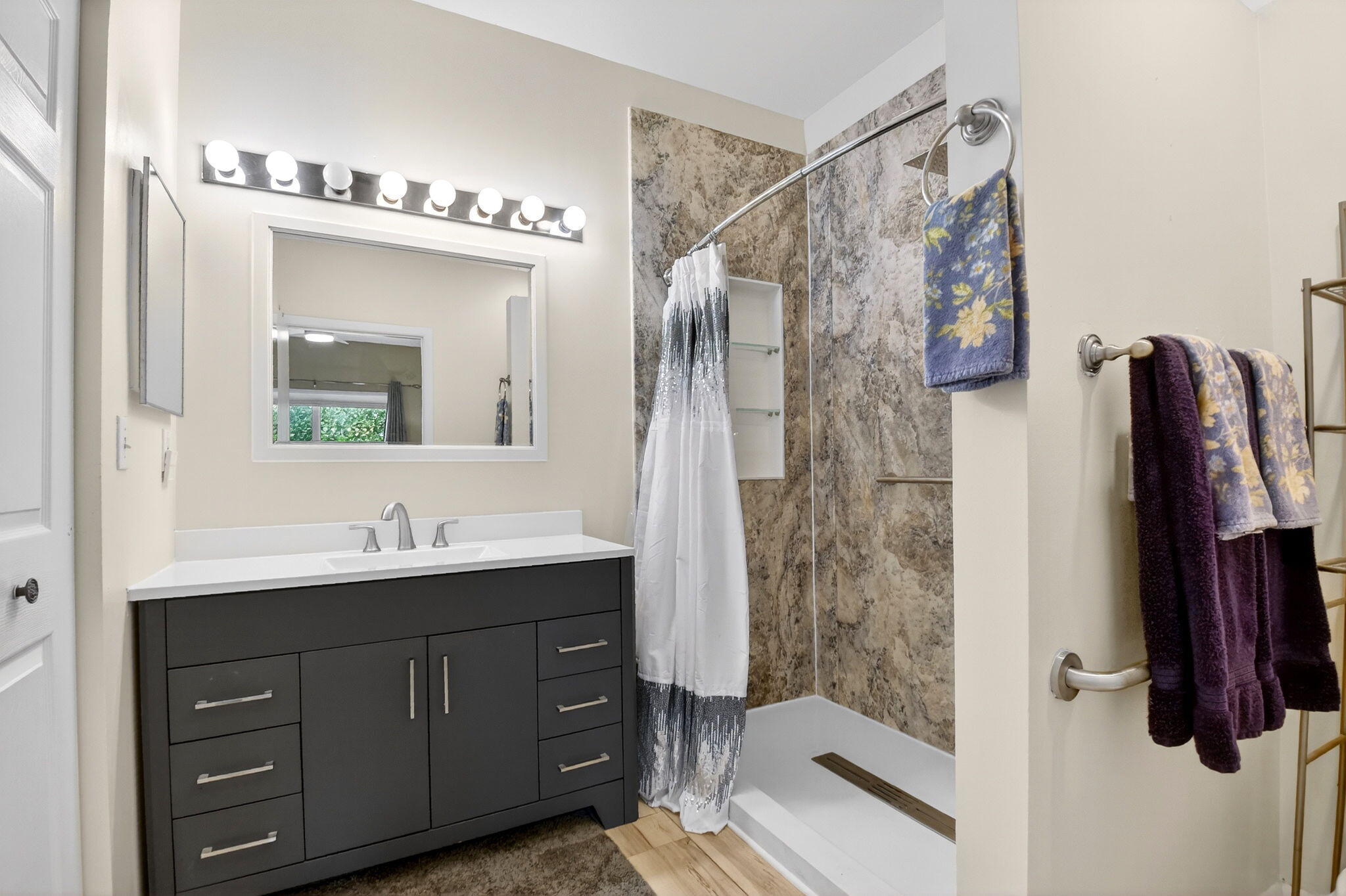 Beautifully updated 3-bedroom, 2-bath villa located in the gated Santa Cruz community of Boynton Beach, an all-age neighborhood offering comfort, privacy, and peace of mind. This move-in-ready home features luxury vinyl flooring throughout, a modern kitchen with granite countertops and stainless steel appliances, and renovated bathrooms including a stylish primary bath with quartz countertops. Enjoy tranquil outdoor living on the private back patio with no rear neighbors. Additional highlights include hurricane impact windows, A/C (2023), roof (2022), and the community is currently undergoing fresh exterior painting. Low-maintenance living in a desirable gated setting close to shopping, dining, and major roadways--perfect for full-time residents or seasonal living. Pet friendly!The HOA provides a truly low-maintenance lifestyle, covering lawn care, pool service, roof maintenance, exterior building painting, building insurance, and upkeep of the common areas. Residents enjoy community amenities including a sparkling pool and peaceful walking pathsperfect for everyday relaxation and outdoor enjoyment. Schedule a showing today!