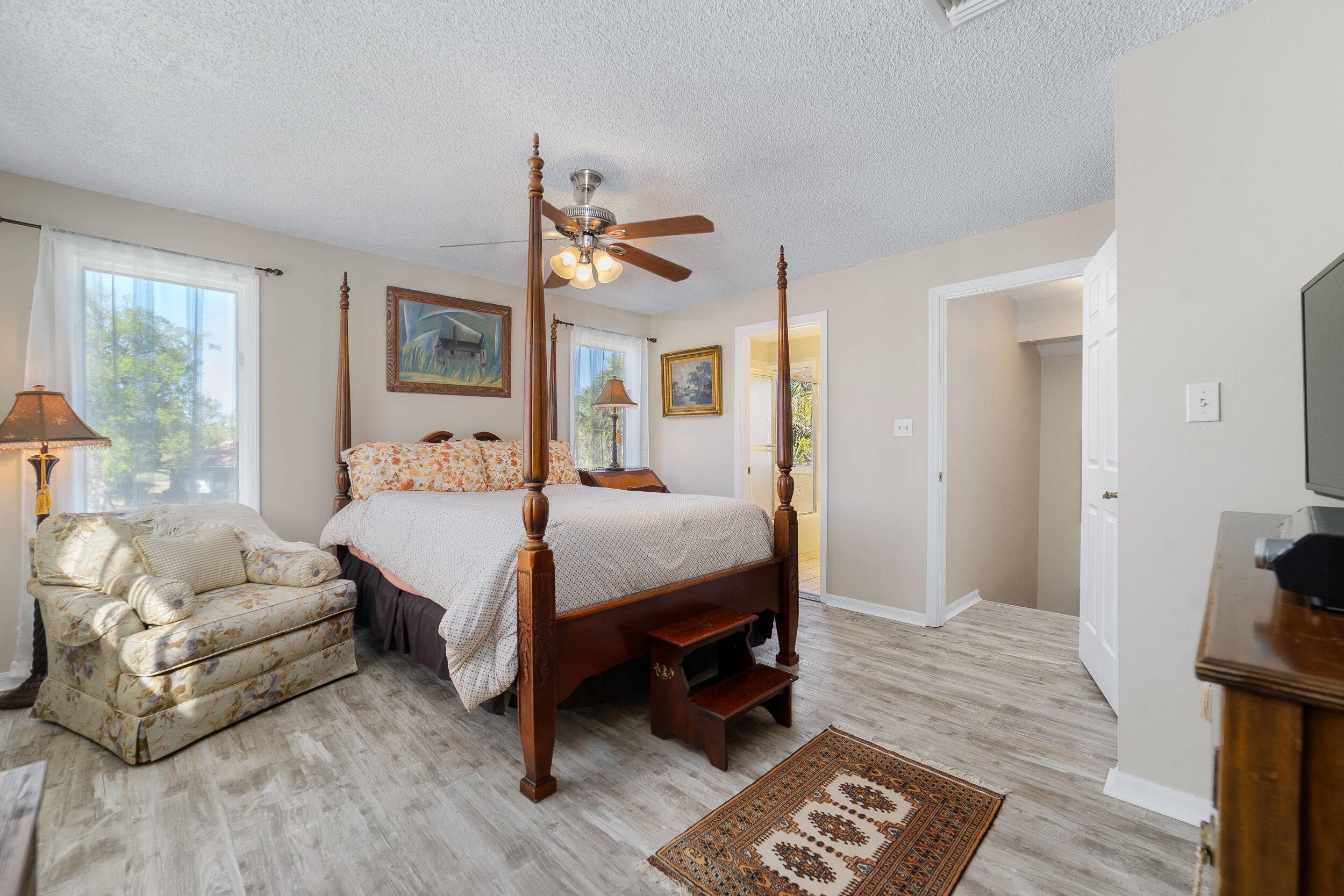 Welcome to Meadowood Golf Course, a spacious 3-bedroom, 3-bath home on a corner lot with partial golf course views and no membership fees. The open living area features vaulted ceilings, exposed brick and a cozy fireplace, creating an elevated yet comfortable gathering space. A renovated kitchen offers granite countertops, stainless steel appliances and direct access to a screened wraparound patio plus a private side patio for true indoor-outdoor living. Each bedroom has its own en suite bath, including a private second-floor guest suite. Updated tile flooring, Andersen windows, two AC units (one new), new tile roof (2025), and an oversized two-car garage, complete this refined residence! Minutes from I-95.Welcome to this spacious 3-bedroom, 3-bath home in the gated Meadowood community, set on a large corner lot with partial golf course views and no membership fees. The open living space offers vaulted ceilings and exposed brick, flowing into a spacious dining area anchored by a cozy fireplace. The renovated kitchen features stainless steel appliances, a gorgeous granite countertop, and direct access to a screened wraparound patio plus a private secondary patio off the kitchen, ideal for entertaining. Each bedroom has its own en suite bath, including a private second-floor suite. Throughout the home, updated tile flooring and Andersen windows provide durability, efficiency, and abundant natural light. Additional highlights include two air conditioning units (one brand new) and an oversized two-car garage with room for a golf cart. Conveniently located near I-95 and the Florida Turnpike.