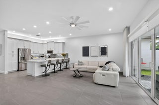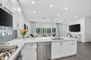 BETTER THAN NEW!!! Experience luxury living in Valencia Sound, one of Boynton Beach's premier 55+ community. This barely lived-in Sapphire model home offers 3 bedrooms and 2 bathrooms with extensive upgrades throughout.Striking contemporary stacked-stone exterior, upgraded landscaping, and a wide walkway welcome you inside to a bright, open floor plan with elegant 24'' x 24'' smoke-gray tile and a gallery-like feel. The upgraded kitchen features quartz countertops, gas cooking, upgraded appliances, and a glass-tile backsplash.The spacious primary suite includes two custom walk-in closets and a beautifully upgraded bath with extra cabinetry and quartz counters.Enjoy true indoor-outdoor living with an expanded screened lanai, nearly doubling your living space, complete with a large screen TV, ceiling fans, and an outdoor kitchen with grill and refrigerator. Features of this home include: impact windows, recessed lighting throughout, custom window treatments (motorized shades & plantation shutters), upgraded Daikin A/C, custom closets, built-in desk and entertainment unit, upgraded lighting, smart home features (keyless entry, Ring camera, smart switches), Tesla charger, gutters, and more. Move-in ready and impeccably upgraded and just a short walk to the clubhouse! This is really a must-see! Experience resort-style living without the country club fees at Valencia Sound, one of GL Homes' premier 55+ communities. This vibrant lifestyle community offers endless opportunities for recreation and socializing, centered around a stunning 38,000+ sq. ft. clubhouse. Amenities include a full-service restaurant with indoor and outdoor dining, an outdoor bar, and a lively sports bar/lounge featuring billiards, music, dancing, and happy hours. Outdoor amenities include a resort-style pool with cabanas and ample seating, a lap pool, resistance pool, hot tub, and kiddie pool. Residents also enjoy three card rooms, an art studio with classes, a cooking studio, and a grand ballroom for shows and events, along with countless clubs and activities to suit every interest. For sports enthusiasts, the community features 11 lighted pickleball courts, 6 lighted tennis courts, 4 lighted bocce courts, a pro shop, and a full calendar of sporting events. Valencia Sound is conveniently located just a short drive to downtown Delray Beach, Boca Raton, Wellington, and West Palm Beach, offering easy access to dining, beaches, golf, theaters, shopping, and parks.