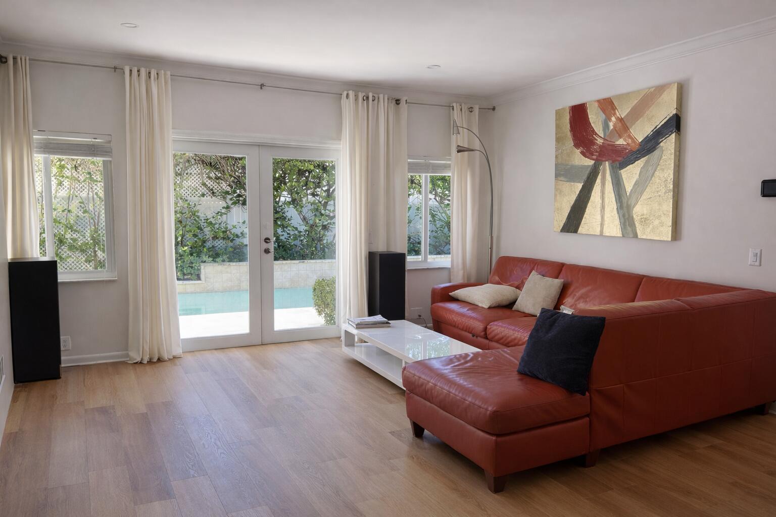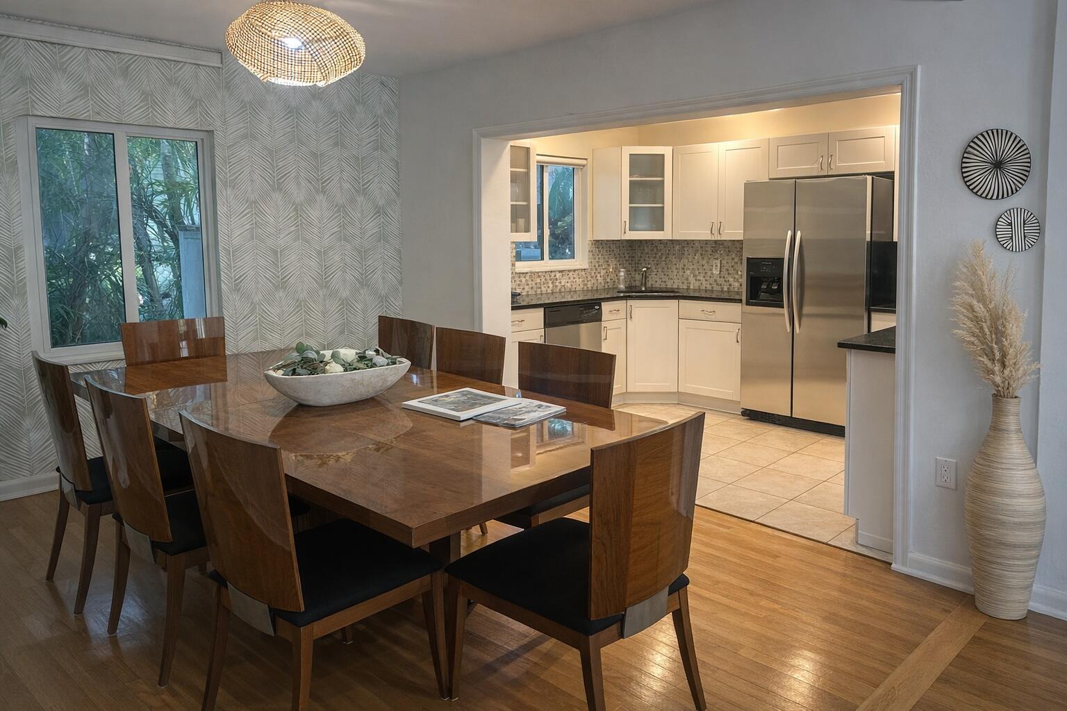 Available for rent at $10,000/month.Beautifully updated 2-bed, 2-bath mid-century modern home in the highly sought-after SoSo (South of Southern) neighborhood of West Palm Beach. Features include vaulted ceilings with exposed beams, hardwood floors, an updated kitchen with stainless-steel appliances, and abundant natural light throughout. Enjoy a private tropical backyard with a heated saltwater pool, perfect for entertaining or relaxing. Detached carport, central AC, and prime location just minutes from downtown, the Intracoastal, Palm Beach, and PBI. This rental is AVAILABLE FEBRUARY, MARCH, and APRIL 2026!