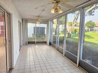 Come see this open and spacious 2 bedroom plus a den / 2 bathroom ground floor unit with a fantastic lake view in the HOPA Community of Palm Isles. As you enter, you will notice the large living / dining room combo that is perfect for entertaining. Both bedrooms are spacious and the primary bedroom has a walk-in closet and an updated bathroom vanity with a stone counter. The Florida Room is perfect for sipping your morning coffee or reading a book, while taking in that wonderful view. This unit has a covered parking spot and a storage area! Palm Isles is a gated community that features a tremendous amount of amenities and activities such as a multi-million dollar clubhouse, grand party rooms, a 600 seat performance theatre, indoor and outdoor pools, fitness, tennis courts and much more!
