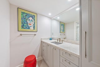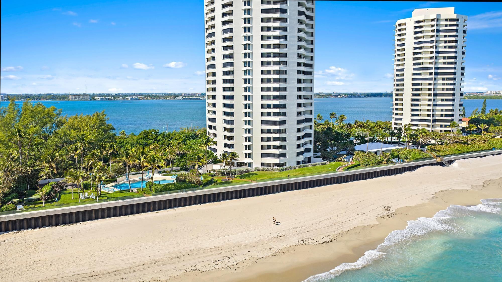 Rarely does oceanfront living offer this much room to breathe--discover one of Singer Island's largest floor plans set within 900 feet of pristine, private beach frontage at Sea Winds. Experience resort-style coastal living in this 2-bedroom, 2-bath unit, offered fully furnished and turnkey. No expense was spared in this exceptional renovation, with high-end designer finishes found throughout. Taken down to the studs and meticulously rebuilt, this never-been-lived-in unit was renovated with the most discerning tastes in mind--no detail overlooked.The split floor plan provides privacy for both owner and guests, while water views from every room and double wraparound balconies create an indoor-outdoor living experience. Neutral 3x16 tile flooring flows throughout the residence - no carpet! The kitchen is a true showpiece, featuring Downsview custom cabinetry, quartz countertops, Bosch appliances, a custom designer backsplash, and a built-in wine refrigerator. The generously sized primary suite offers stunning Intracoastal views, an en-suite bath with double vanities, quartz countertops, a dedicated powder counter, and a walk-in frameless glass shower. A spacious walk-in closet with custom built-ins completes the suite. The guest bedroom enjoys sunset water views and features its own beautifully updated bathroom with a tub and frameless glass shower Additional upgrades include a dedicated laundry room with custom built-in cabinetry, all-new designer lighting and ceiling fans, solid-core interior doors, LED recessed lighting with dimmers, new blinds, new custom closet systems, and new storm shutters. Don't miss this rare opportunity to own a fully renovated, turnkey oceanfront residence on Singer Island! Enjoy private beach frontage, two heated pools, tennis, pickleball, a state-of-the-art fitness center, a dog park, 24/7 manned gate and covered garage parking. This is more than a condo, it's a lifestyle!