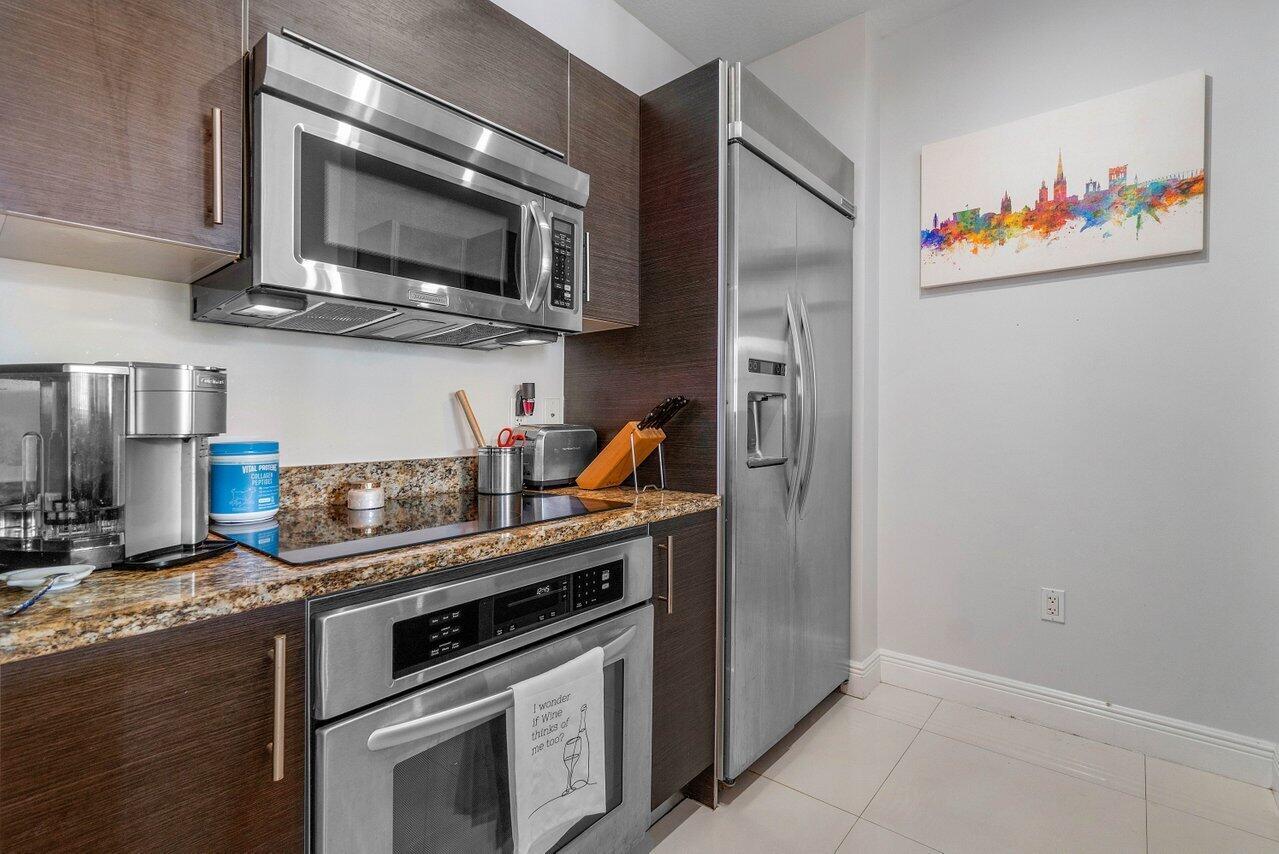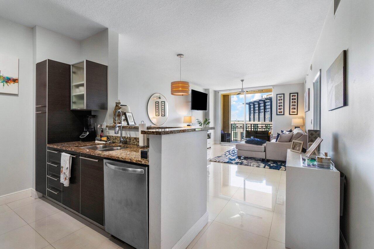 Discover the epitome of urban living at 550 Okeechobee Blvd, Unit 1112, within the prestigious Cityplace South Tower in downtown West Palm Beach. This exceptional 1-bedroom, 1-bathroom residence offers a lifestyle of convenience and sophistication. Situated in the heart of the vibrant Cityplace district, you'll enjoy proximity to shops, restaurants, the Kravis Center, and the Convention Center just steps from your front door. Step inside this elegant urban retreat to find upgraded flooring throughout, creating a warm and inviting ambiance. The kitchen boasts granite countertops and stainless steel appliances, making meal preparation a delight. Resident only amenities include 86' Infinity Edge heated pool, hot tub, fully equipped outdoor kitchen, and fitness center.Pet-friendly building. Free valet parking and 24-hour doorman included.