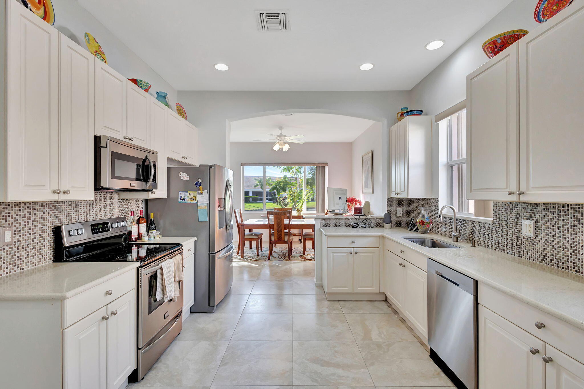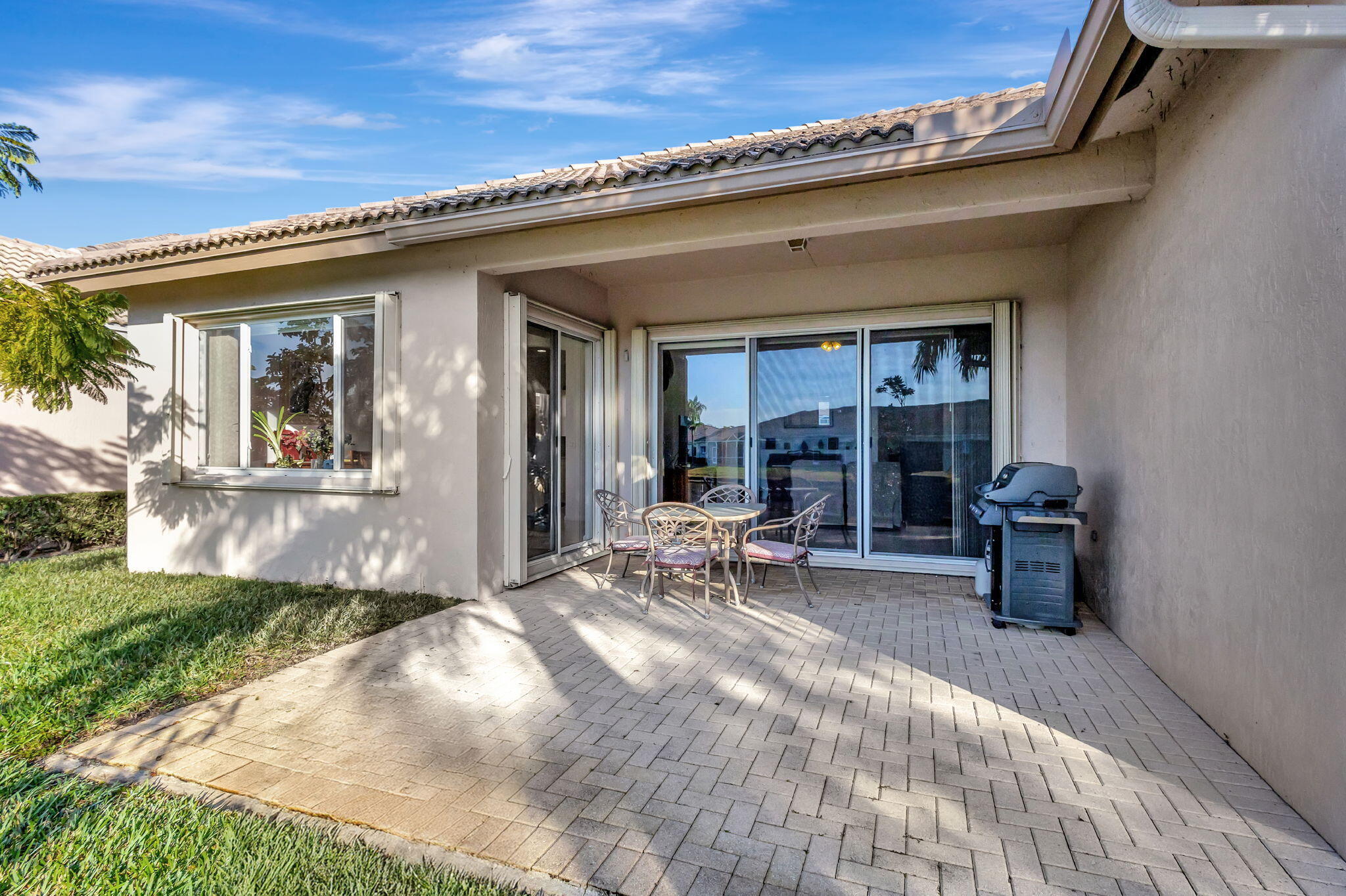 Immaculately maintained 3BD/2BA home in Sailfish Cove featuring a desirable great room floor plan with both a large covered front patio and an expanded covered rear patio, perfect for enjoying morning coffee or evening relaxation while taking in peaceful water views and local wildlife. The upgraded kitchen offers Corian countertops, glass tile backsplash, 42-inch cabinetry, a 5-burner stove, and space for a breakfast table. Easy-to-maintain 24-inch porcelain tile flows throughout the main living areas, complemented by raised panel doors, ceiling fans, and recessed lighting. The primary suite includes two walk-in closets and a spacious bath with raised cabinetry, dual counters, and a Jacuzzi Roman tub. Yes, you deserve it!Located in Baywinds, an active adult community known for its vibrant lifestyle and impressive clubhouse amenities. Residents enjoy a fully staffed clubhouse with a full-time social director, multiple pools including a resistance-walking pool and spa, fitness center, aerobics room, tennis, pickleball, bocce, shuffleboard, billiards, library, media room, locker rooms with saunas, and a ballroom hosting ongoing events and entertainment. A wide variety of clubs and social groups provide endless opportunities to stay active and connected. Baywinds is centrally located near restaurants, shopping, downtown West Palm Beach, major highways, and Palm Beach International Airport, making it easy to enjoy everything South Florida has to offer.