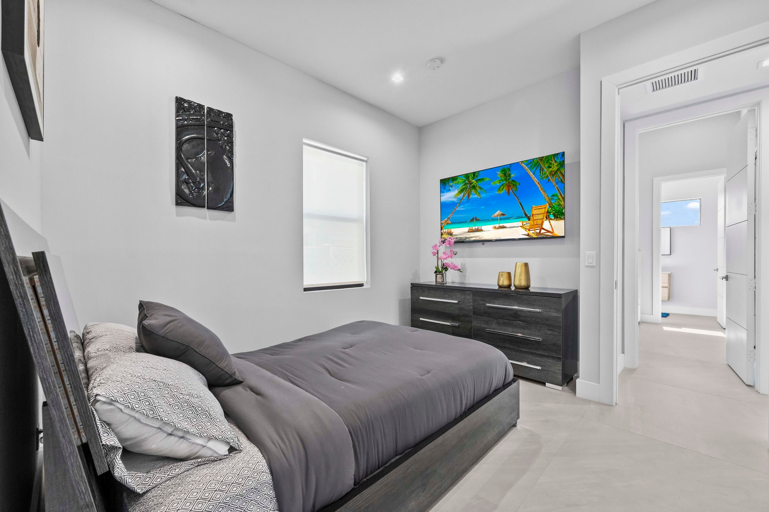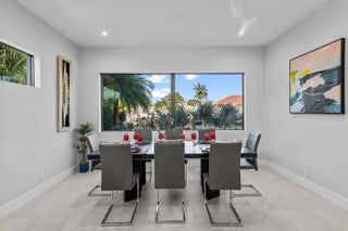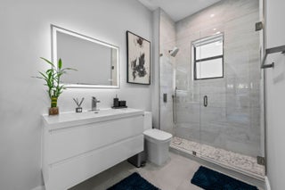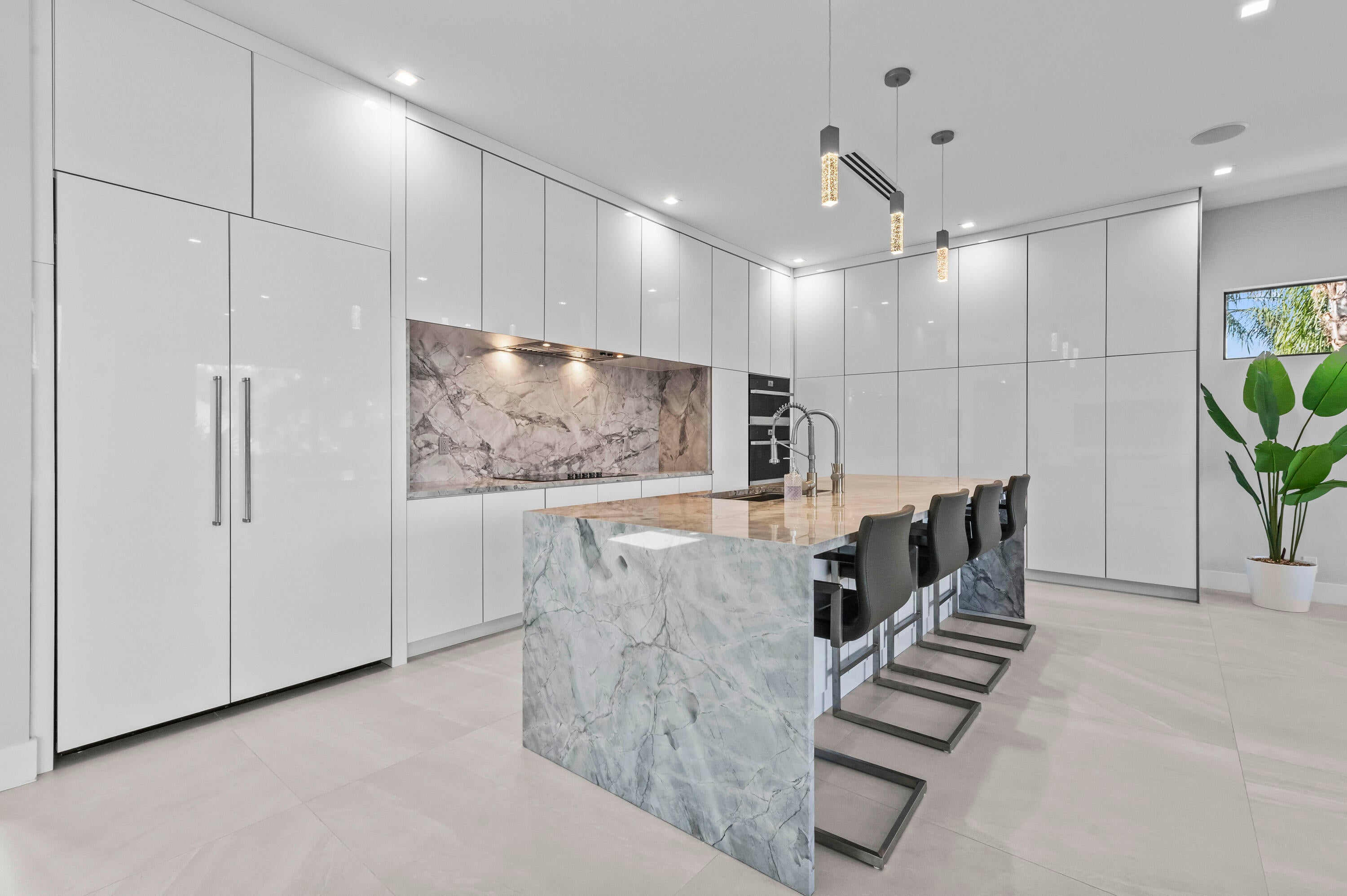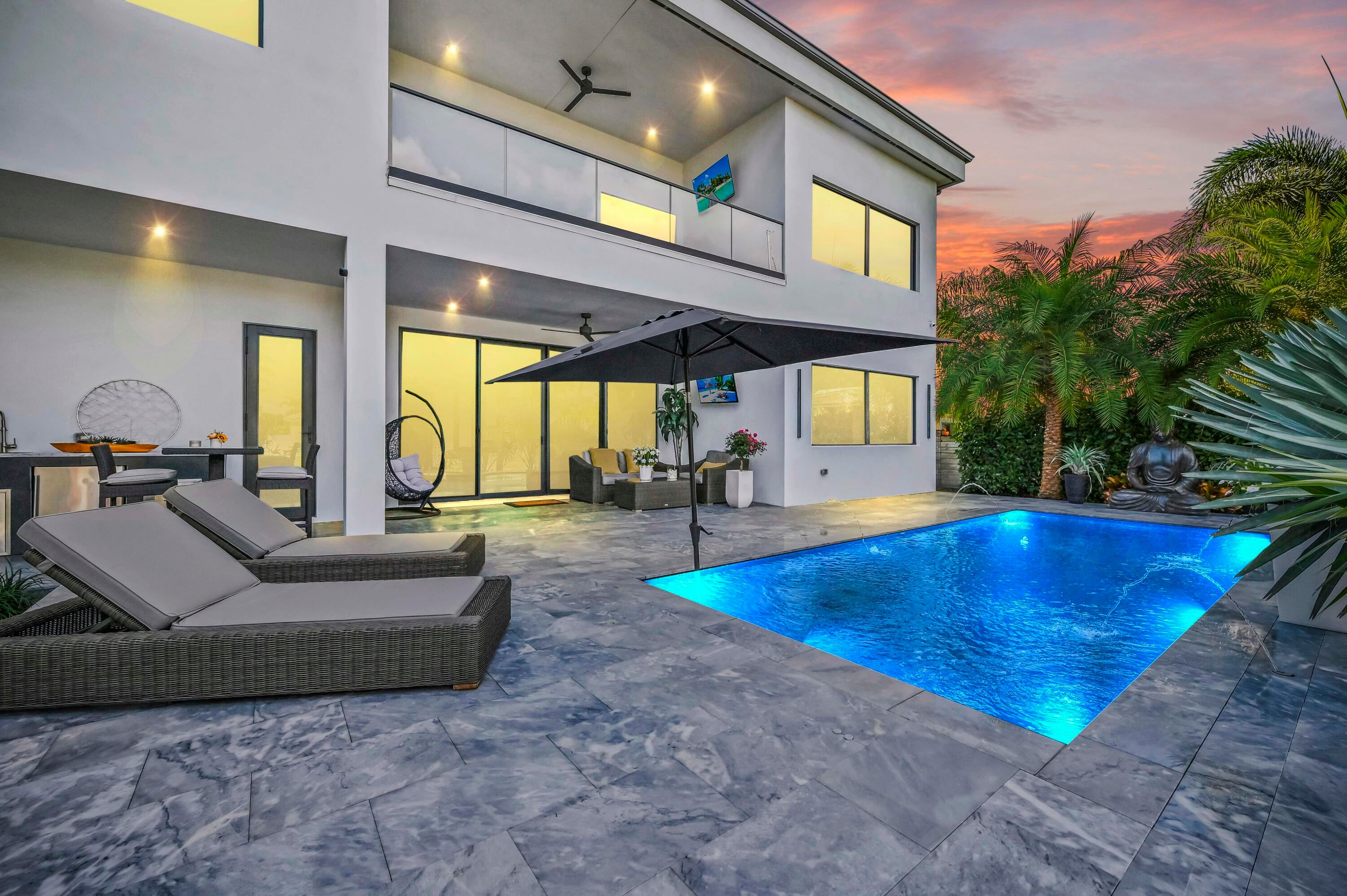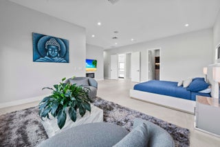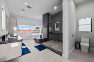 Immerse yourself in modern luxury in this stunning waterfront estate, perfectly positioned on the prestigious Mandarin Isle. A striking architectural presence greets you upon arrival, featuring a manicured geometric driveway and a grand entrance that sets the tone for the sophistication within. Step through the glass doors to discover an open-concept interior bathed in natural light, defined by soaring ceilings, large-format polished tile flooring, and a dramatic floating staircase with glass railings that serves as a centerpiece of modern design.The heart of the home is the sleek European-style gourmet kitchen, boasting high-gloss white cabinetry, a massive waterfall-edge stone island with bar seating, and integrated premium appliances, all flowing seamlessly into the dining area framed by a massive picture window. Retreat to the upstairs sanctuary where the expansive primary suite offers the ultimate in relaxation. This private haven features a large walk-in closet with custom built-ins and a spa-inspired ensuite bathroom complete with a freestanding soaking tub, a frameless glass shower, and breathtaking views of the waterway. Sliding glass doors from the bedroom open to a private glass-railed balcony, the perfect vantage point for enjoying morning coffee while overlooking the serene canal and city skyline. The home's layout is thoughtfully designed to maximize water views from almost every room, creating an atmosphere of tranquility and connection to the outdoors. The outdoor living space is a true entertainer's paradis. Step out to a covered patui featuring a full summer kitchen with a built-in grill, ideal for alfresco dining year-round. The backyard centers around a spectacular, sleek dark-bottom pool with fountains and a sun shelf, surrounded by lush tropical landscaping and Zen-inspired decor that creates a private oasis. Boating enthusiasts will appreciate the private deep-water dock with a boat lift, offering direct ocean access with no fixed bridges, making this the perfect home for enjoying the quintessential Fort Lauderdale yachting lifestyle.