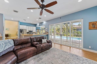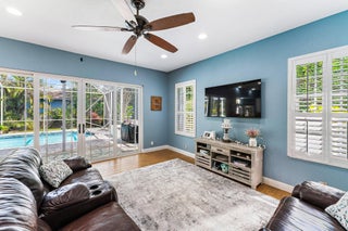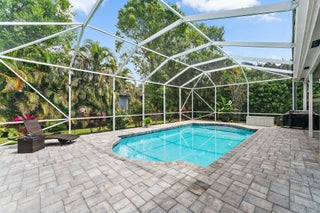 Tucked near the end of a cul-de-sac and surrounded by lush, mature landscaping, this beautifully maintained 3-bedroom, 3-bathroom home offers exceptional privacy and a thoughtfully designed layout. Welcome to The Moorings of Jupiter! The open-concept living spaces are filled with natural light and flow seamlessly to a large screened-in pool perfect for entertaining or enjoying relaxed weekends at home.The primary suite is conveniently located on the first floor and features plantation shutters, a spacious walk-in closet and a spa-like bathroom with a separate shower accented by a mosaic tile and a soaking tub. The main level showcases porcelain tile throughout, coastal backsplash in the kitchen, impact sliders, accordion hurricane shutters, outdoor lighting, a hurricane-rated garage door and one newer AC unit. Upstairs, you'll find two generously sized bedrooms, a fully remodeled bathroom and a versatile loft area. The second floor also offers direct access to a private deck overlooking the backyard and pool. Meticulously renovated and lovingly cared for, this home truly must be seen to be appreciated. Ideally located minutes from beaches, dining, shopping and top-rated schools, this inviting retreat delivers everyday convenience alongside serene privacy.