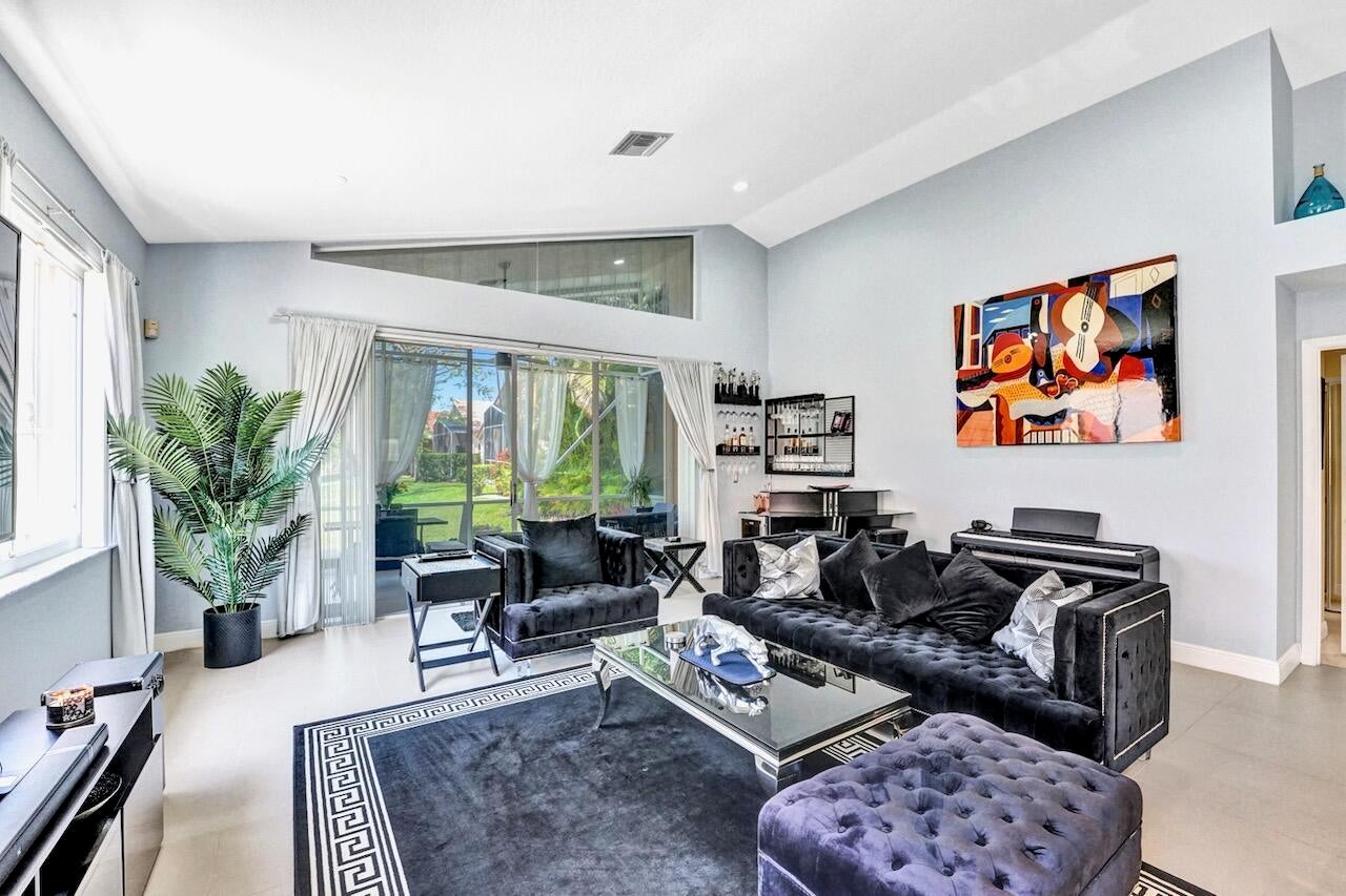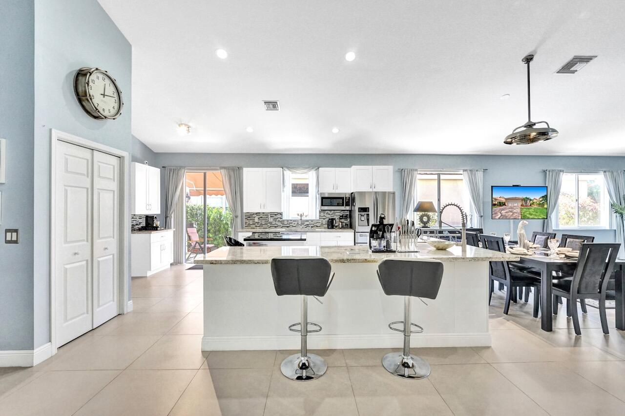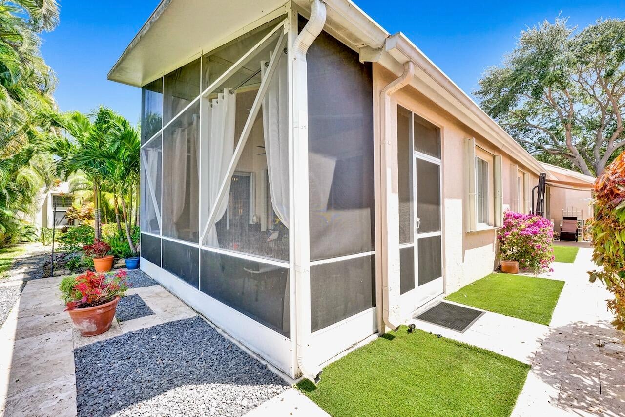 This stunning 3-bedroom, 2-bath home in Indian Spring is truly a showstopper! Completely renovated from top to bottom, this bright and spacious residence features a beautiful open floor plan with 24'' tile flooring, elegant lighting, and thoughtful upgrades throughout. Enjoy serene lake and garden views from your private outdoor living spaces.The spacious kitchen showcases white wood cabinetry, newer stainless steel appliances, granite countertops, and a movable island with ample storage. Both bathrooms have been fully updated (primary bathroom has been updated since these photos), and the enclosed third bedroom offers added privacy and extra storage, with additional hallway storage as well. New carpet has been installed in all bedrooms, and window treatments adorn every room.Additional upgrades include refinished garage floors, pull-down attic stairs, new light plates, a whole house reverse osmosis system and a freshly painted interior & exterior. Major systems have been updated with an A/C installed in 2016, water heater in 2019, garage door opener in 2017, and full accordion shutters added in 2018. The outdoor living space is exceptional, featuring one of the few solid-roof patios in Indian Spring with new 24" tile flooring, lighting, and screens. The garden area includes travertine pavers, astro turf, a water fountain, retractable awning, pergola-style gate and newer fencing creating a private, resort-like retreat. Indian Spring is a non-mandatory membership community, with club membership options available. This gorgeous home is a rare find and an absolute must-see! Property is currently tenant occupied for $3000 per month until May 31, 2026. Listing contains photos prior to tenant taking occupancy- since these photos, the interior and exterior paint has been updated and the primary bathroom has been completely remodeled. INFORMATION HEREIN NOT GUARANTEED AND SUBJECT TO ERRORS & OMISSIONS. ALL MEASUREMENTS APPROXIMATE.