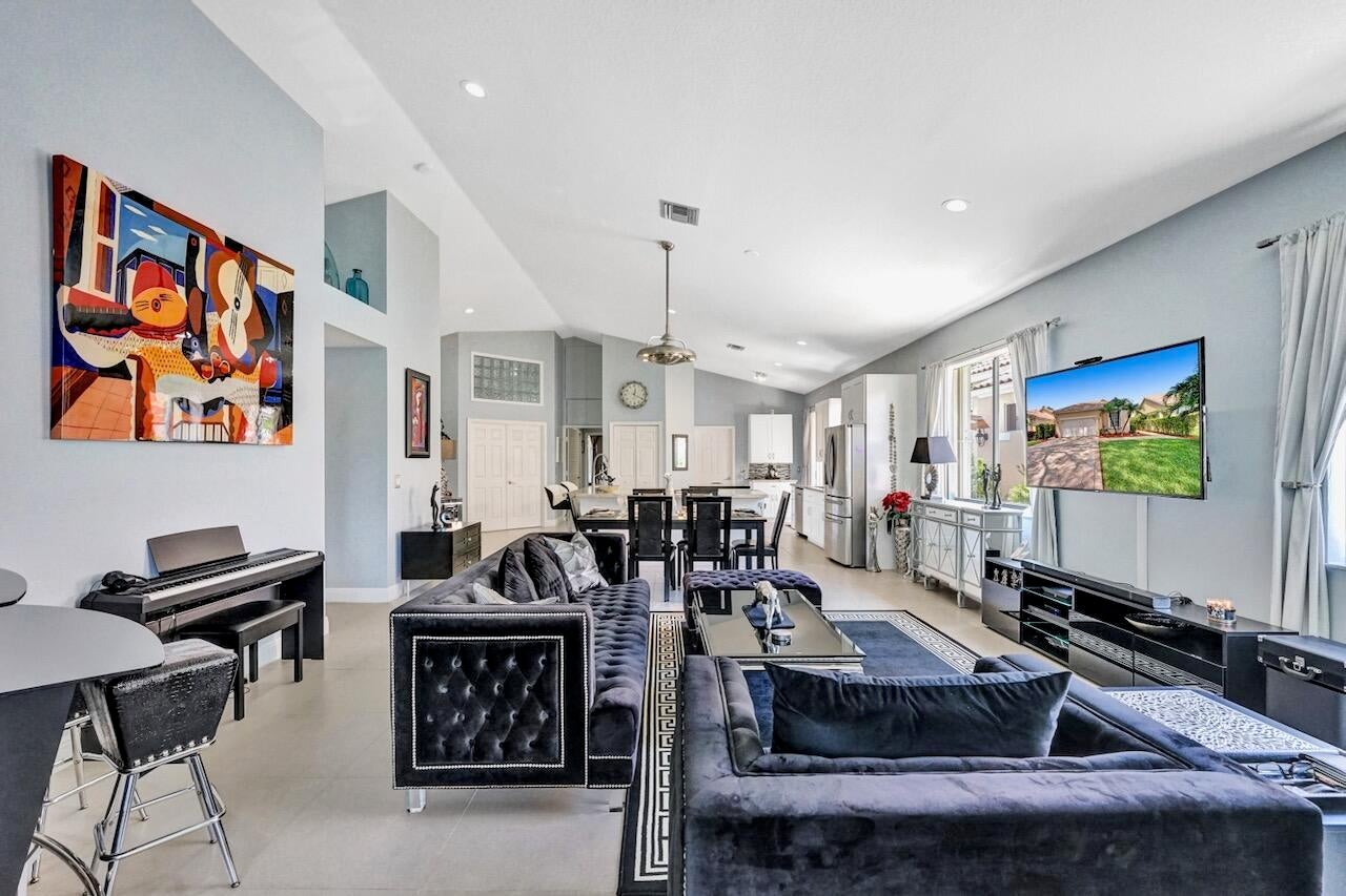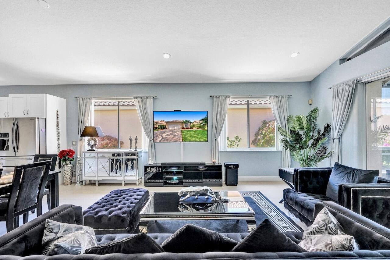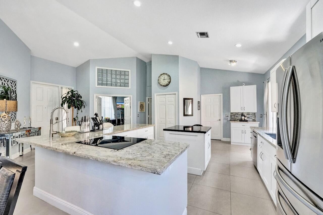 This stunning 3-bedroom, 2-bath home in Indian Spring is truly a showstopper! Completely renovated from top to bottom, this bright and spacious residence features a beautiful open floor plan with 24'' tile flooring, elegant lighting, and thoughtful upgrades throughout. Enjoy serene lake and garden views from your private outdoor living spaces.The spacious kitchen showcases white wood cabinetry, newer stainless steel appliances, granite countertops, and a movable island with ample storage. Both bathrooms have been fully updated (primary bathroom has been updated since these photos), and the enclosed third bedroom offers added privacy and extra storage, with additional hallway storage as well. New carpet has been installed in all bedrooms, and window treatments adorn every room.Additional upgrades include refinished garage floors, pull-down attic stairs, new light plates, a whole house reverse osmosis system and a freshly painted interior & exterior. Major systems have been updated with an A/C installed in 2016, water heater in 2019, garage door opener in 2017, and full accordion shutters added in 2018. The outdoor living space is exceptional, featuring one of the few solid-roof patios in Indian Spring with new 24" tile flooring, lighting, and screens. The garden area includes travertine pavers, astro turf, a water fountain, retractable awning, pergola-style gate and newer fencing creating a private, resort-like retreat. Indian Spring is a non-mandatory membership community, with club membership options available. This gorgeous home is a rare find and an absolute must-see! Property is currently tenant occupied for $3000 per month until May 31, 2026. Listing contains photos prior to tenant taking occupancy- since these photos, the interior and exterior paint has been updated and the primary bathroom has been completely remodeled. INFORMATION HEREIN NOT GUARANTEED AND SUBJECT TO ERRORS & OMISSIONS. ALL MEASUREMENTS APPROXIMATE.