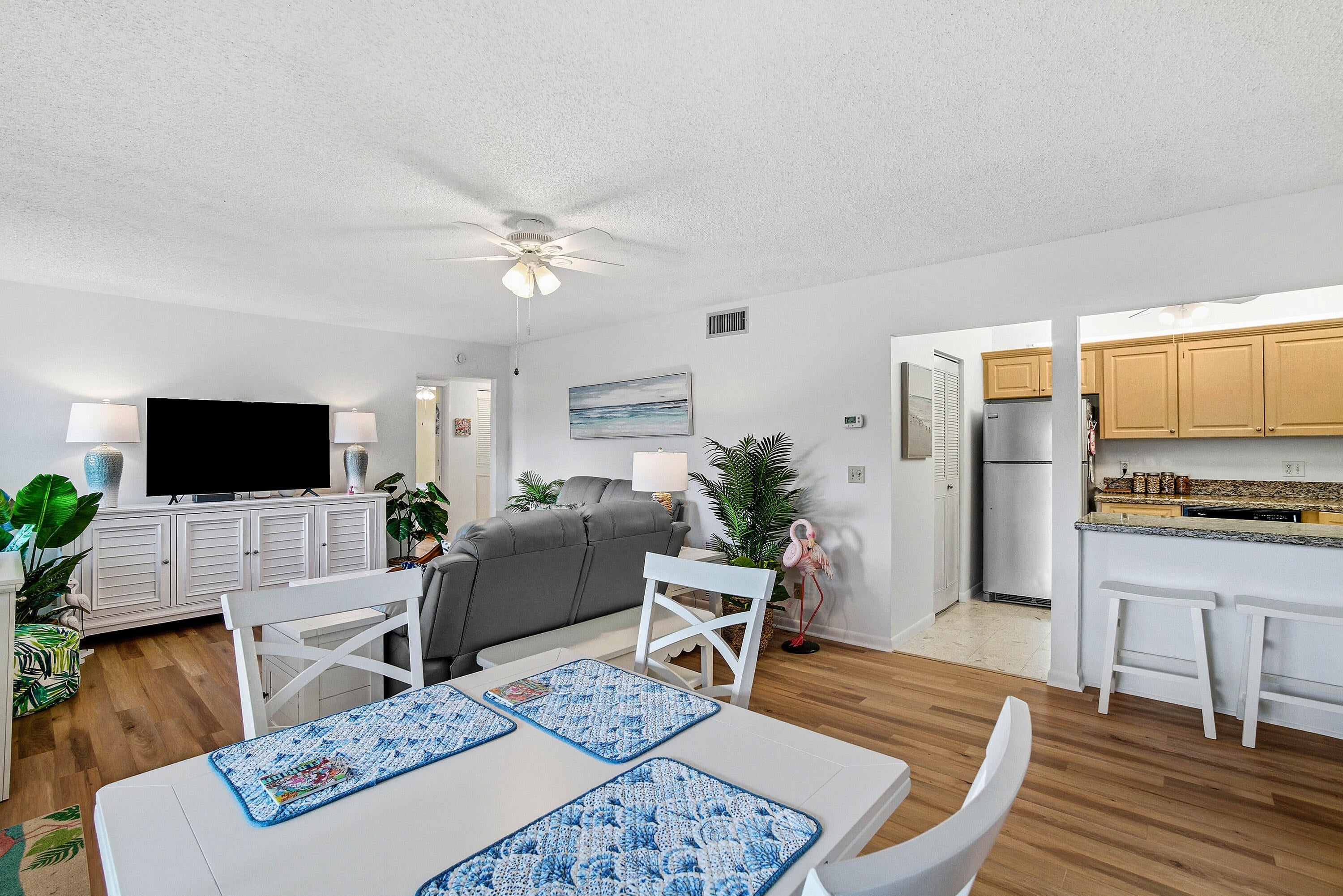 Welcome to this beautifully updated, beach-style condo that's move in ready! This home boasts luxury vinyl and tile floors throughout, walk in closets, beautiful bathrooms, and full accordion storm protection. The spacious enclosed patio offers serene views of the clubhouse and pool, perfect for enjoying your morning coffee or evening sunsets. Other major updates include a newer A/C, water heater, and roof. Community amenities include pickleball, shuffleboard, tennis courts, bocce ball and a sparkling pool. Conveniently located near shopping, dining, and airports. Don't miss the opportunity to make this stunning condo your new home! Offered fully furnished.