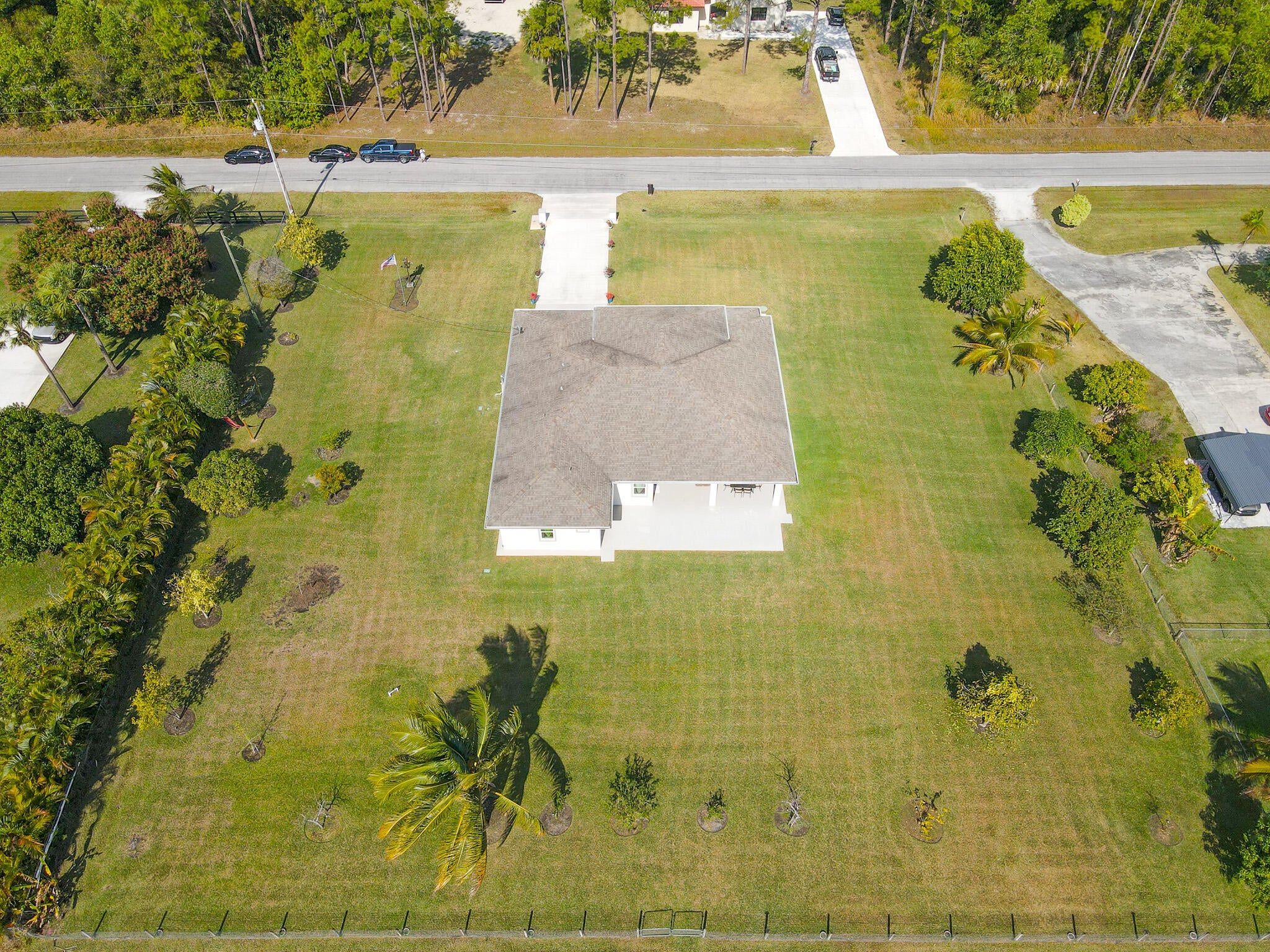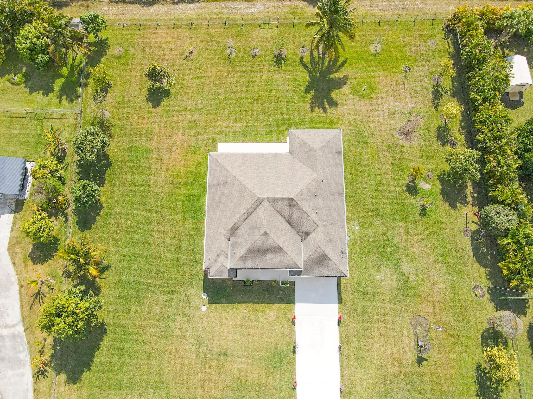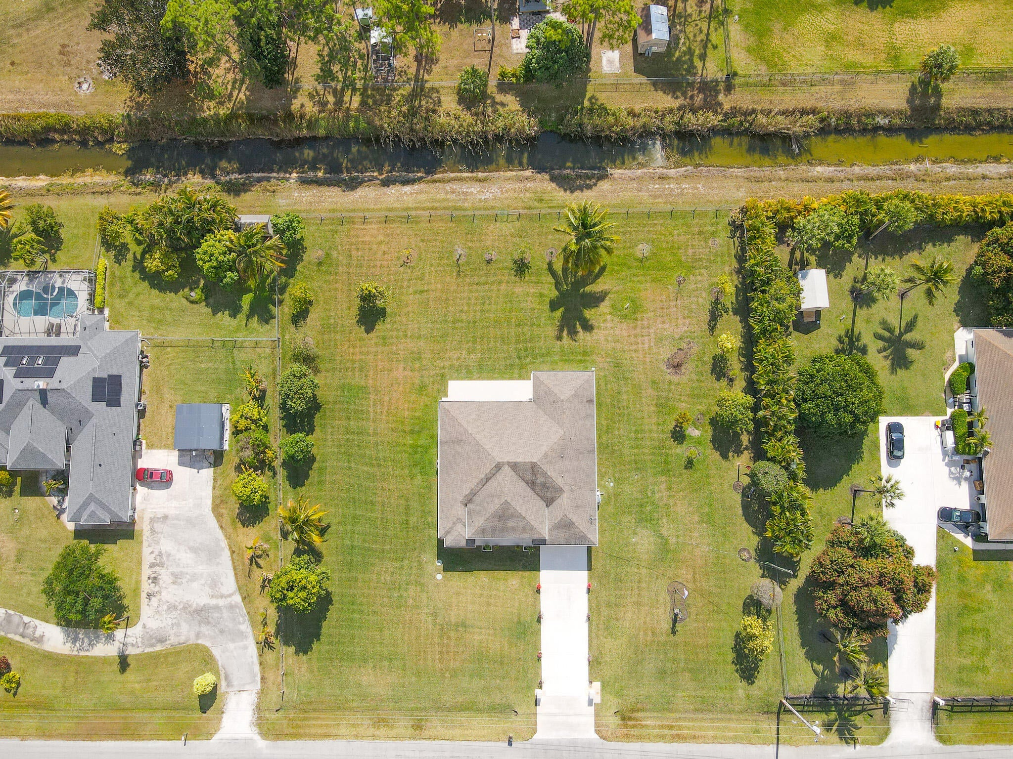 This 2015 constructed Synergy Home is perfectly Located on the North end of The Acreage down a paved road on a 1.3 Acre Estate offering the perfect blend of security, privacy, and functionality. . This beautiful Home comes equipped with Full Impact Windows and a Fully upgraded Water Softening System, it was just recently painted inside and outside with a new Trane AC unit just installed in 2025. This stunning residence boasts a Split floor plan with the Master bedroom and office/den to one side, 2 other guest bedrooms and a bathroom to the other side with an additional In-Law bedroom and bathroom with its own separate private entry. A wealth of natural light highlights this thoughtfully designed home with coffered ceilings throughout, Indoor laundry room completes your comfortableliving space. Enjoy the oversized, covered Patio overlooking an abundance of different trees that include Coconut, Mango, Guava, Jamoon, Maranga, Forbidden Fruit, Cashew, Plum and Cherry. Create your own private oasis with an expansive yard for endless possibilities, whether you envision a tranquil retreat or an entertainer's paradise! With proximity to world-class golf at Sandhill Crane Golf Club, shopping at The Gardens Mall, and dining along the Jupiter inlet, this private property combines country living and all the perks of a coastal luxury lifestyle. Don't miss this rare opportunity to own a piece of paradise in one of Palm Beach County's most coveted locations, with just a short 30 minute drive to PBI, the beautiful beaches of Singer Island and the desirable towns of Jupiter and Palm Beach Gardens. Lastly you get the best of both worlds enjoying the newly constructed Avenir Town Center with the luxury of living on a 1.3 Acre lot!
