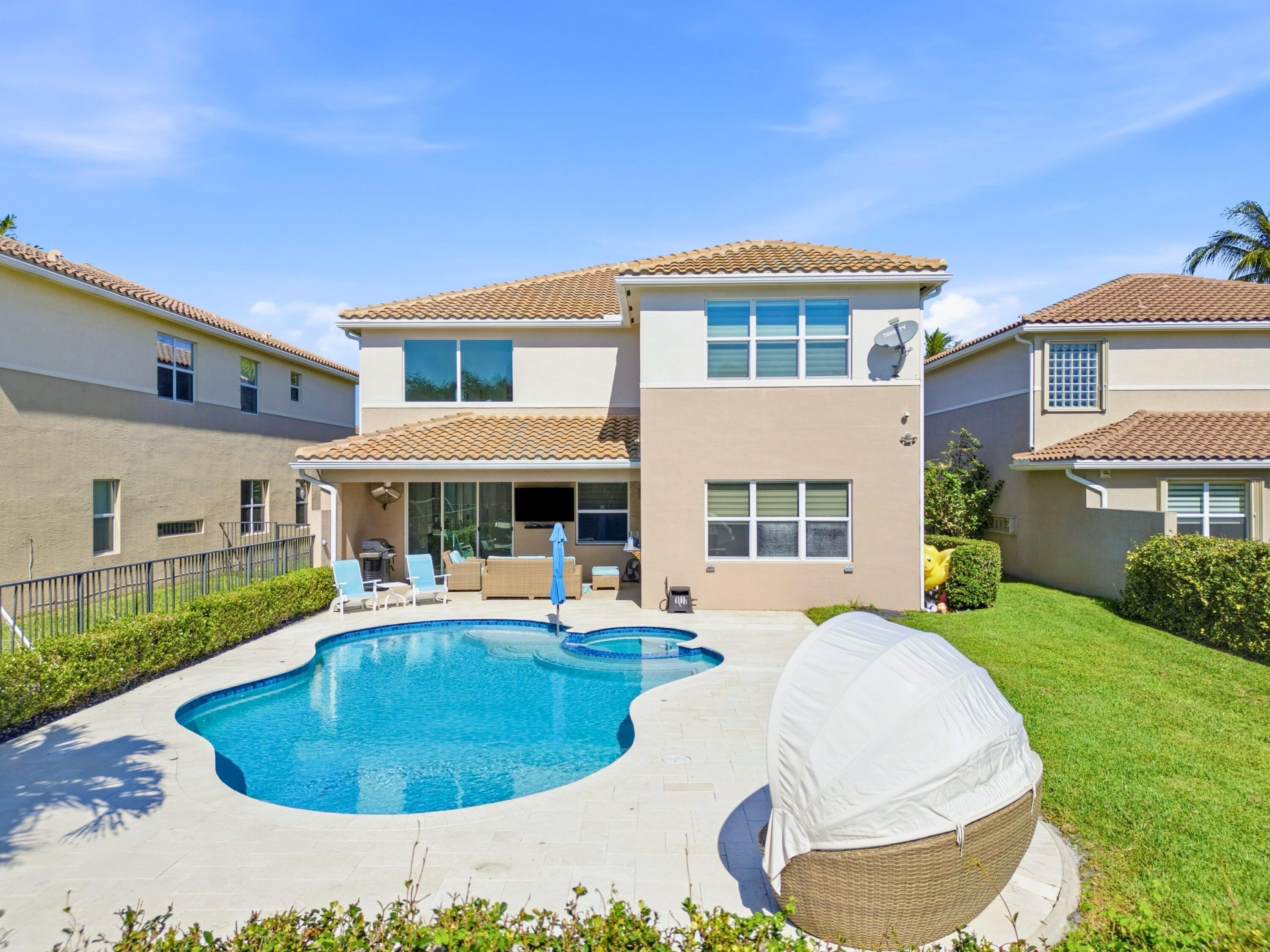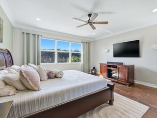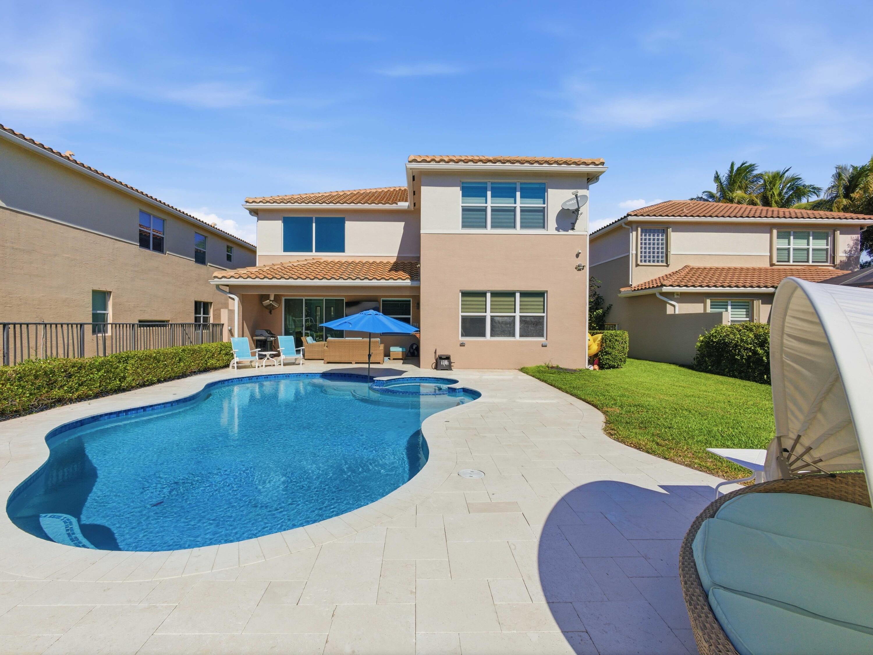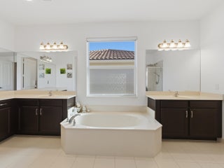 Stunning Isabella model 4BR/4BA home with den and upstairs loft in a gated community in Canyon Trails, offering spacious open floor plan and numerous upgrades. Features include an open concept kitchen with stainless steel appliances and granite countertops, tile flooring throughout, vaulted ceiling, and abundant natural light. Enjoy outdoor living with a heated saltwater inground pool, tile decking, and a partially covered patio ideal for entertaining w/ fenced in yard. Additional highlights include full impact windows, central vacuum, house generator, security system, cameras, three car garage, under ground propane tank and pest control system. Over size lot, wine wall and coffee pantry. Clubhouse within walking distance with fitness center, pool and activities for all ages.