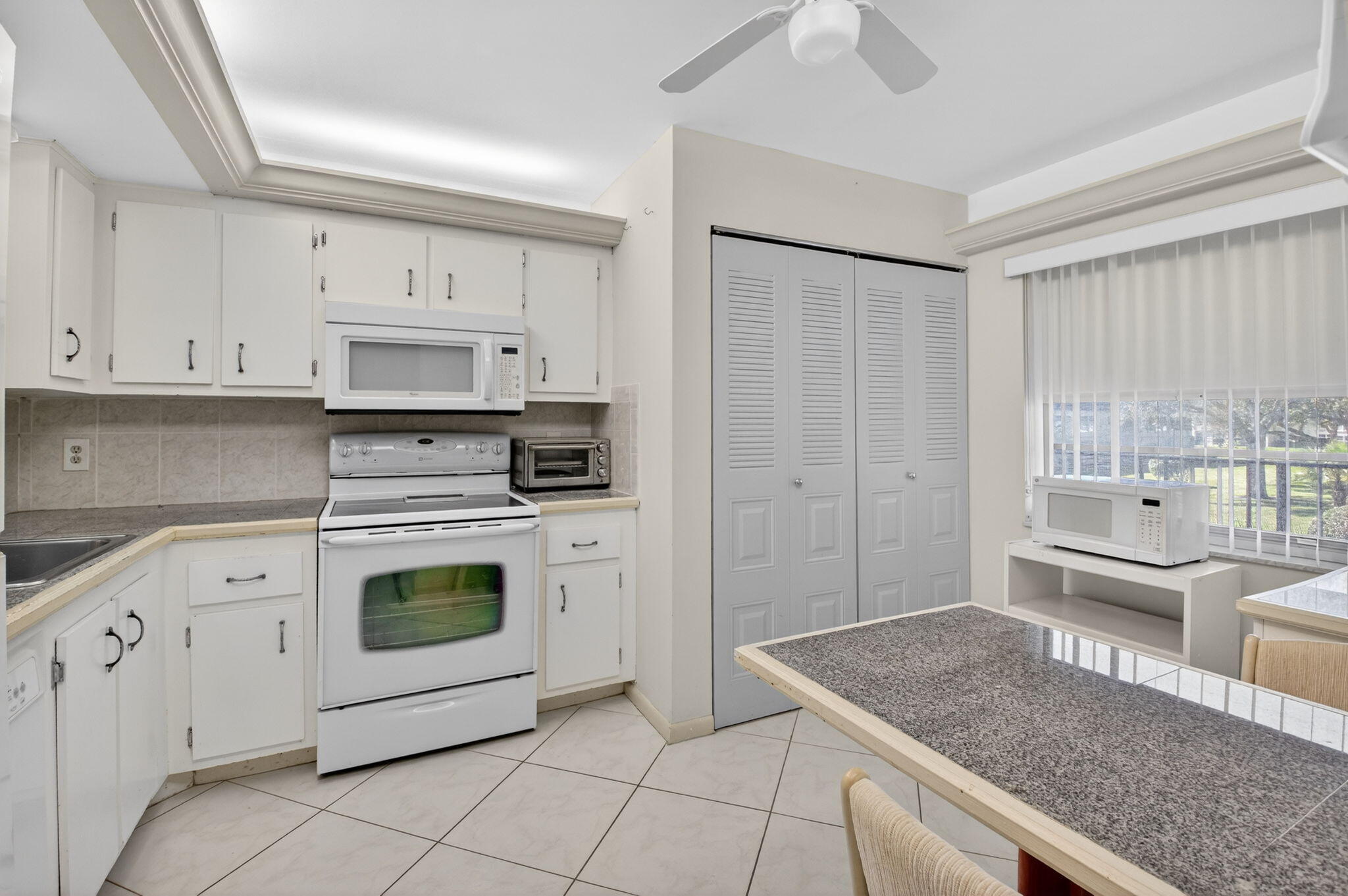 What more could you wish for 2 bedroom, 2 bath condo in an elevator building with a Florida room offering a serene lake view. Full eat in kitchen with laundry closet.Convenient trash chute and parking in front of building. 2 pools and clubhouse with activities. Shopping, restaurants and movie theater within minutes walk.