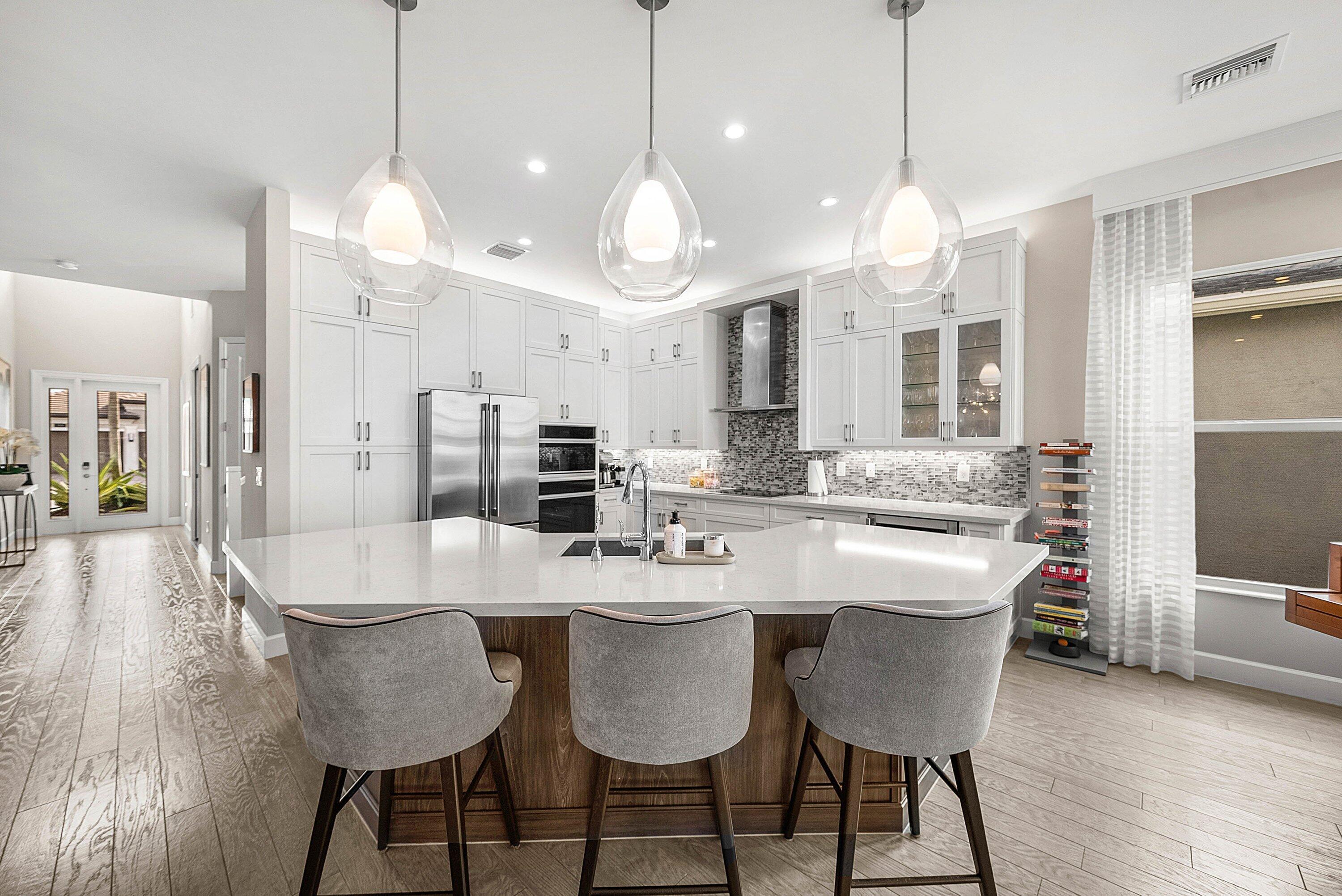 A true standout in Polo Trace, this impeccably curated 4-bedroom Lucerne model sets the benchmark for luxury. Built in 2020 and set on a premium lakefront lot just steps from the clubhouse, this residence showcases an exceptional level of upgrades and customization. The home features engineered hardwood flooring, built-ins, feature walls, custom closets, remote-controlled window treatments, designer wall paper, a walk-in pantry, garage with epoxy flooring and an exquisite chef's kitchen. The outdoor space is highlighted by a screened-in patio and heated pool overlooking tranquil lake views. Residents enjoy resort-style amenities, including The Palms restaurant, multiple pools, tennis, pickleball, bocce, a playground and fitness center--all conveniently located in the heart of Delray Beach