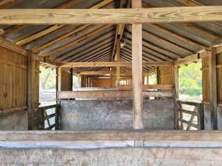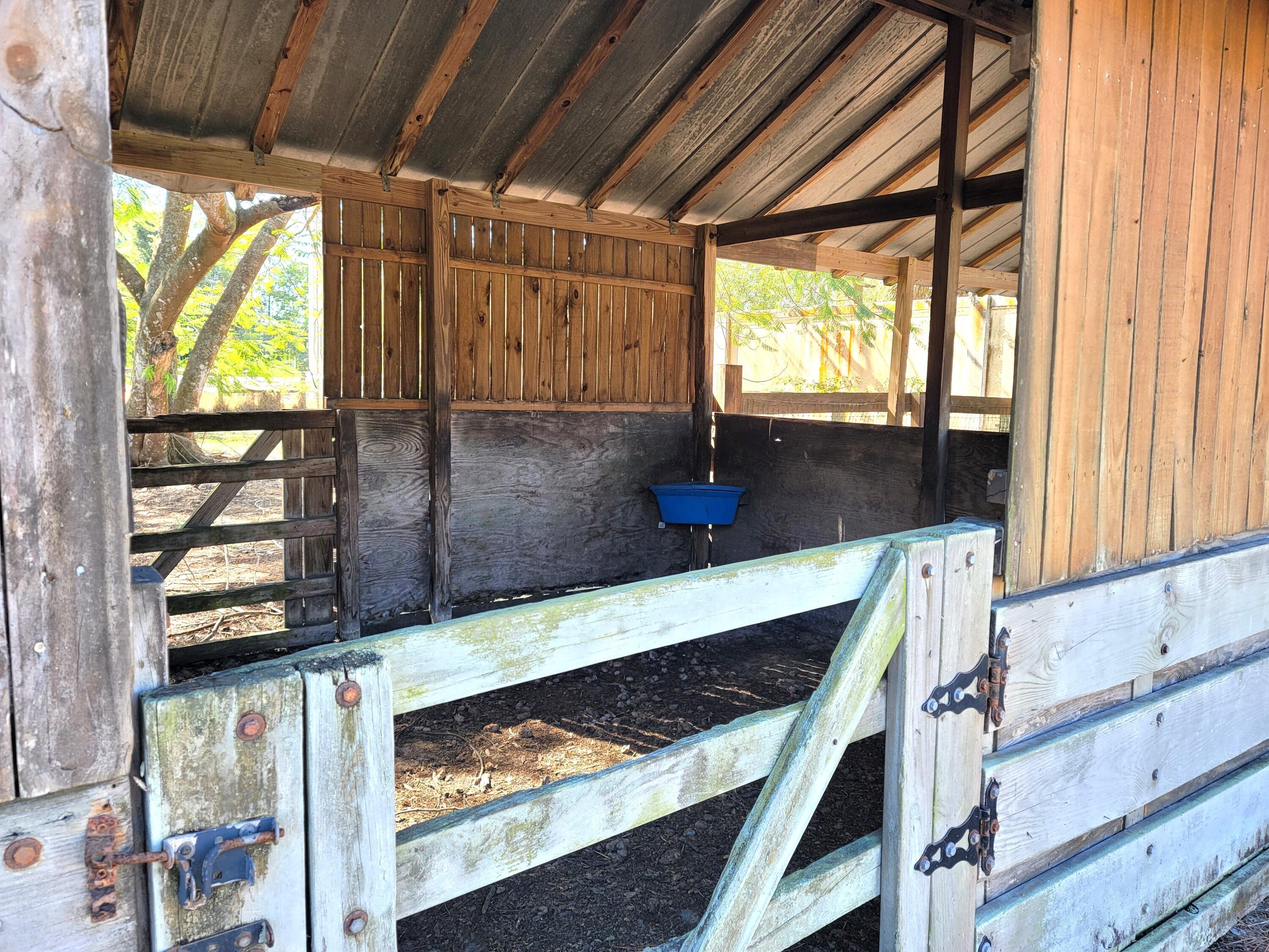 Bring your horses and/or farm animals. Approximately 2 acres with CBS 2 bedroom 1 bath home with enclosed porch on front and large open porch in rear where you can sit and watch your horses grazing in the large pasture area. Property has a covered, open stable with 6 stalls and large fenced areas for grazing/turnout. Rent includes lawn & water system maintenance.