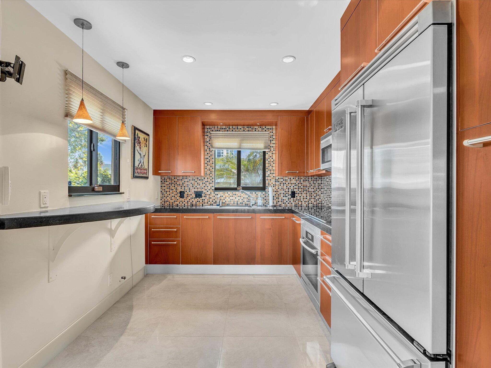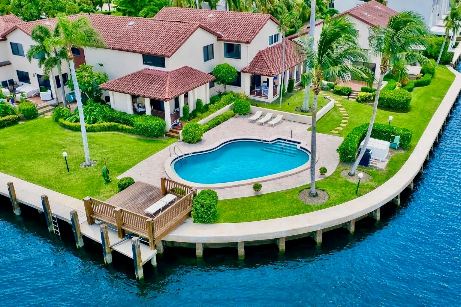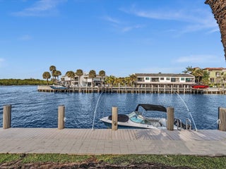 Direct Intracoastal end-unit townhouse with monthly HOA dues of $333. Optional private dockage available to residents for $200 per year. 6-unit community on a point lot with wide water views. Recent improvements include a new roof across all 6 units, impact-resistant hurricane-proof glass, new pilings and reinforcement for the sea wall, new pavers over the sea wall, new dock, new deck, new A/C unit, and new carpeting on the stairs and second floor. NEWER appliances in the kitchen. Very durable top-of-the-line NEWER kitchen cabinets. Waterfront community pool located at the corner of the property. All dimensions and square footage are approximate and should be verified by the buyer or buyer's representative. The primary bedroom was extended in 1984.