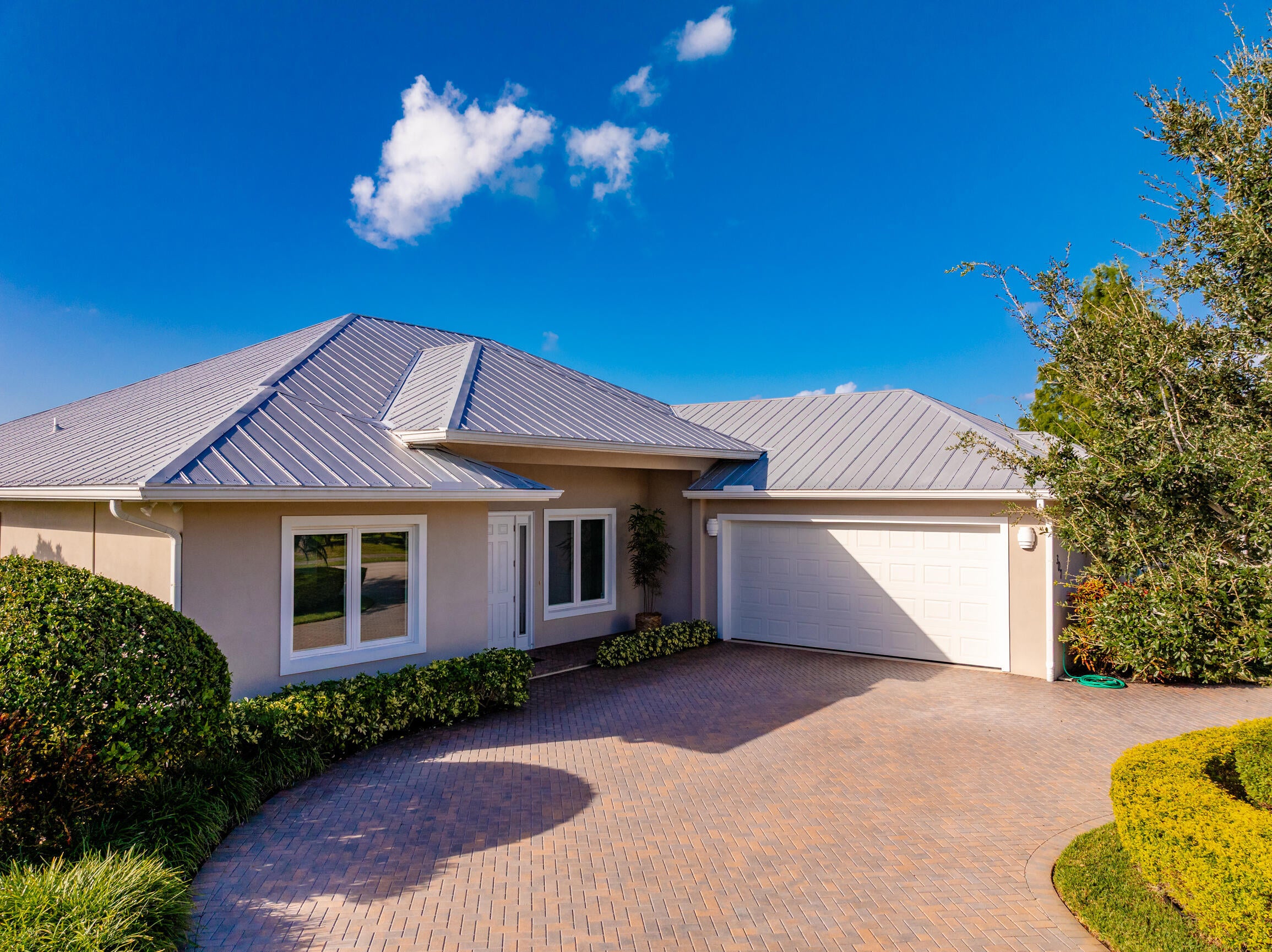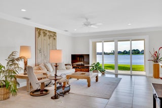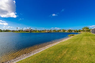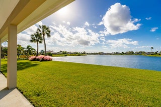3BR/2BA/2CG lakefront home, circular driveway w/impeccable lush landscape. As soon as you enter the home you're captivated by the expansive lake views! Features include a 2024 A/C unit, metal roof and large impact windows and sliders for peace of mind and energy efficiency. The oversized tiles in living areas offers a clean & modern look. Kitchen & bathrooms are beautifully appointed w/white cabinetry & corian countertops combining timeless style w/easy maintenance. Large windows throughout make this home light and bright. Moving ready and meticulously maintained. Minutes from the beach.