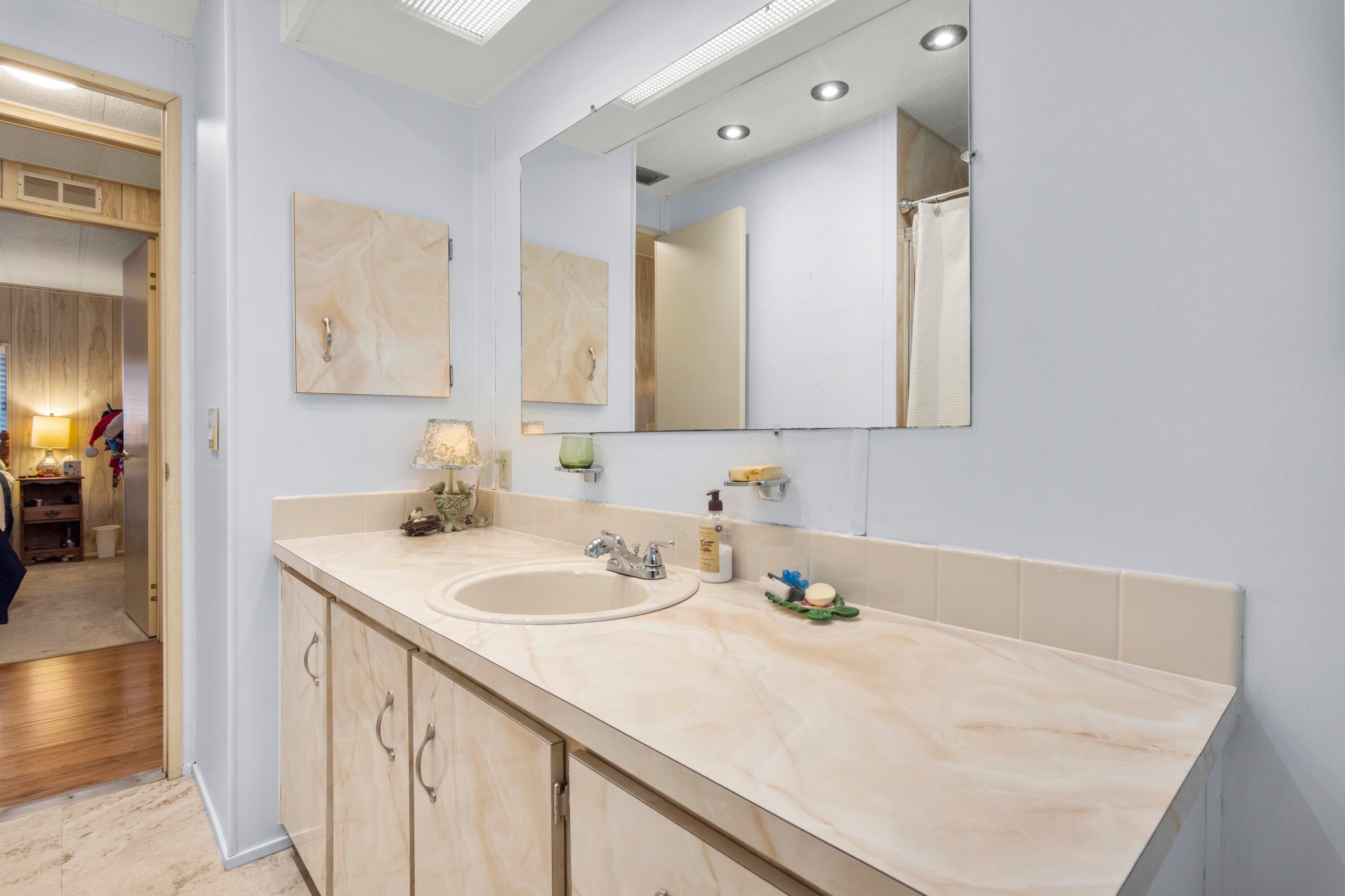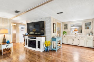 Welcome to the relaxed Florida lifestyle in the highly desirable 55+ community of Pinelake Village, just minutes from the beaches, shopping, dining, and the charm of downtown Jensen Beach. This charming double-wide home features 2-bedrooms, 2-bathrooms, updated flooring, large master bedroom, large walk-in closet, remodeled master bathroom, and a spacious enclosed gathering room at the front of the house perfect for entertaining and/or relaxing. Roof was sealed in 2025, and new AC Unit was installed in 2018. Lot rent is $765 per month and includes cable, trash removal, recycling, and all the amenities of the clubhouse. HOA membership is optional and is only $10 per year, per household.