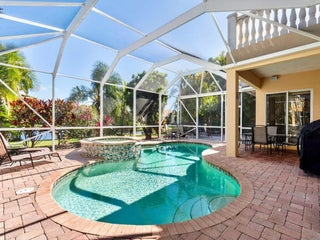 Located within the desirable gated community of Eagle Trace, this two-story lakefront home offers an ideal layout and modern updates. The downstairs master suite provides everyday ease, complemented by bamboo flooring and granite countertops. Enjoy peaceful mornings and sunsets from the balcony overlooking the lake, or unwind in the heated pool and spa. Notable improvements include a 2023 downstairs A/C, 2023 hot water heater, and fresh exterior paint in 2022. An exceptional blend of location, updates, and lifestyle--ready to be enjoyed year round.