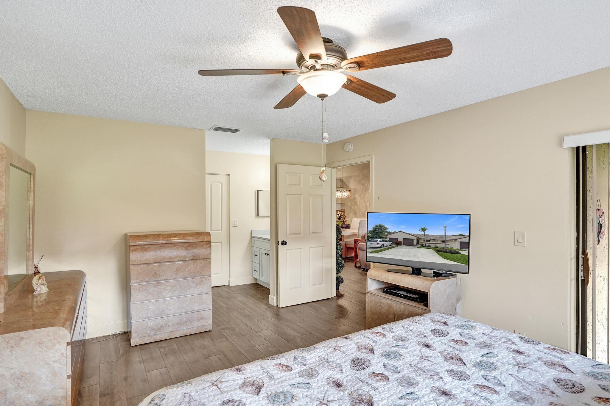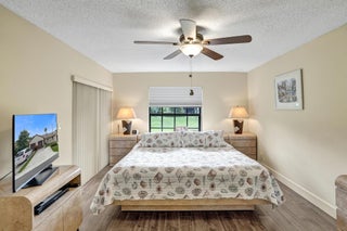 2BD/2BA villa w/1-car garage on quiet cul-de-sac. Vaulted/cathedral ceilings in kitchen, dining & living areas. Custom wood kitchen cabinetry w/high-end finishes. Tile flooring throughout. Both bathrooms fully renovated w/high-end finishes (6 yrs ago) along w/appliances & A/C--all still look like new. Sun porch w/new aluminum screening & hurricane-impact sliding glass doors. Home Features Hurricance Impact windows Primary suite w/walk-in closet. Large open front patio perfect for BBQs. Rear garden views like a park. Short walk to lake fitness trail. Investor-friendly. 24-hr guard-gated community w/resort amenities: 2 heated pools, tennis, basketball & racquetball courts, 2 clubhouses, dog parks, walking/biking trails & natural preserve. Close to I-95, FAU, Mizner Park, top rest