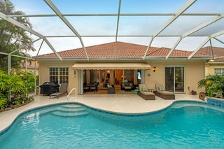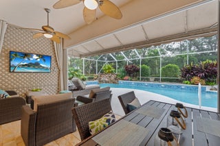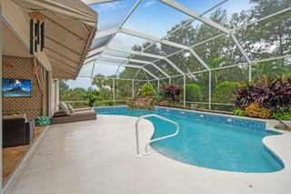 Beautifully apointed Carlyle Model - The Retreat at Hobe Sound This Divosta built 4BR/3BA pool home (2,493 SF) sits on a quiet cul-de-sac with preserve views. Features include a triple-split layout, formal living with fireplace, open great room, and modern kitchen with white cabinetry, SS appliances, and breakfast nook. The primary suite offers pool views, walk-in closet, and spa-style bath. HVAC 1year old w maintenance Plan, resurfaced pool, 1 yr old washer/ Dryer, Outside: Saltwater heated pool, screened patio, tropical landscaping, fenced dog run, and 2-car garage with extended driveway. HOA Benefits including lawn care, cable TV, internet, fitness center with pool, bocce ball, and Tennis Courts.