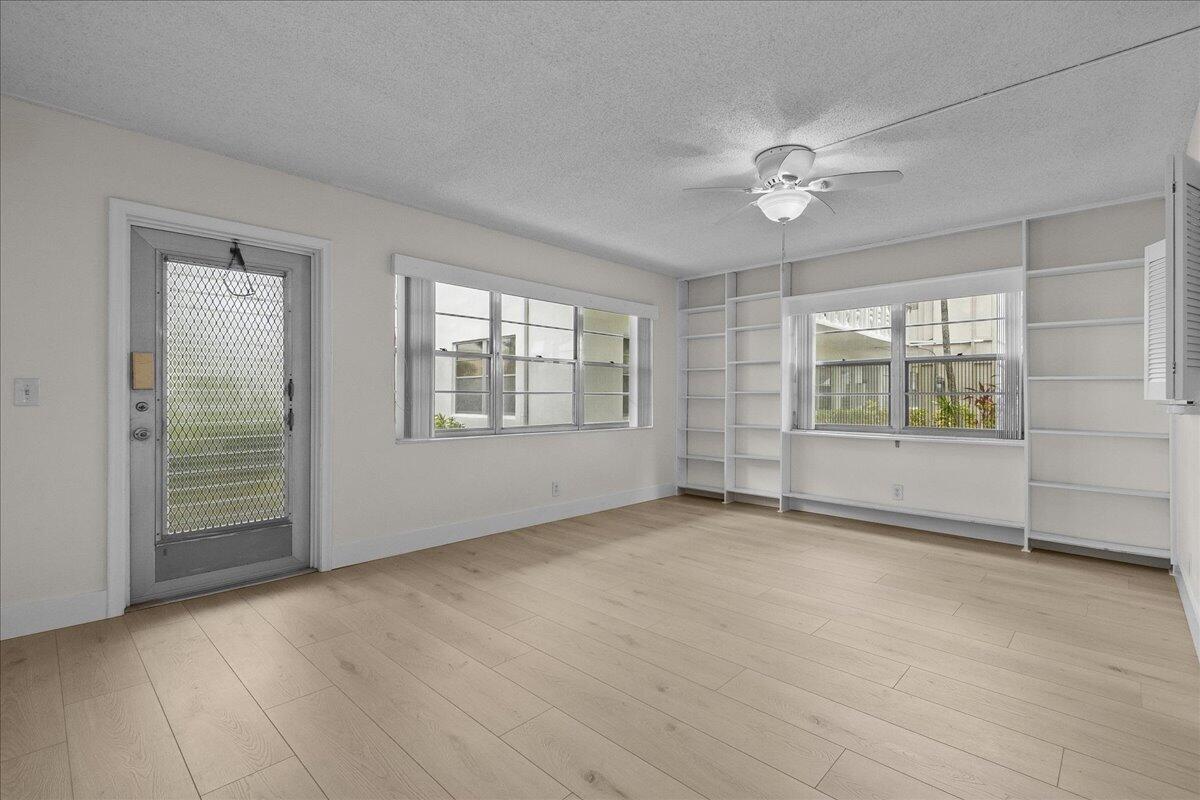 55+ Newly updated and highly desirable 1st floor corner unit with Central A/C. Patio opens up to a huge tree shaded green space and just a few yards to the pool. New Laminate floors and baseboards, Updated bathrooms and kitchen. Centrally located to all the Palm Beaches has to offer. Community has many amenities, clubhouse, tennis, state of the art fitness - sailing, social clubs, dancing, courtesy buses and more.
