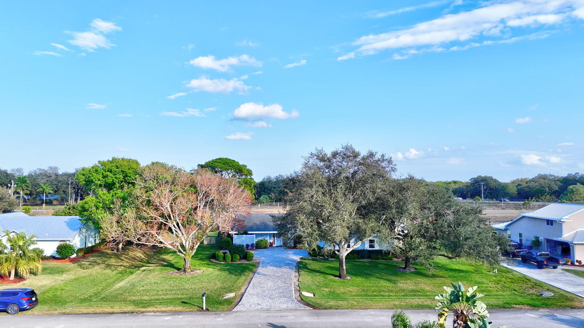 Extremely rare opportunity in the sought after community of Lost Tree Estates in Ft. Pierce! This fully updated spacious country home on a half-acre lot offers the priceless luxury of privacy, warmth, and peace. Drive up the over-sized paver driveway canopied by mature trees and enter the front door to see an open-concept spacious living area that overlooks a meticulously maintained backyard landscape oasis, including a swaying hammock under the shade of a beautiful mahogany tree. Inside one end of the home you'll find the primary suite featuring an oversized bathroom with a dual vanity and large walk-in shower. The updated kitchen has granite countertops, newer ss appliances (including a premium Samsung 4-door refrigerator/freezer), and overlooks the dining area. This home also is......fully covered with premium high impact windows and a reinforced hurricane resistant garage door. This is one of those homes that the pictures can't possibly convey how special it is. Come take a tour and see for yourself!