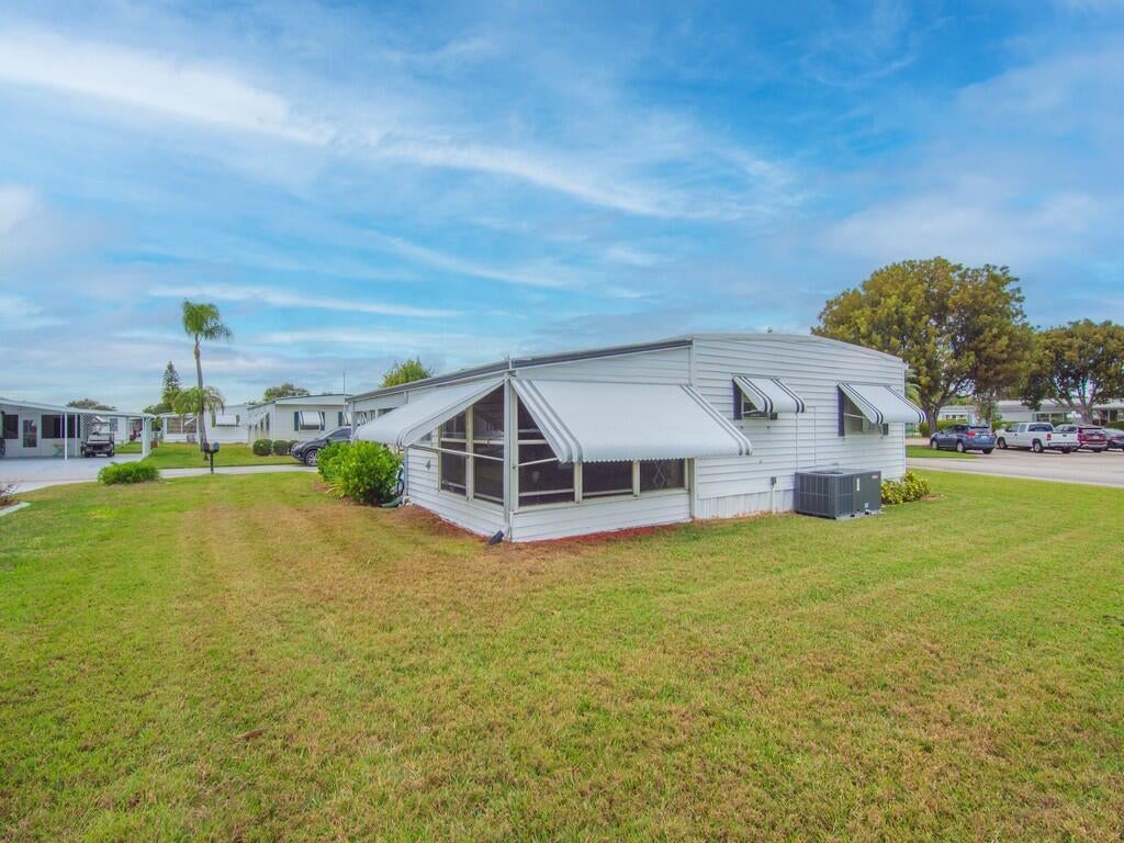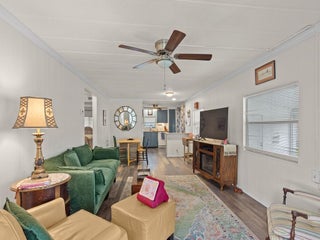 Welcome to the highly desirable 55+ community of Pinelake Village, just minutes from the beaches, shopping, dining, and the charm of downtown Jensen Beach. Step inside this well maintained 2-bedroom, 2-bathroom double-wide and you will want to call it home! Features include remodeled kitchen, granite countertops, remodeled bathrooms, spacious living room, LifeProof luxury vinyl flooring, and an enclosed all-season room off the kitchen perfect for morning coffee, reading, or simply relaxing. Recent upgrades include new AC 07-2024, electrical upgrades 05-2025, entire roof sealing 06-2022, irrigation improvements 09-2024. Lot rent is $765 per month and includes cable, trash removal, recycling, and all amenities of the clubhouse. HOA membership is optional at only $10 per year, per household.
