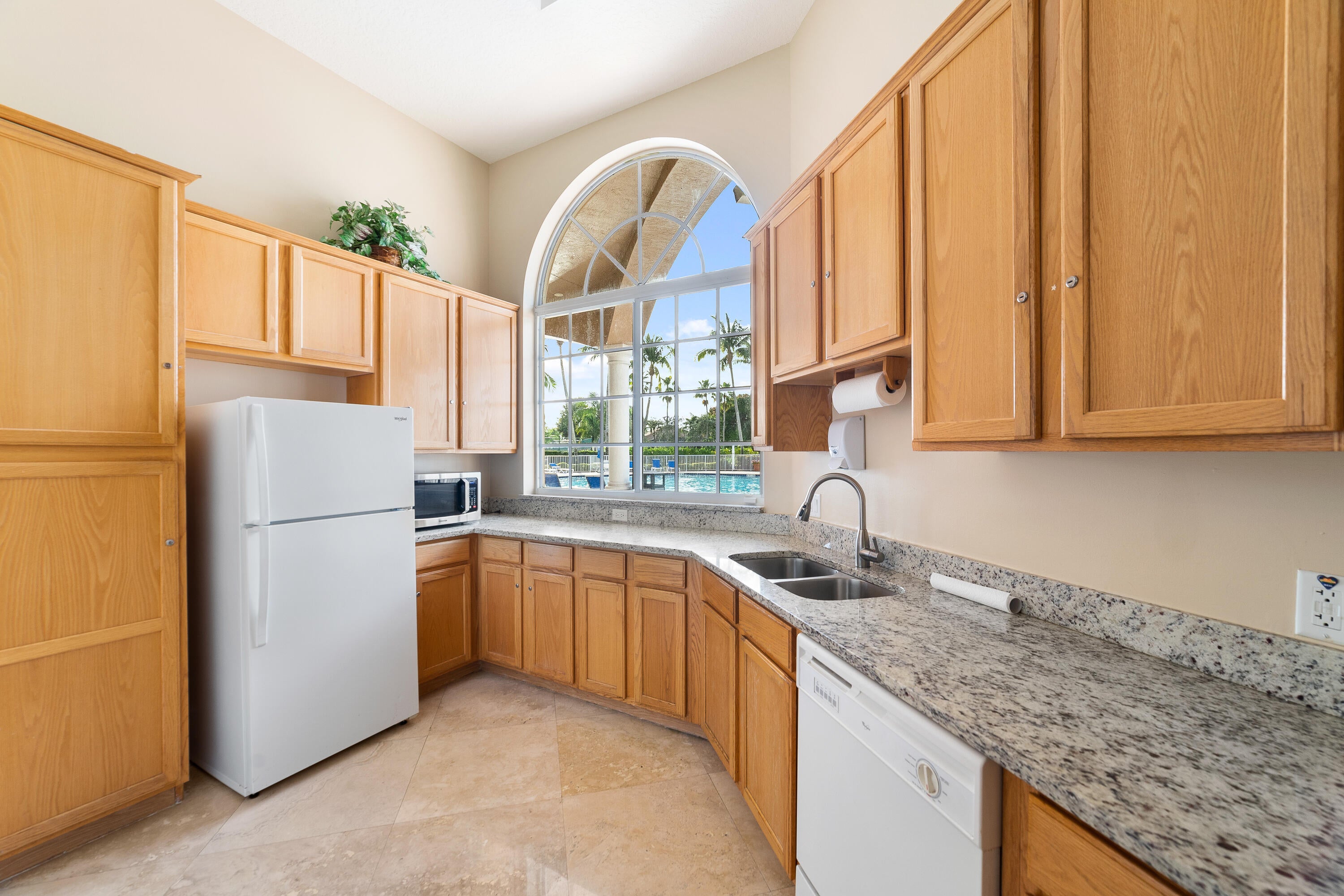 Welcome to desirable Andros Isles, a guard-gated community offering a beautiful resort-style setting with a full-service clubhouse, pool, and fitness center, conveniently located near shopping, dining, golf, parks, and more. This mostly renovated lakefront townhome offers three bedrooms and two full bathrooms in a well-designed, open layout. The open-concept kitchen features a breakfast bar, stainless steel appliances, and a sliding glass door leading to a private entry courtyard. Tile flooring enhances the entire home with neutral tile in the main and wood-look tiles in the bedrooms. The primary suite boasts tray ceilings, a spacious walk-in closet, and a fully renovated, spa-inspired bathroom with dual sinks and a walk-in shower.Enjoy serene lake views from the large, partially covered and screened lanai. Additional highlights include a paver driveway with parking for two vehicles and an attached, air-conditioned one-car garage. Move-in ready. Low HOA dues.