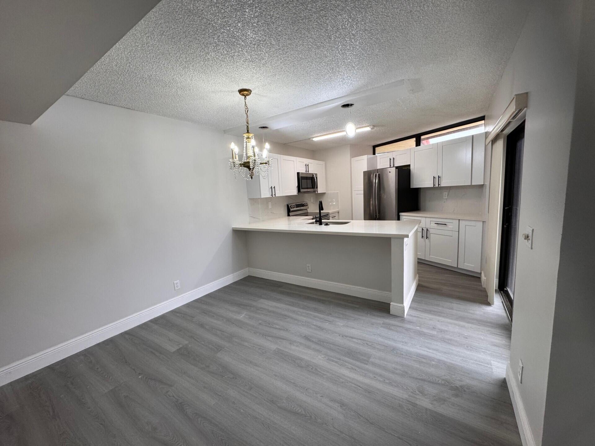 Newly renovated Townhouse with a large courtyard. New kitchen, new bathrooms, new floors! Conveniently located in the Somerset community, close to shops, dinning and major highways. Community pool.THE COMM. INC., BIKING, JOGGING, POOL, SIDEWALKS, STREET LIGHTS AND TENNIS. (H.O.A. INCLUDES COMMON AREA, LAWN CARE, EXTERIOR MAINT. POOL SERVICDiscover your next home in the sought-after Somerset community, where tranquility meets modern elegance in this stunning two-bedroom, two and 1/2 -bathroom townhouse. This well-maintained residence offers 1,218 square feet of thoughtfully designed living space that perfectly balances comfort and style. The heart of this home showcases a newly remodeled kitchen featuring an open concept design that flows seamlessly throughout the main level. An impressive 8.5-foot eat-in kitchen bar creates the perfect gathering spot, complemented by custom cabinets, luxurious quartz countertops. Impact Windows . Natural light floods the unified tile flooring throughout the ground floor, while the upper level and stairs feature brand new waterproof luxury vinyl flooring. Full impact doors and windows provide both security and energy efficiency, ensuring year-round comfort with low homeowners association fees. Both bathrooms have been thoughtfully updated, including a newly renovated half bath and a fully renovated full bathroom with floor-to-ceiling tile, new fixtures, and modern appointments. The primary bedroom suite features an updated bathroom with new vanity tops.Walk-in closets with built-in shelving provide ample storage throughout. The outdoor space truly shines with a massive 21x21 fenced courtyard offering privacy and endless possibilities for entertaining or relaxation, complete with sprinkler system and a freshly painted fence overlooking beautiful lake views. This move-in ready townhouse combines modern amenities with thoughtful updates, creating an exceptional living experience in a desirable West Palm Beach location.Just minutes from PBIA,Beaches,Dining and Entertainment.Conveniently located in the Somerset community, close to shops, dinning and major highways. Community pool.