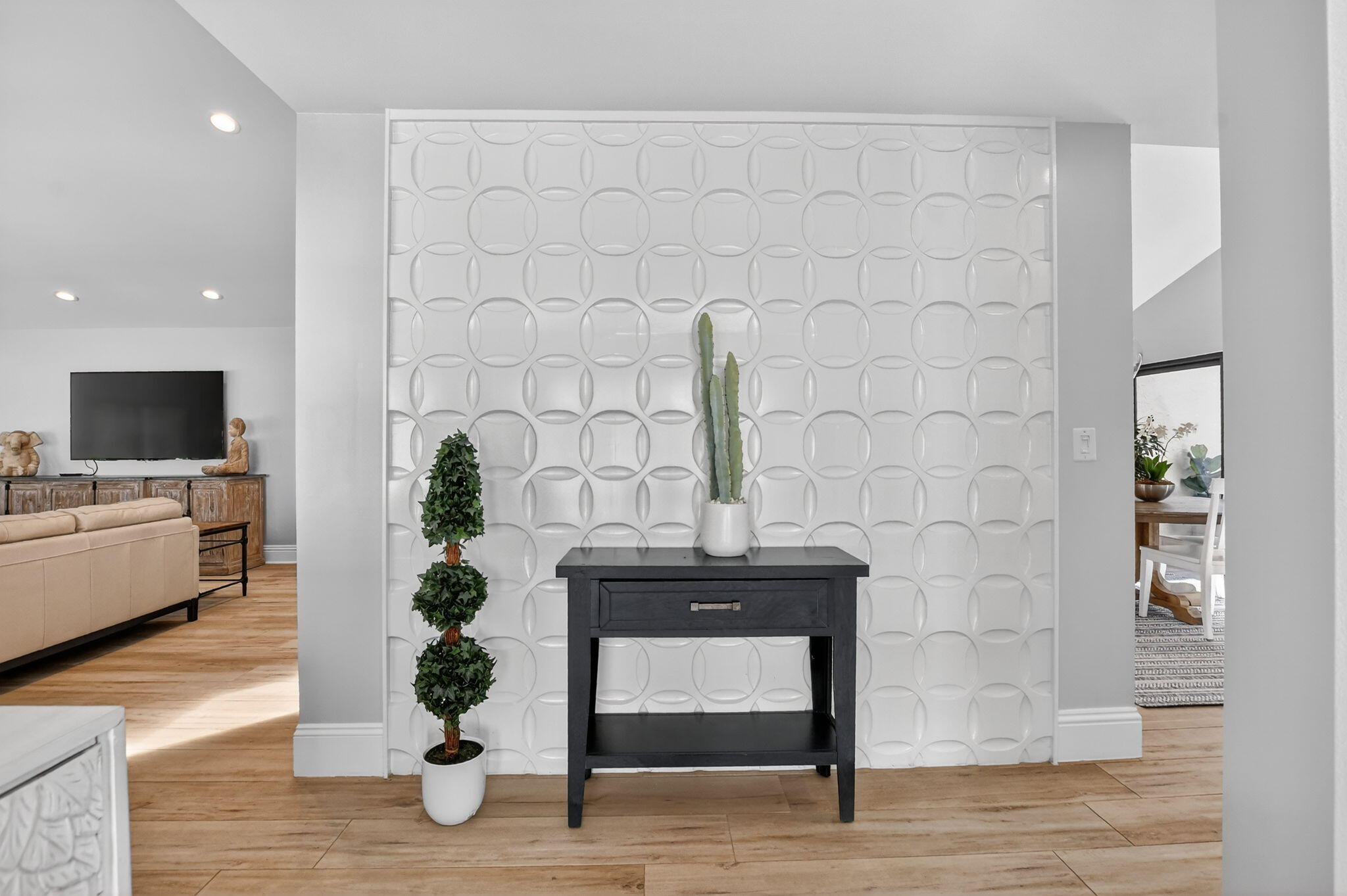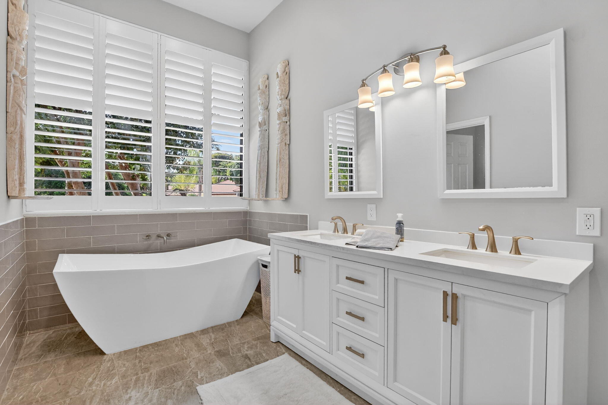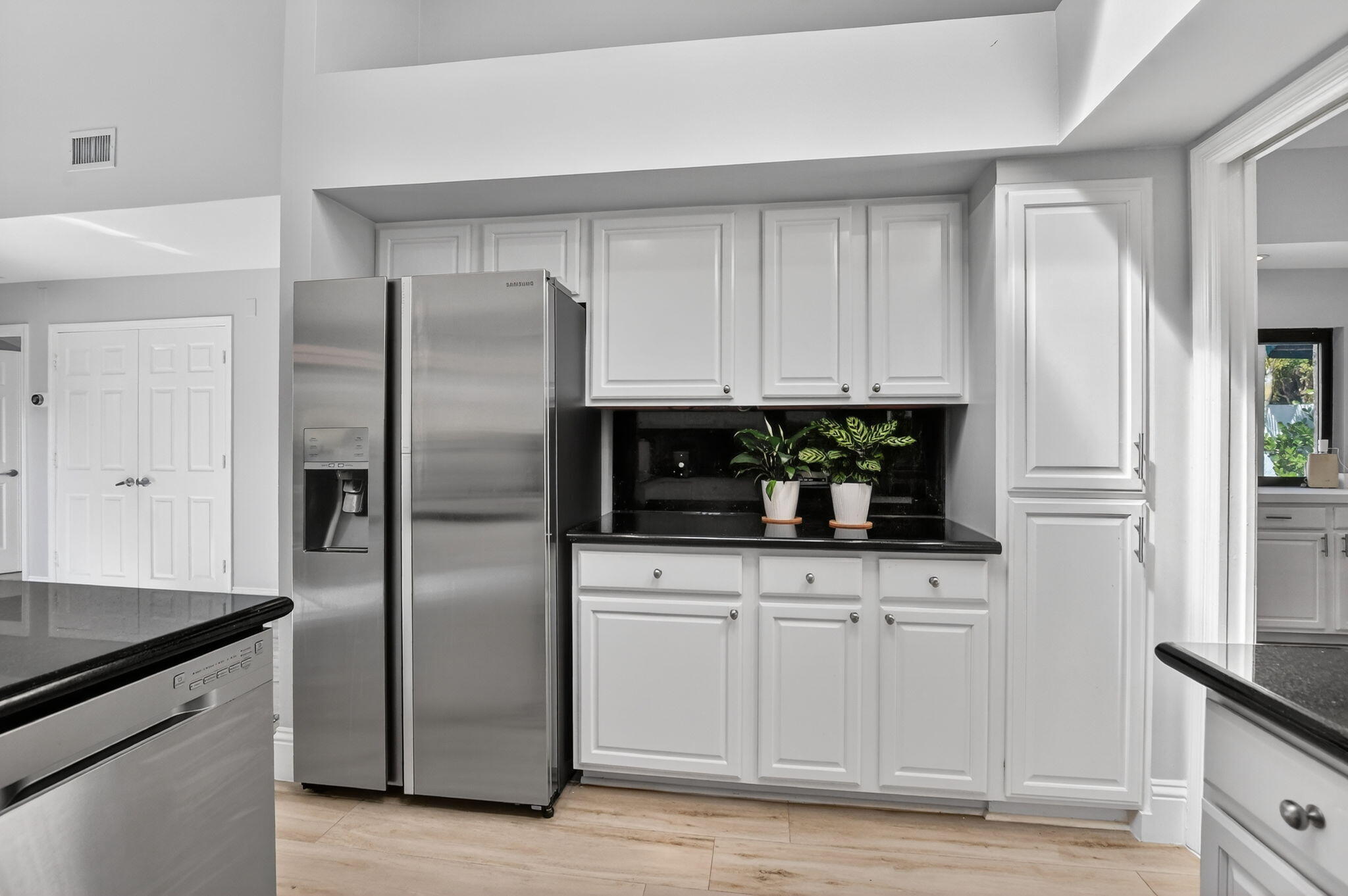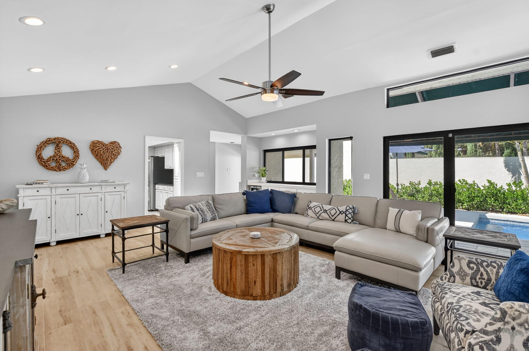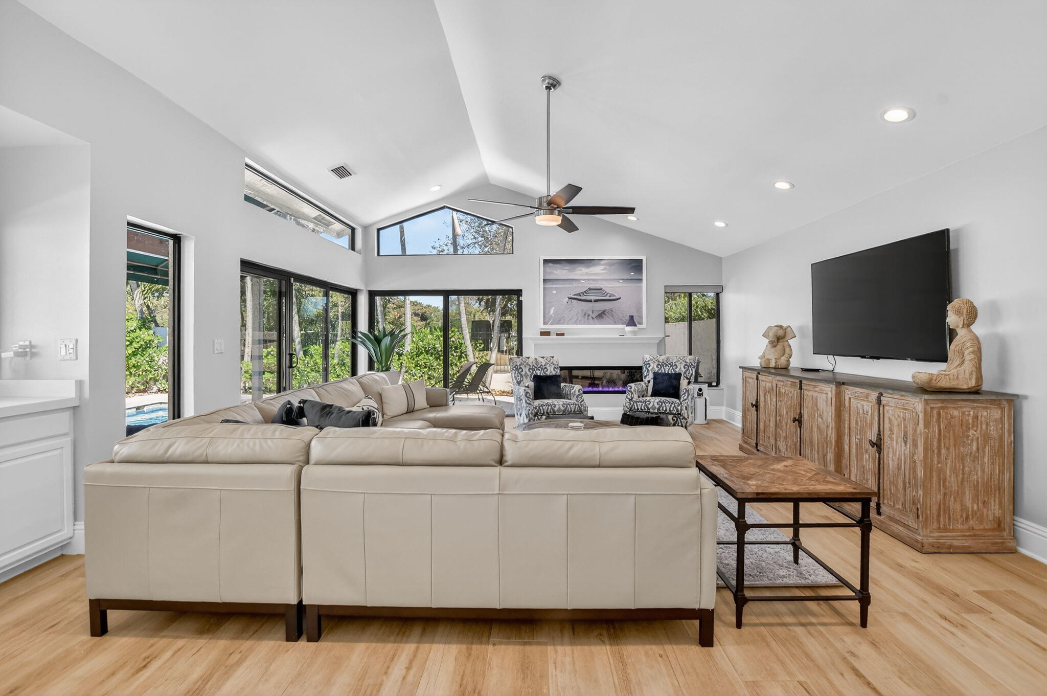 WOW!!!!!! This home has it all! Updated, lakefront pool home on one of the best lots in the beautiful gated community of Town Place. One story, 2 bd. 2 baths very open and bright. Vaulted ceilings, lots of light and open living space. Full hurricane impact windows and doors. Gorgeous high-end wood look porcelain Italian tile flooring throughout. Both bathrooms have recently been totally renovated and they are stunning! Entry foyer leads to oversized living area with delightful views of the pool/patio area. Bar area and modern electric fireplace. Spacious dining area also has vaulted ceilings leading to a charming atrium area. Large primary suite with walk in closet, plantation shutters and double door entry. Secondary bedroom has 2 closets, lots of light and beautiful features.Open kitchen with SS appliances. White cabinets, sleek granite counters. Private patio/pool area has a heated pool, new diamond bright pool finish, raised deck and stunning views. New gutters, freshly painted patio area. Perfect for family gatherings and entertaining. Bar area opens to patio. 2 car garage with closets for storage. Prime central Boca Raton location just minutes to grocery shopping, Town Center mall, restaurants, night life and much more. Also across the street is The Boca Racquet and swim center. No front neighbors for total privacy. Call today for a private showing of this beautiful, special and charming home in one of the top Boca Raton locations!!!