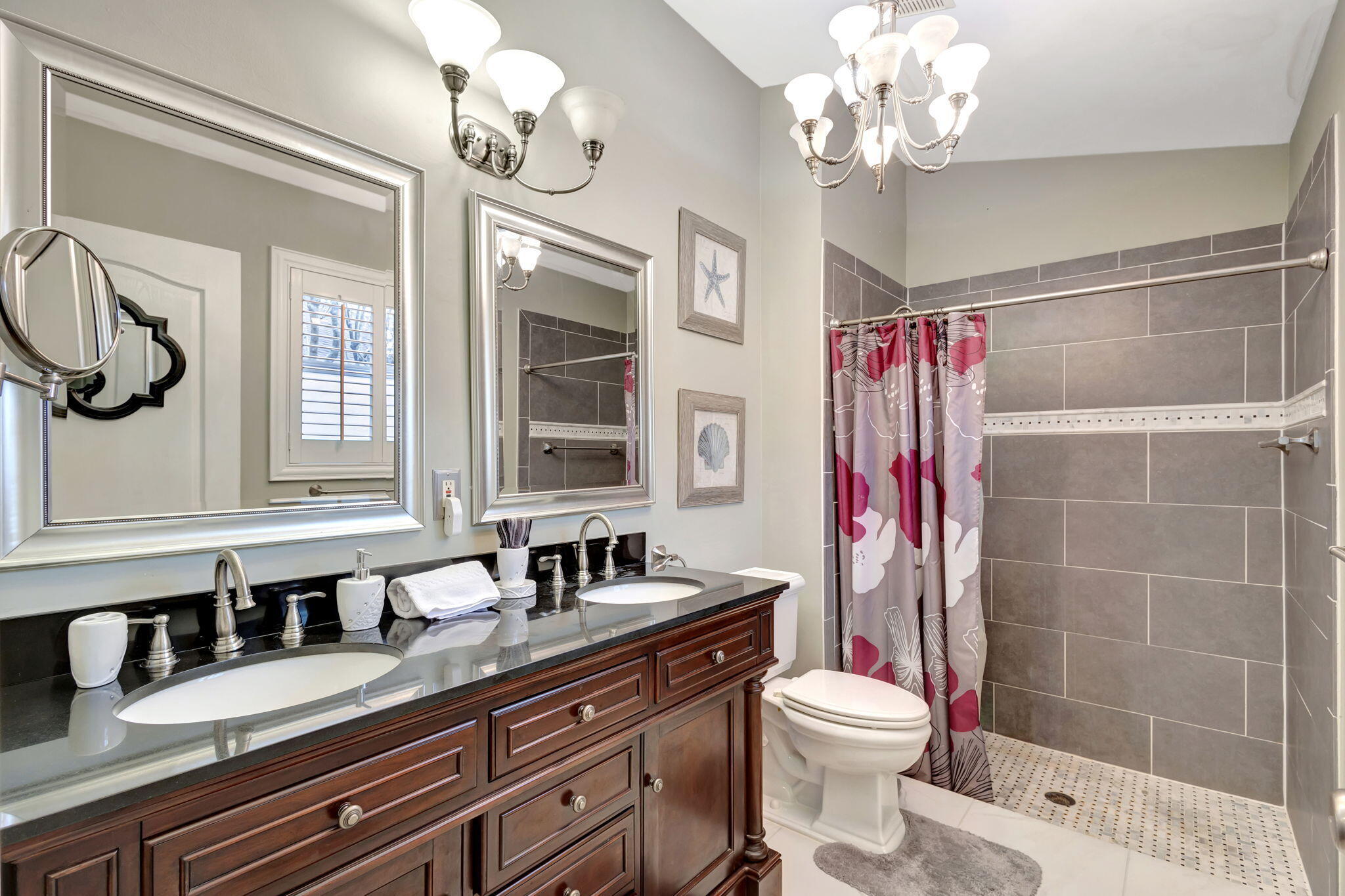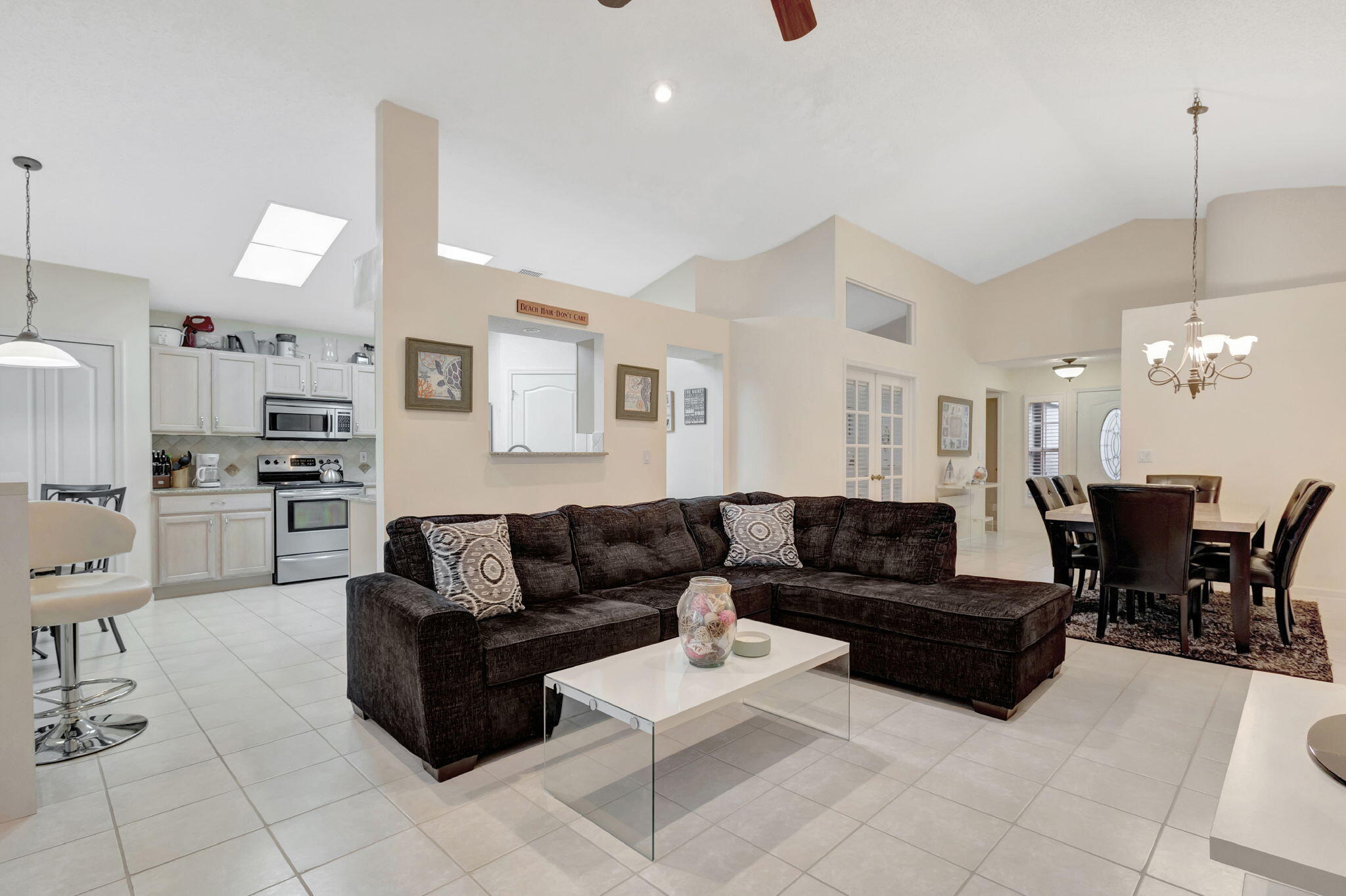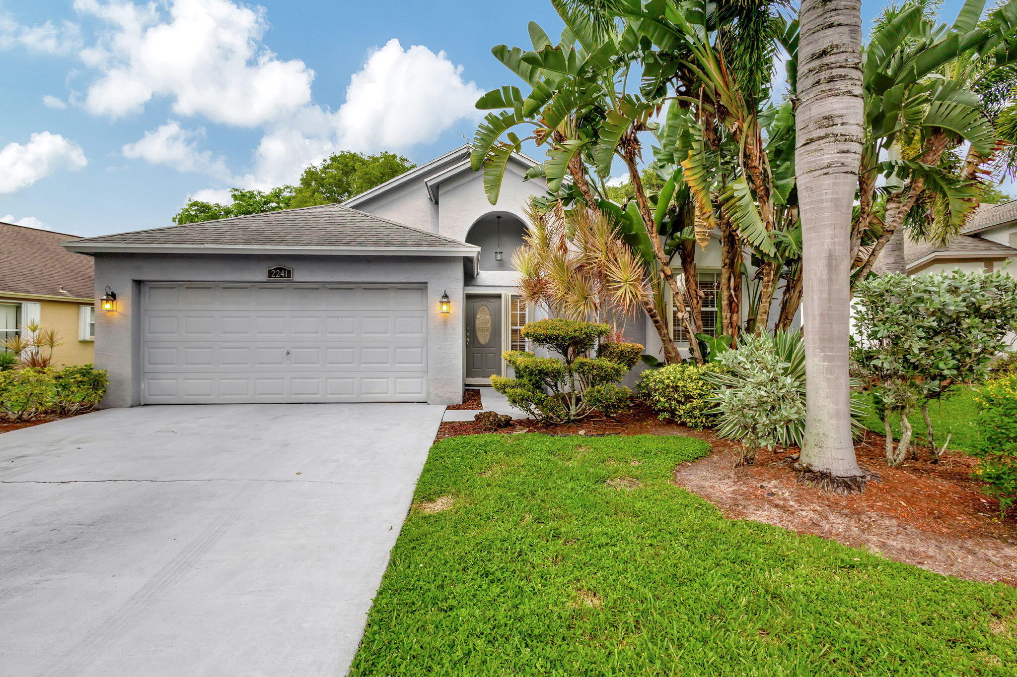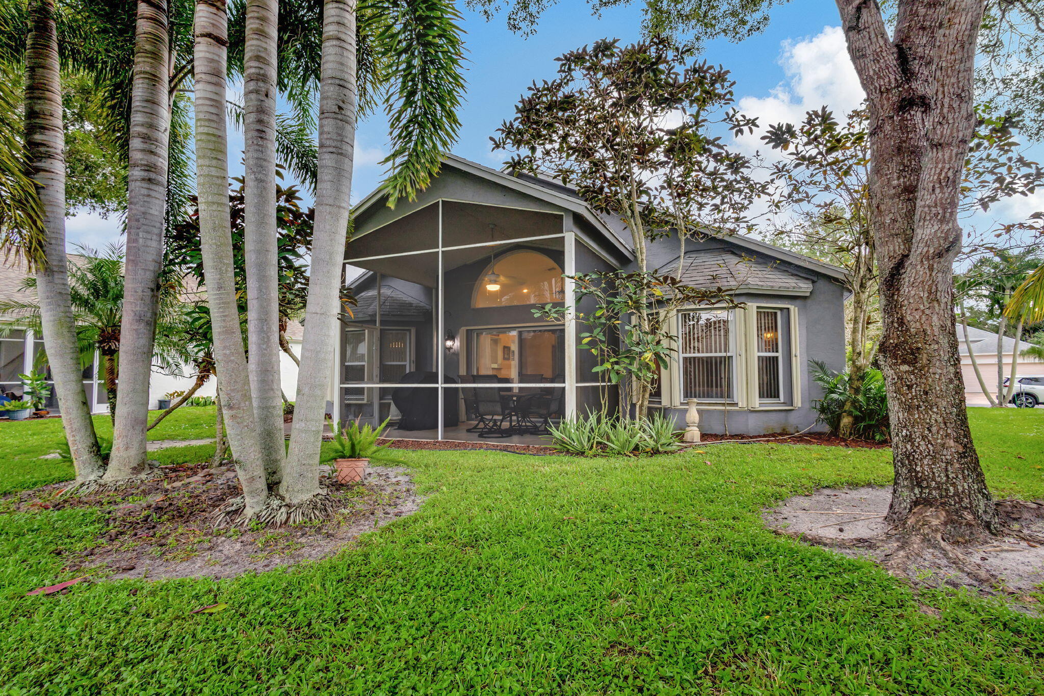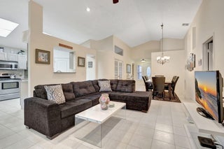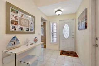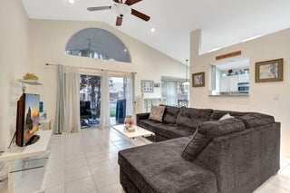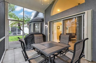 This beautifully appointed 3-bedroom, 2-bathroom home is nestled in the prestigious River Bridge community, offering a warm and inviting atmosphere that feels like a tropical getaway. As you step inside, you'll be greeted by an open, airy layout with soaring ceilings, nicely furnished, and abundant natural light filling every room. Step outside to your screened and tiled porch, where you can sip your morning coffee while soaking in the lush garden views, or enjoy an evening breeze with a glass of wine. The home is located next to Okeeheelee Park and Golf Course. River Bridge is a resort-style gated community. There is recently renovated kitchen, granite countertops, stainless steel appliances, 42-inch cabinets. Home is fully furnished and equipped. Check pictures for details