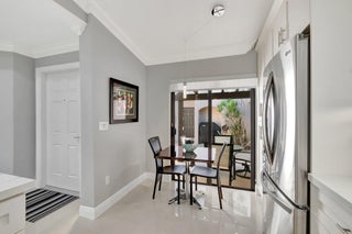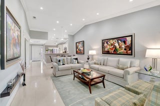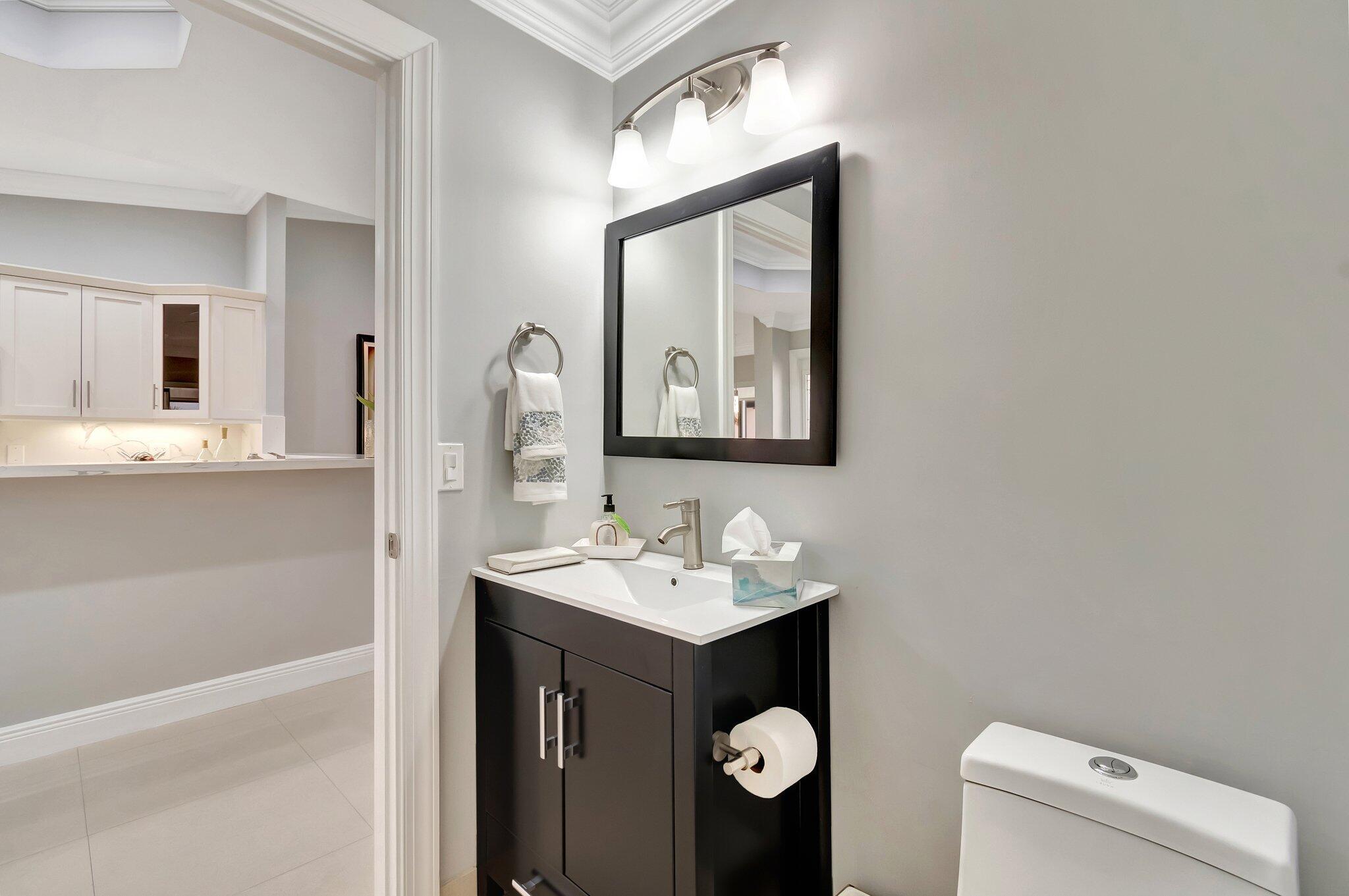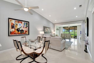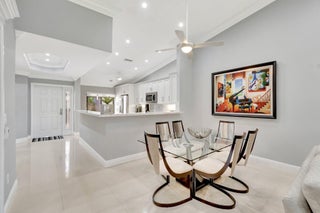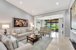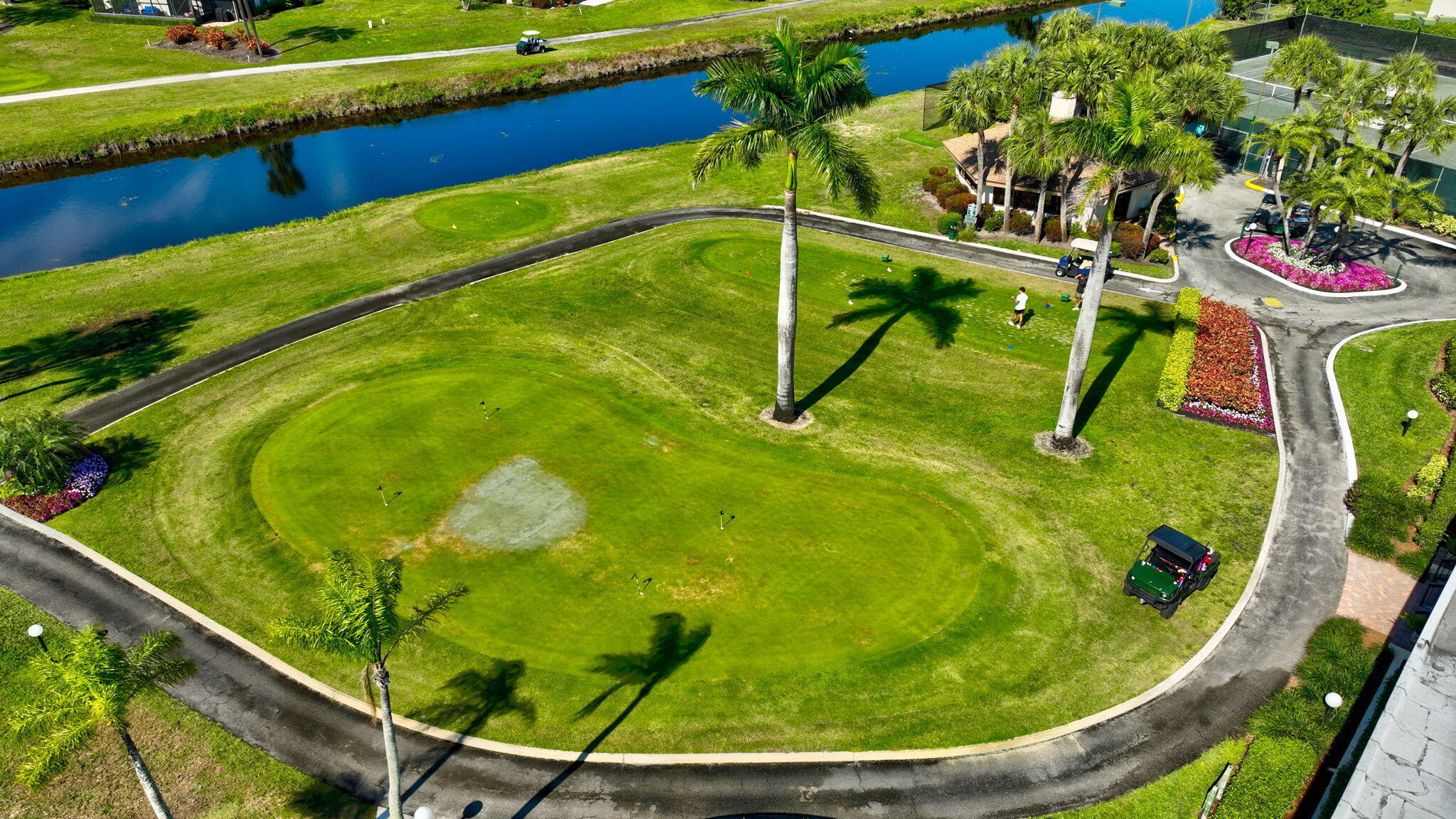 Country Club living without equity or club membership fees. Unbelievable value! Professionally designed stunning corner villa with 2 bedroom plus den with 2 1/2 baths and 1 1/2 car garage. Open concept living space, laundry room, gourmet kitchen with top of the line stainless steel appliances, quartz counter tops and backsplash, porcelain floor tile and impact windows. The master bedroom suite features a large walk-in closet, double vanity, walk-in shower and jetted tub. The spacious private courtyard or patio are perfect spots for enjoying your morning coffee or afternoon cocktails. Tranquil lake and golf views from the back of this villa. Great location! Newly renovated Clubhouse. 18 hole executive golf course and 19th Hole Cafe. Close to shops, restaurants, major highways, and the beach.