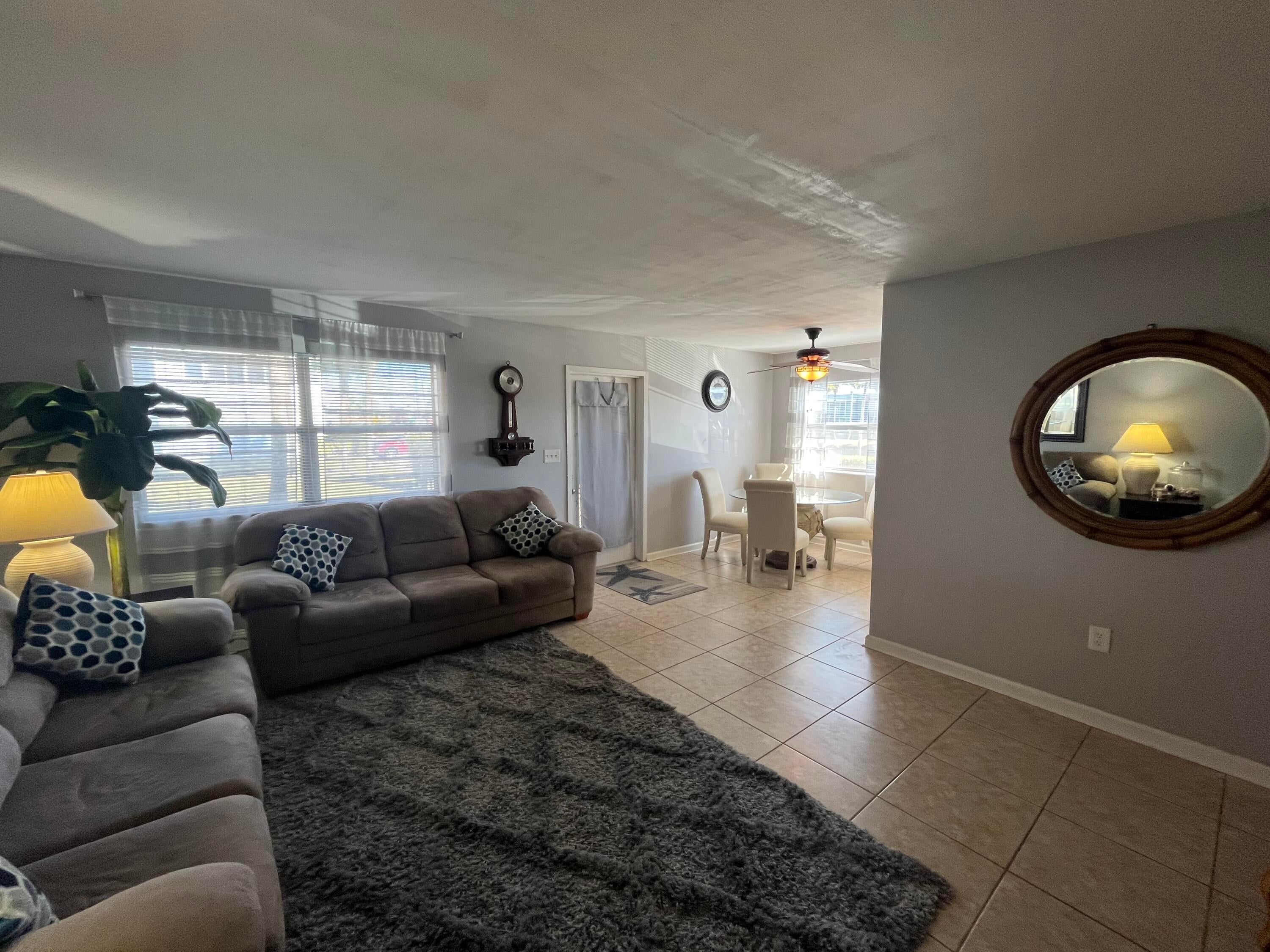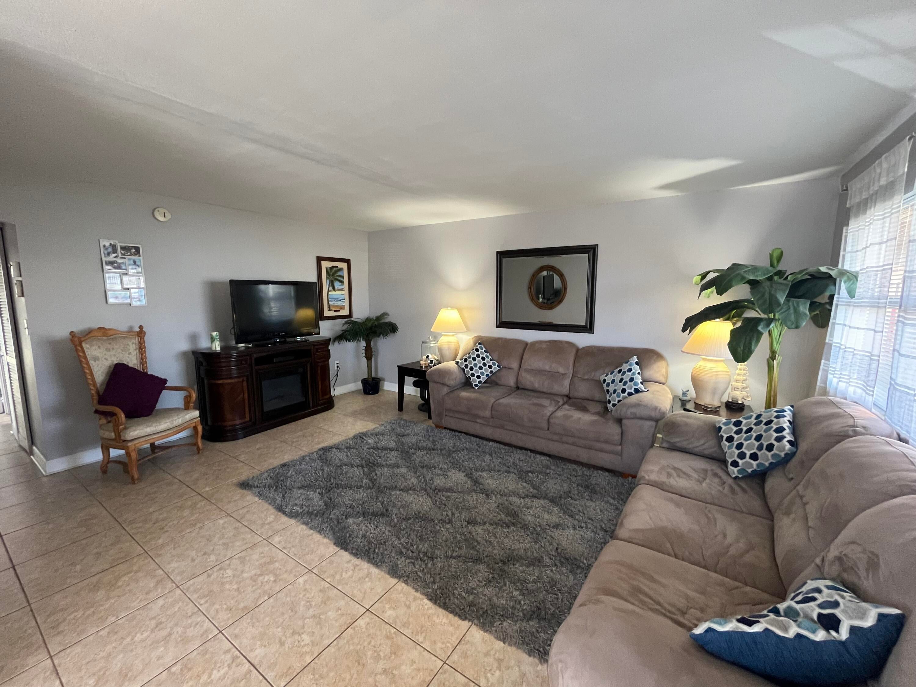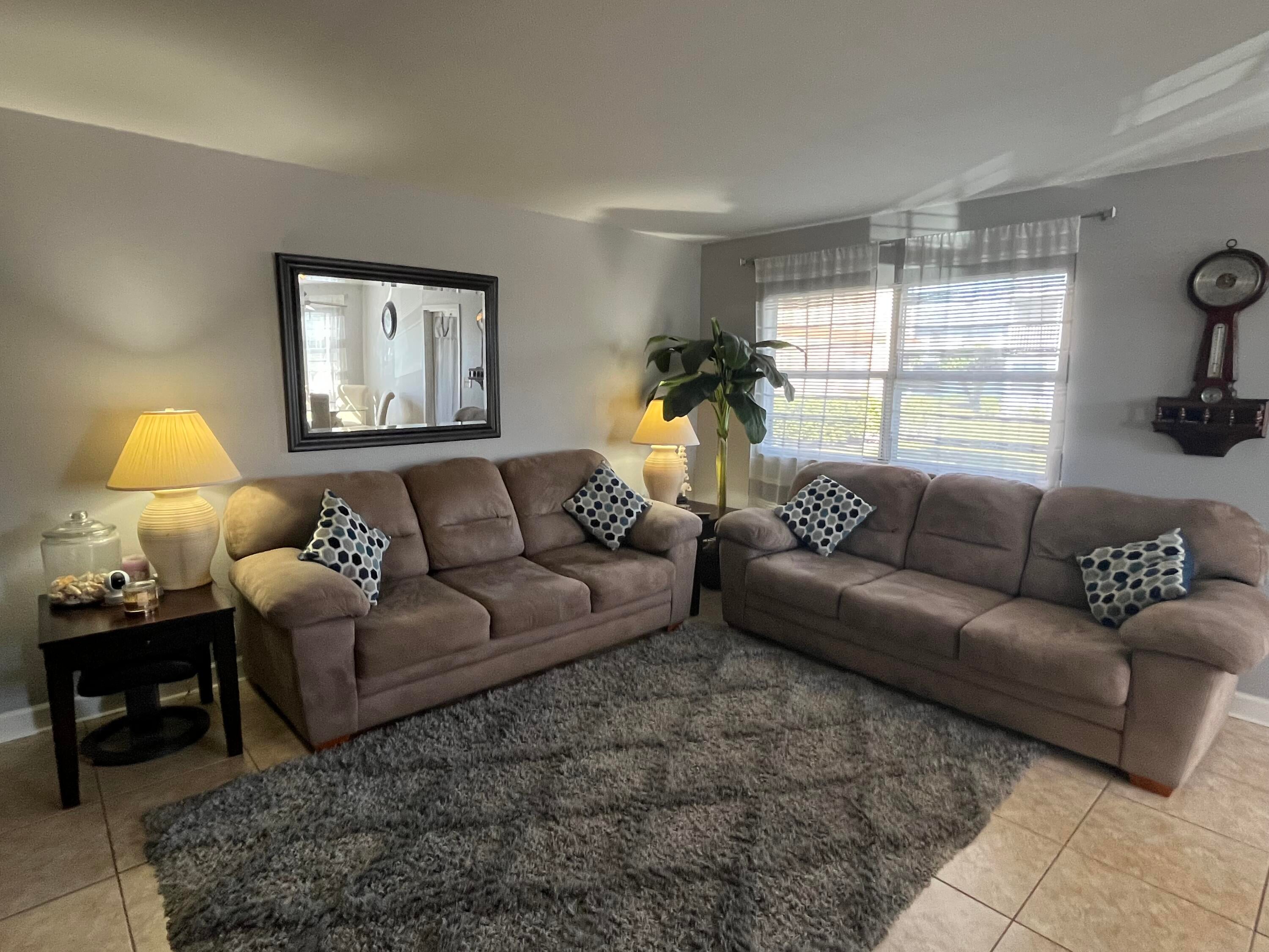 Gorgeous ground floor 2/2 true corner unit in the Brittany section of Kings Point. This lovely condo is available fully furnished with wonderful accoutrements. Beautiful large neutral colored tiling throughout the condo. Kitchen boasts of updated wood cabinetry, stainless steel appliances, formica countertops that look like granite, a stainless sink and a multi colored backsplash which enhances the nice design. Both bathrooms have been updated with tasteful wall tilings in the tub shower and the stall shower of the primary bathroom. Updated vanities/lighting and commodes as well. Full walk-in closet in the primary bedroom. Updated electrical panel too. Additional broom closet for storage. Outside screen patio has utility closet with full side by side washer/dryer. A must see for all!