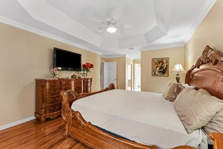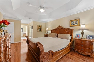 Private, light-filled corner Imperial model with 3 bedrooms and 2 bathrooms featuring a spacious open floor plan and volume ceilings. Beautifully decorated and can be sold turnkey. Neutral tile floors flow throughout the main living areas, complemented by crown molding and abundant windows. The kitchen offers beautiful cabinetry, granite countertops, newer LG stainless steel appliances, a vaulted ceiling, and double sliding doors to the screened-in lanai with elegant pavers. The primary suite features a tray ceiling, double walk-in closets, dual vanities, a soaking tub, and a walk-in shower. A convertible bedroom/den provides flexible space for guests, an office, or additional living. Accordion hurricane shutters and a newer A/C (2022) add comfort and peace of mind.Situated on a large corner lot in Valencia Falls, a 55+ senior living community, residents enjoy an exceptional lifestyle with a newly renovated $6M+ clubhouse that is now open, offering outstanding amenities and activities.