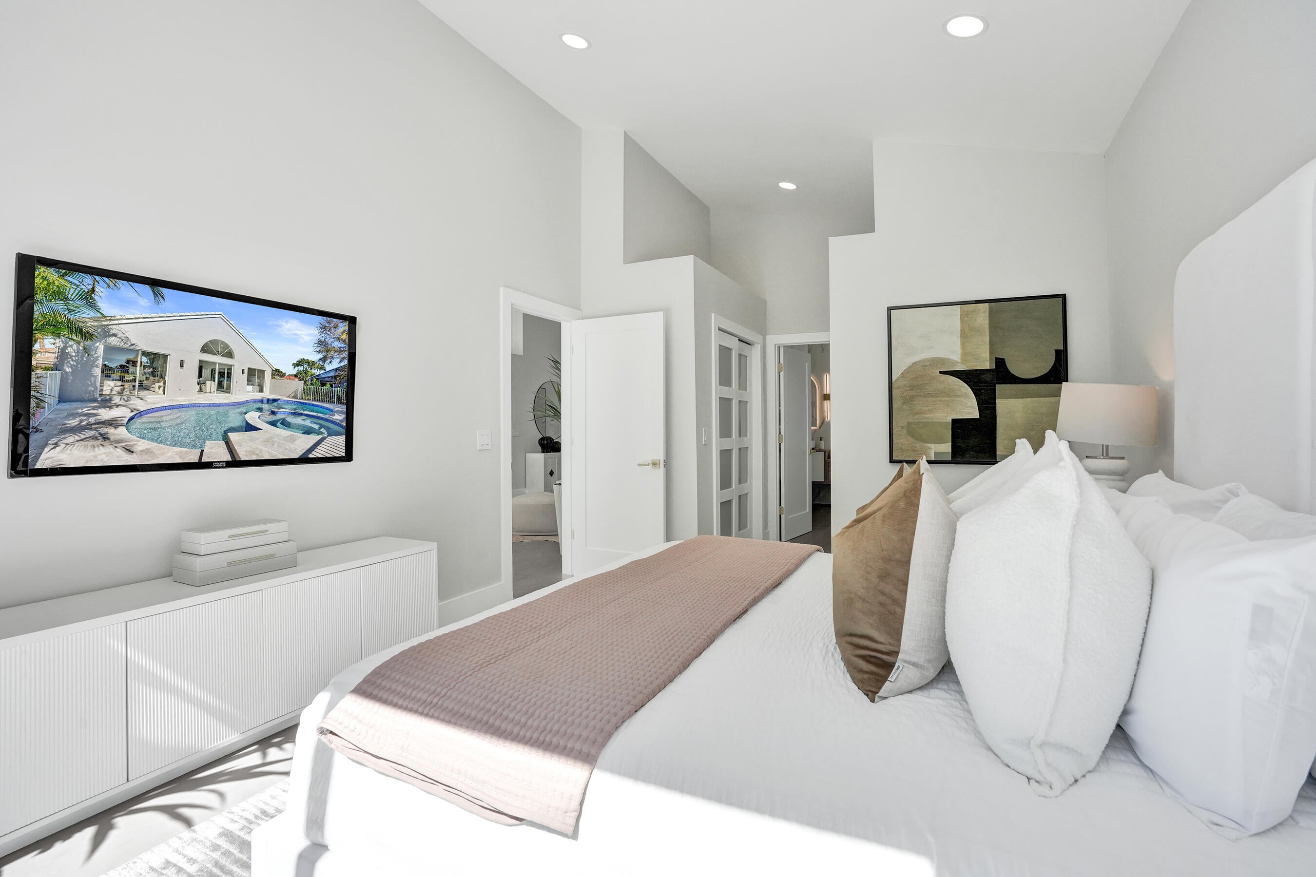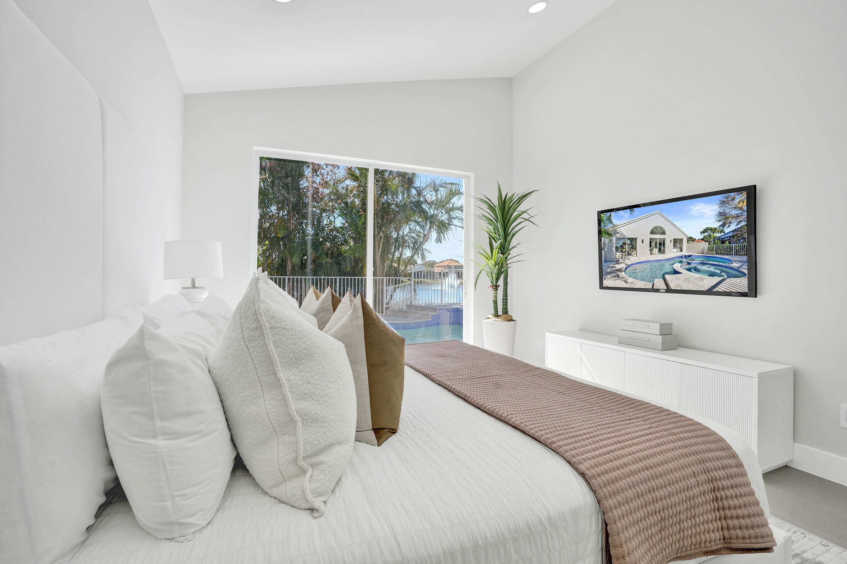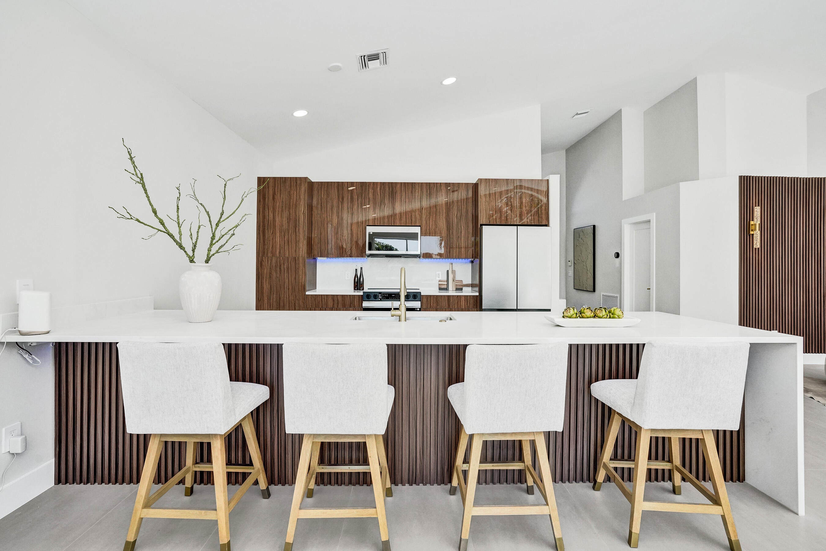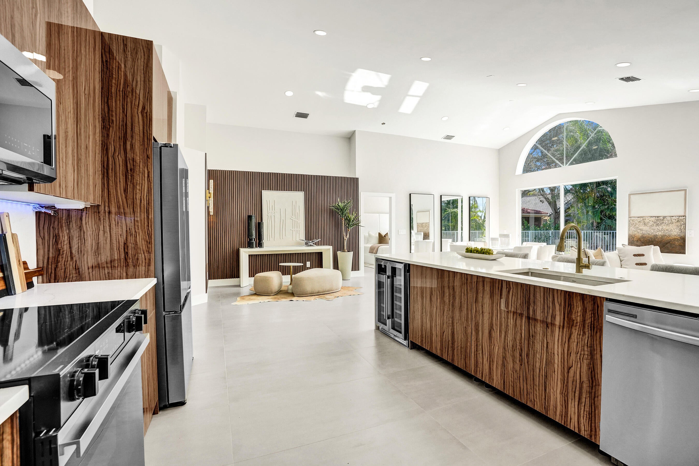 Designed for those who appreciate refined living and effortless luxury, this fully reimagined lakefront pool home delivers a rare blend of modern design, privacy, and resort-style comfort inside the coveted Polo Trace community.Set on a prime lakefront lot, this 3-bedroom, 2-bath residence spanning approx. 2,250 sq ft has been thoughtfully renovated with high-end finishes and a clean, sophisticated aesthetic throughout. Soaring ceilings and expansive living areas create an immediate sense of openness, while carefully curated materials bring warmth and elegance to every space.At the center of the home, the custom chef's kitchen makes a bold statement--featuring an oversized island with fluted detailing, rich wood cabinetry, sleek stone countertops, designer lighting and refined goldaccents. The kitchen flows seamlessly into the main living and dining areas, all oriented to capture the calming lake views beyond. The primary suite is a private retreat, complemented by a spa-inspired bathroom with floating dual vanities, full-height slab-style tile, backlit arched mirrors, and premium fixturesoffering a true luxury hotel experience at home. Outdoors, the setting is equally compelling. A private pool and spa overlook the tranquil lake, framed by lush tropical landscaping and designed for both entertaining and everyday relaxation. From morning coffee by the water to sunset evenings poolside, the outdoor space delivers the lifestyle buyers seek when relocating to South Florida. Major upgrades include a brand-new roof currently pending permits and included in the sale, along with all-new impact windows, doors, and sliders already ordered and scheduled for installation, providing peace of mind, energy efficiency, and storm protection. Located within Polo Trace, residents enjoy a country-club-style lifestyle without mandatory membership feesfeaturing a grand clubhouse, full-service restaurant and bar, resort-style pools, fitness center, tennis, pickleball, walking trails, and 24-hour gated security. This is a turnkey opportunity tailored for buyers seeking a lock-and-leave luxury home, seasonal retreat, or full-time residence with style, comfort, and long-term value.