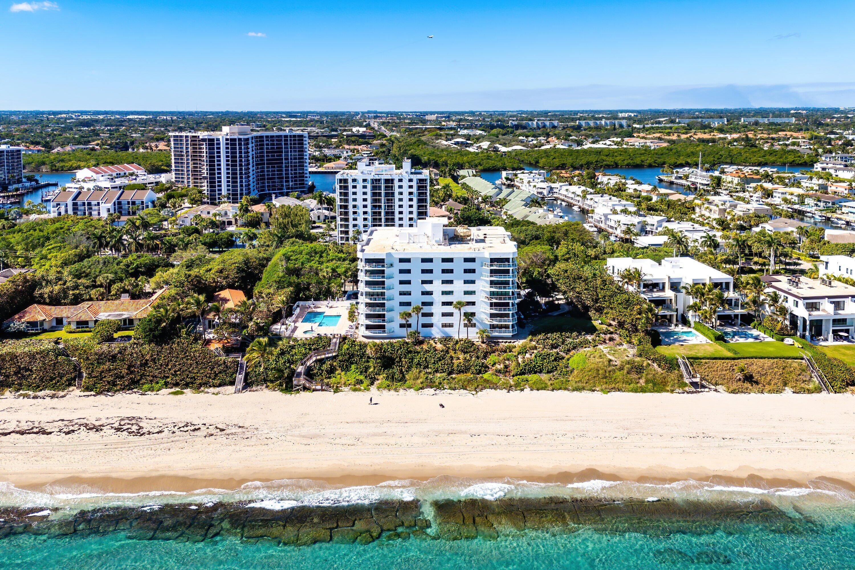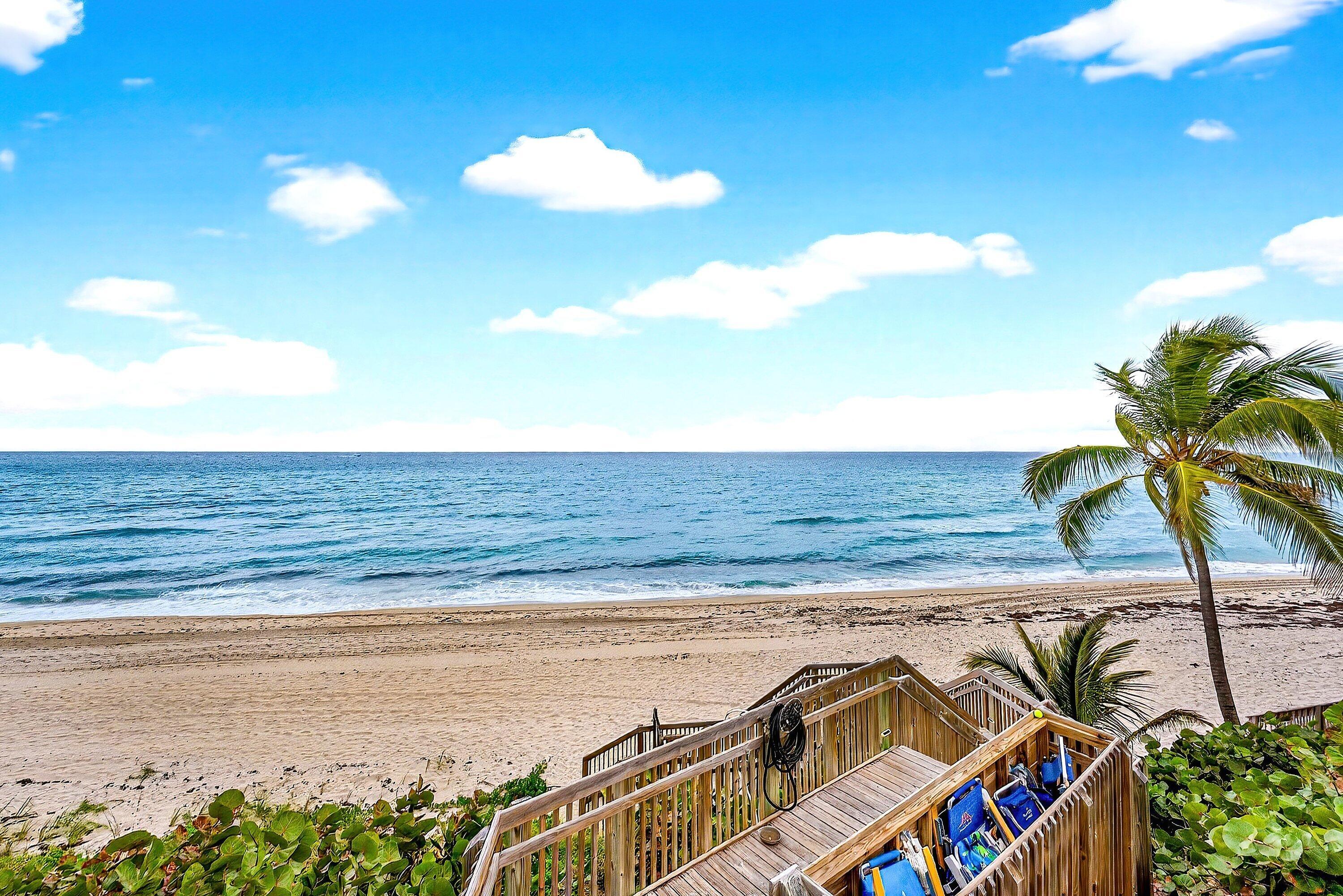 Don't miss this rare opportunity to own the lowest-priced 2,600-square-foot, 3 Bed, 3 Bath beachfront residence in all of Highland Beach and Boca Raton. Ready for your vision, this spacious corner condo offers the perfect chance to customize while building upon a solid foundation.Located in a premier boutique oceanfront building with only 26 exclusive residences, the property has completed concrete restoration, updated common areas & amenities, milestone inspections completed. All assessments are paid in full, with fully funded reserves--offering peace of mind and long-term value.Beachfront living, privacy, and valuethis is a standout opportunity you won't want to miss.Ocean View " Directly on the Sand " Privacy " All Assessments Paid " Funded Reserves The residence features an open floor plan ideal for entertaining, with sweeping ocean views from the living room and dining area. A split-bedroom layout provides privacy and flexibility, including three bedrooms comprised oftwo primary suites (one with its own private entrance from outside the condo) plus a third bedroom currently used as a denand three full baths. Impact-resistant glass throughout (SIW) enhances safety and comfort. This pet-friendly building allows two pets up to 20 lbs each and includes a dedicated dog park, adding to the relaxed coastal lifestyle. New POMA glass railing system is installed on all the balconies, top of the line SIKA waterproofing, and building construction is reinforced concrete for longevity. Enjoy one of the most convenient locations with all you need just moments away, top notch Boca Raton schools, and easy access to shopping, restaurants and the wonderful outdoor amenities & parks. Beachfront living, privacy, location and value- this is a standout opportunity you won't want to miss.