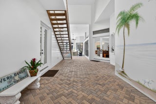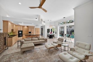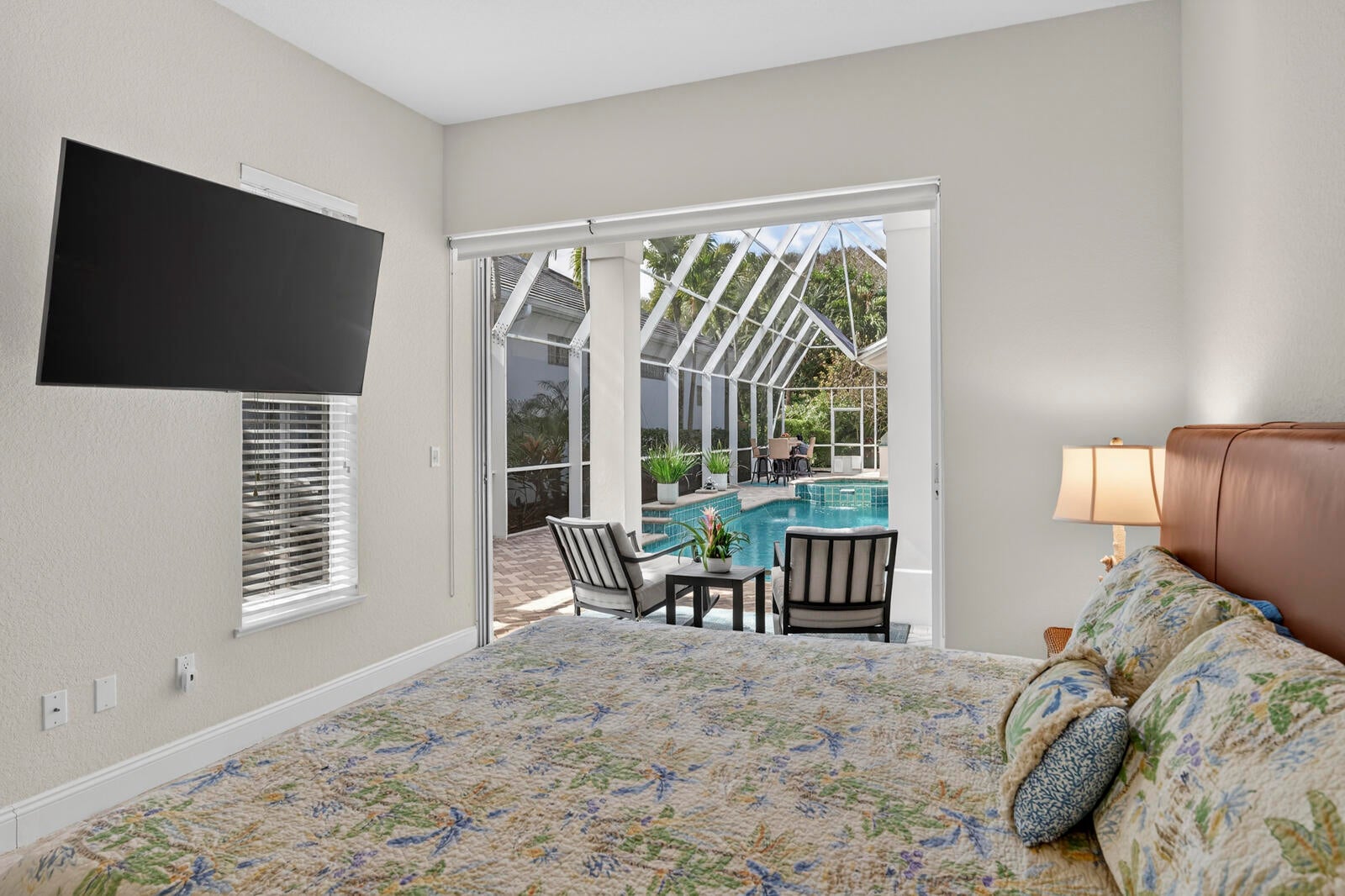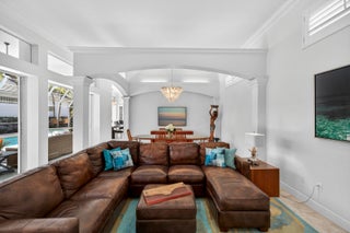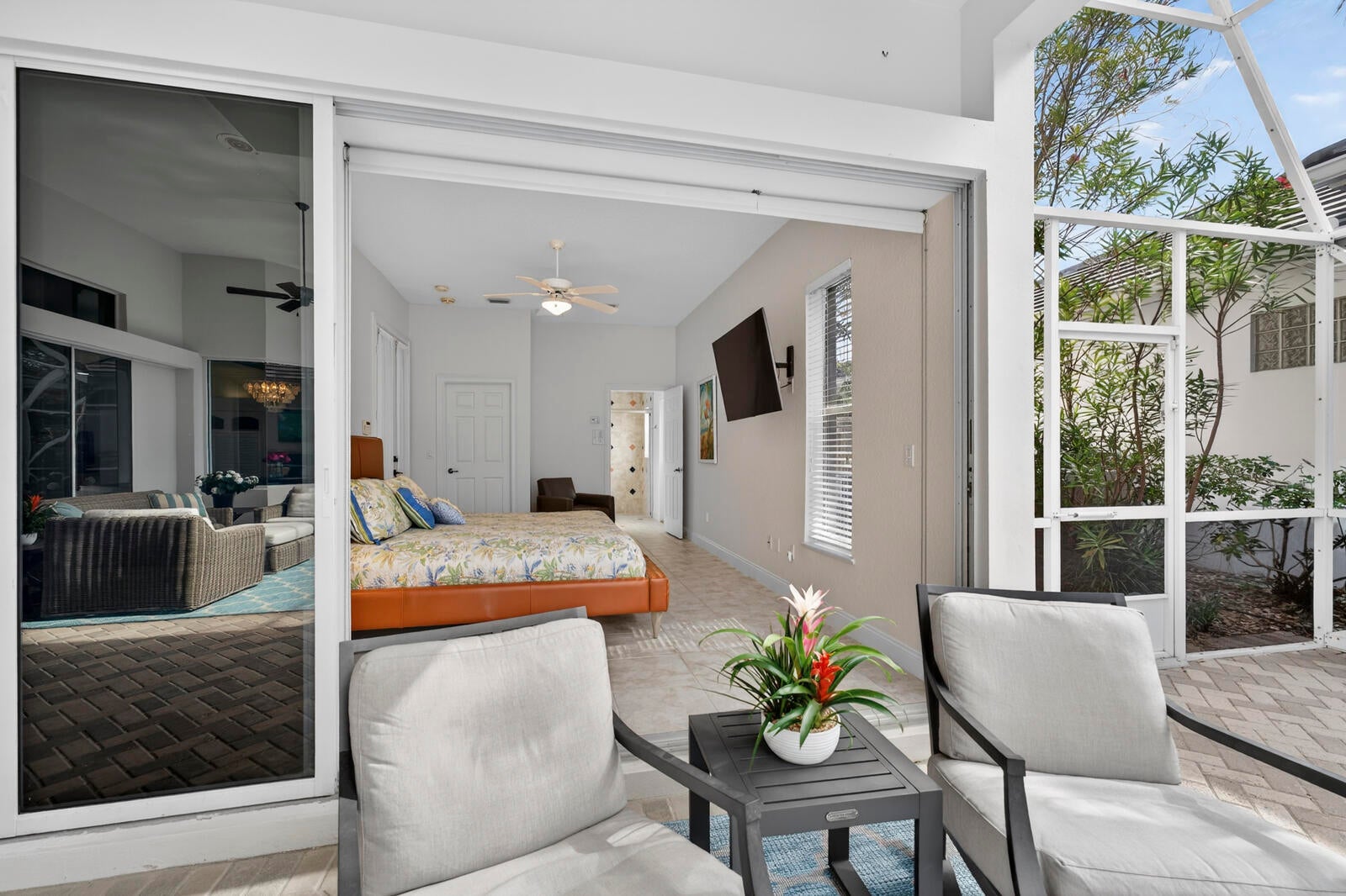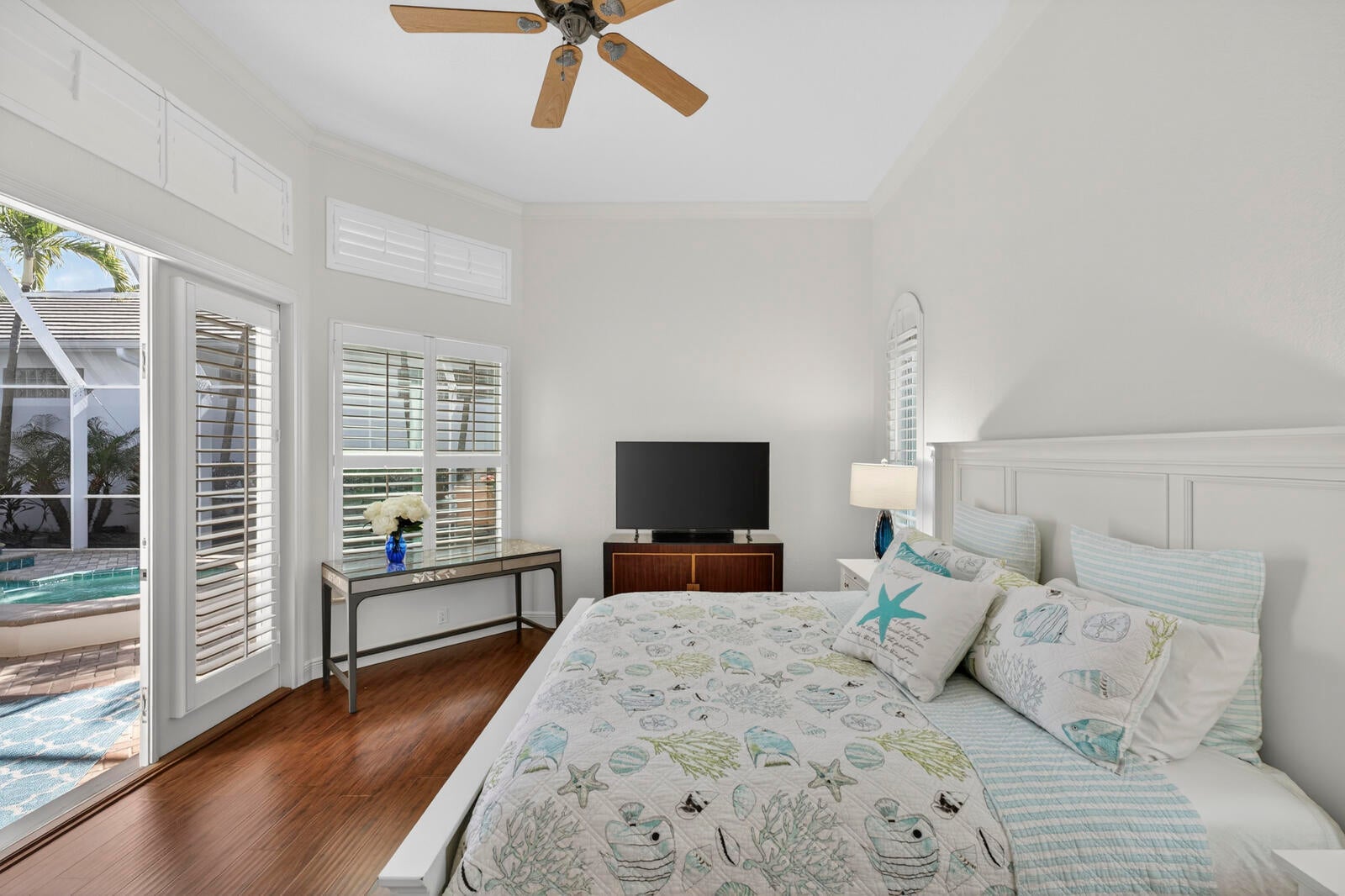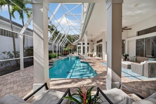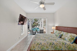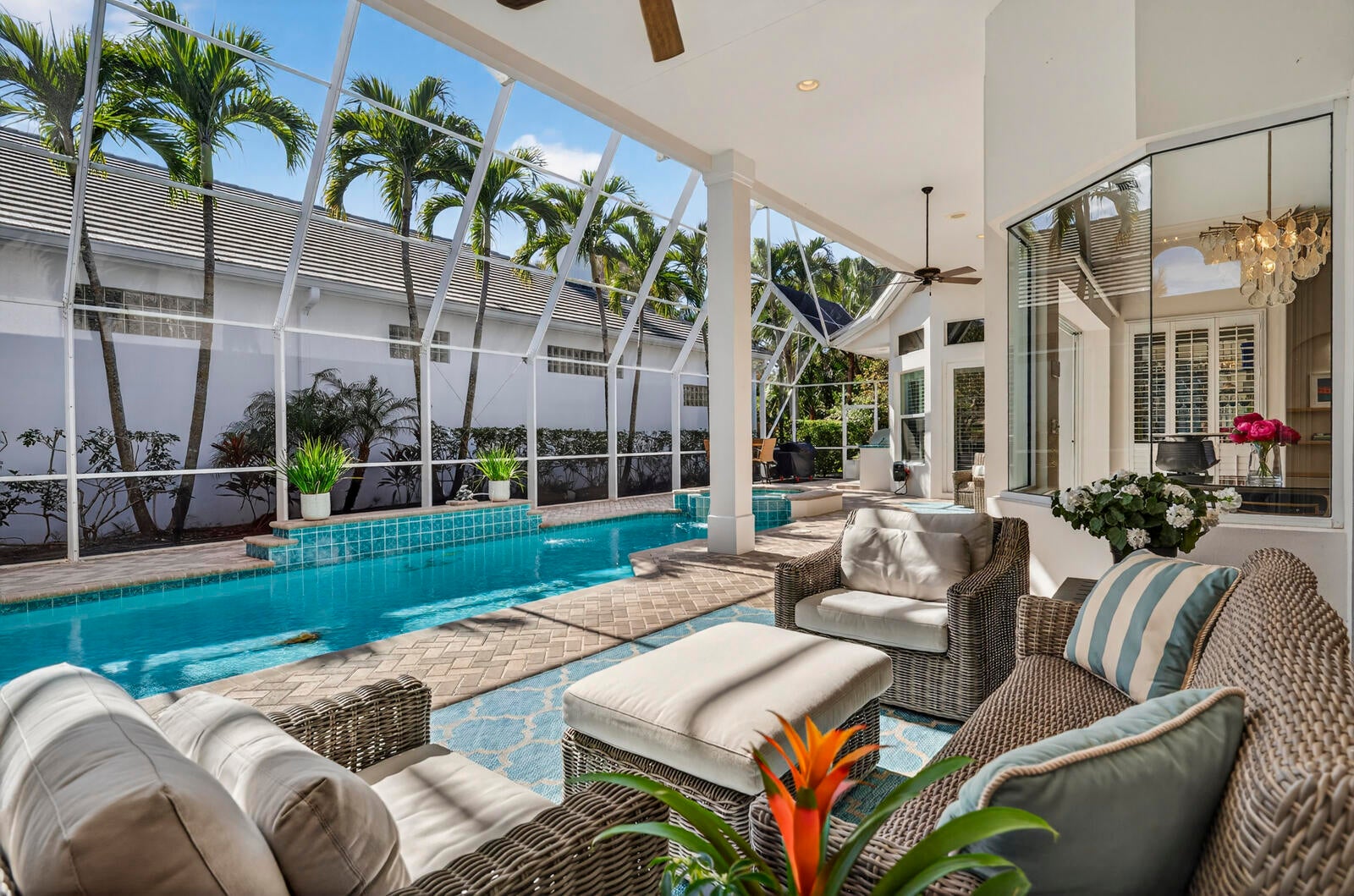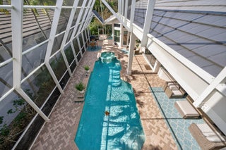 Prestigious gated community of 20 residences, steps away from the beach. The main living area includes a spacious primary suite opening to the pool, and a second en-suite. The guest house features 2 bedrooms and 2 baths, each with a separate entrance--ideal for multi-generational living or a home office. Designed for outdoor entertaining with five sets of pocket sliders flowing to the enclosed heated pool and spa. New Generac generator, 13 new impact windows, 2023 roof, 12' ceilings, and a fenced-in yard.