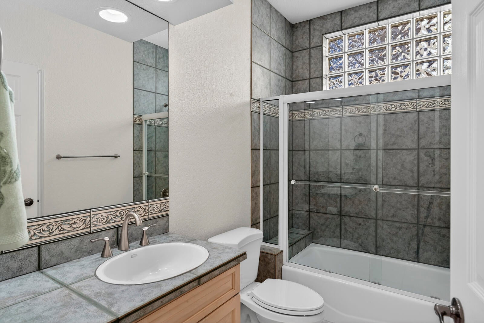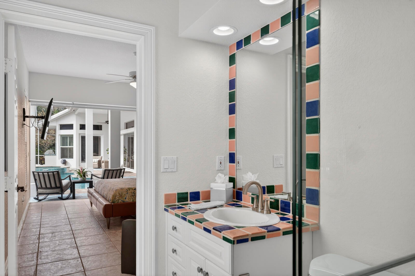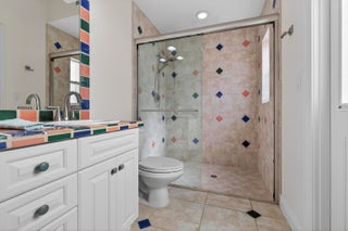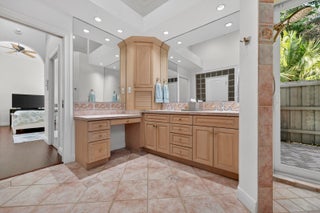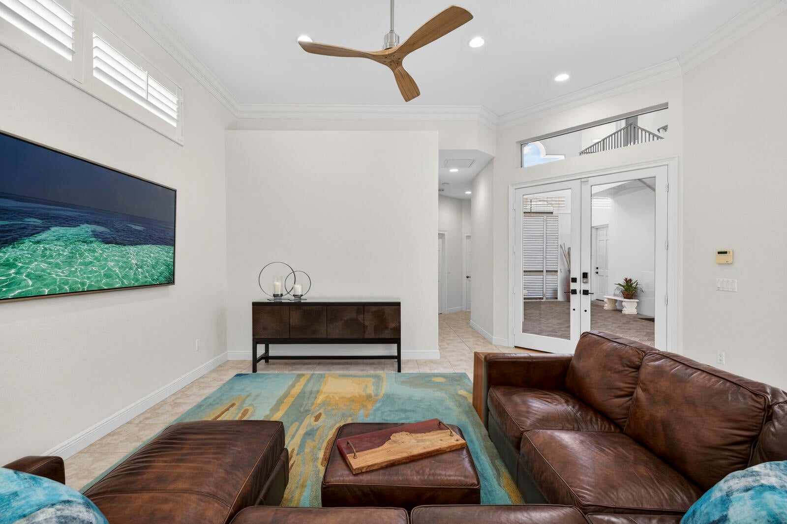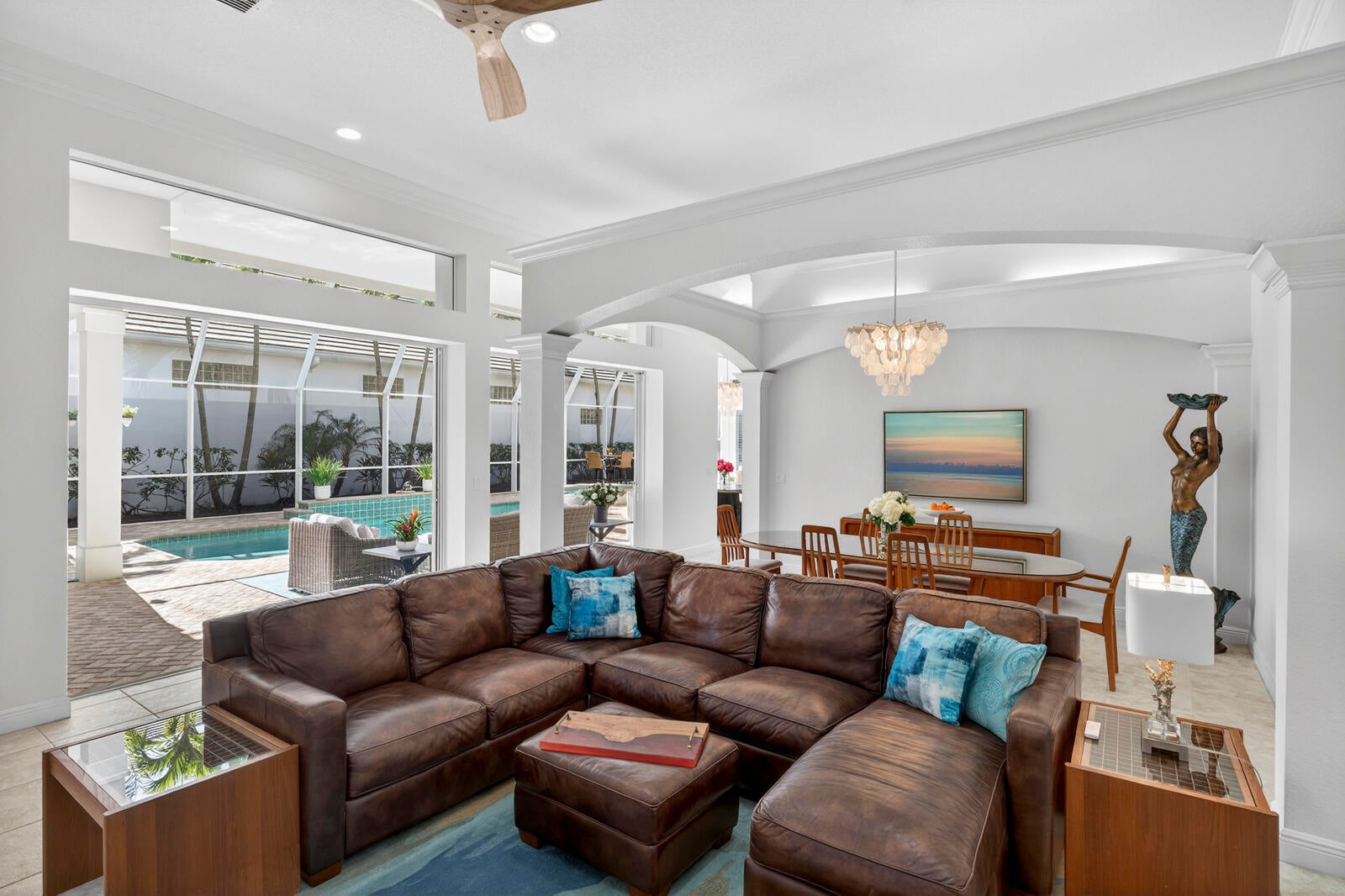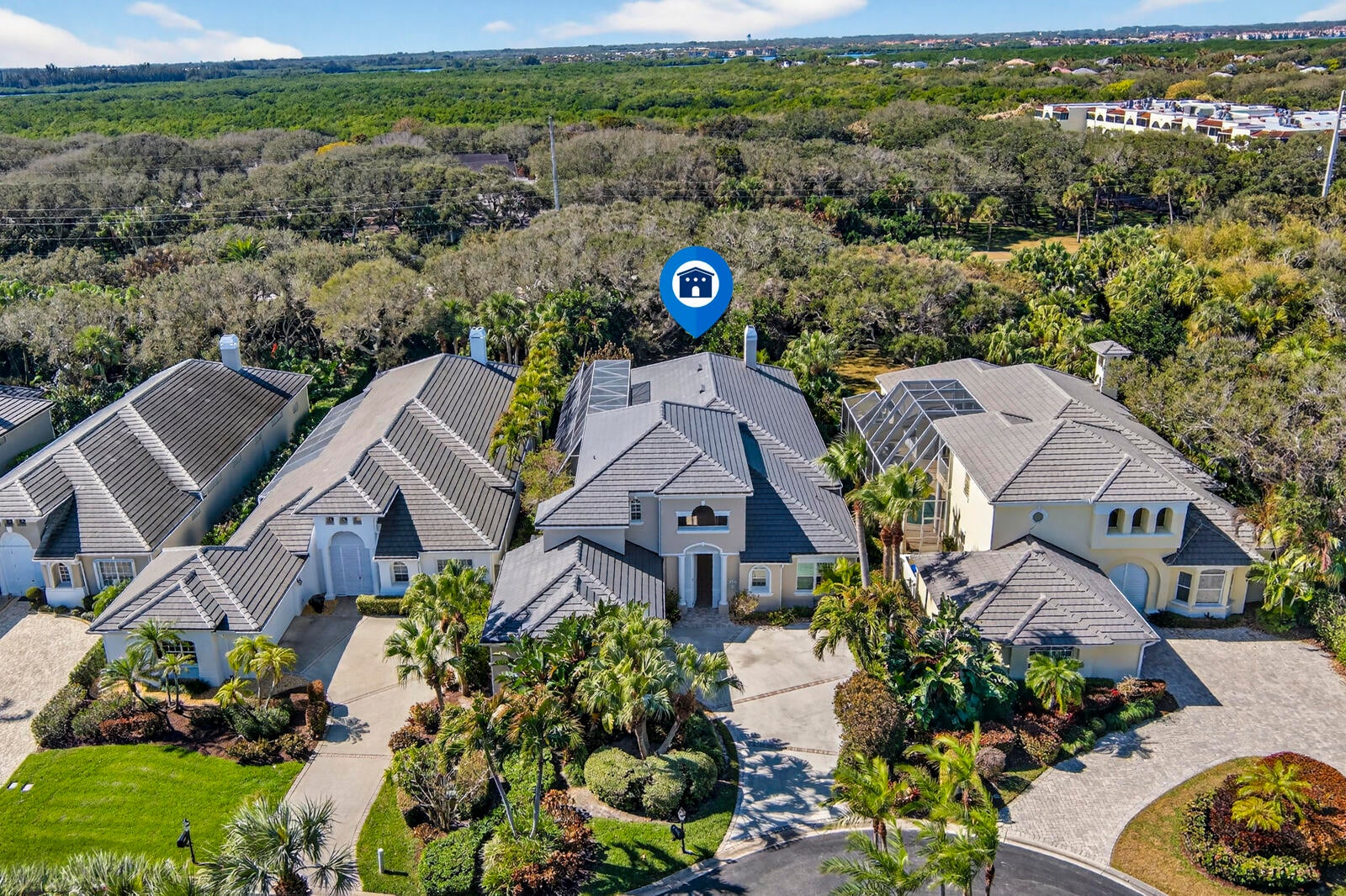 Prestigious gated community of 20 residences, steps away from the beach. The main living area includes a spacious primary suite opening to the pool, and a second en-suite. The guest house features 2 bedrooms and 2 baths, each with a separate entrance--ideal for multi-generational living or a home office. Designed for outdoor entertaining with five sets of pocket sliders flowing to the enclosed heated pool and spa. New Generac generator, 13 new impact windows, 2023 roof, 12' ceilings, and a fenced-in yard.