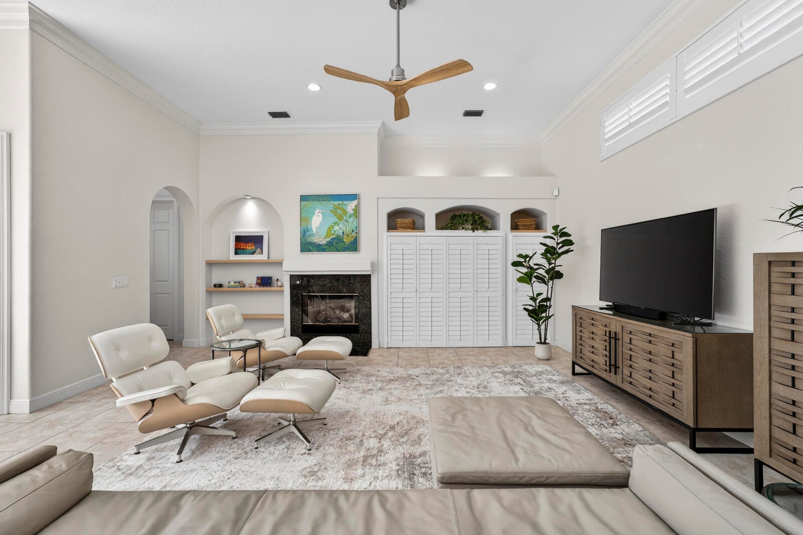Built-in Shelves, Cook Island, Pantry, Volume Ceiling, Walk-in Closet, Wet Bar, Fireplace(s)