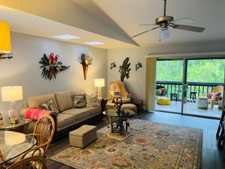 Spacious 2nd floor 2 bedroom 2 bath condo. Completely remodeled. End unit affords extra windows and skylights which allow an abundance of natural light. Laminate flooring throughout the living and kitchen area. Beautifully renovated bathrooms. Kitchen boasts newer stainless steel appliances and white shaker cabinets. Full size washer and dryer. Impact windows with the exception of the sliding doors, which have roll up shutters for easy storm preparation. Private lanai with pleasant woodland view. Excellent location within community. Pool, clubhouse and grilling area nearby. Minutes to the beach and local restaurants. Monthly maintenance fee of $450 includes common grounds, pool, exterior insurance and exterior maintenance. Great for full time or a wonderful winter retreat!All measurements are approximate and should be verified by Buyer. RV Parking may be available for a fee, and there may be a waiting list. 1 pet maximum, less than 25 lbs., non-aggressive breeds only.