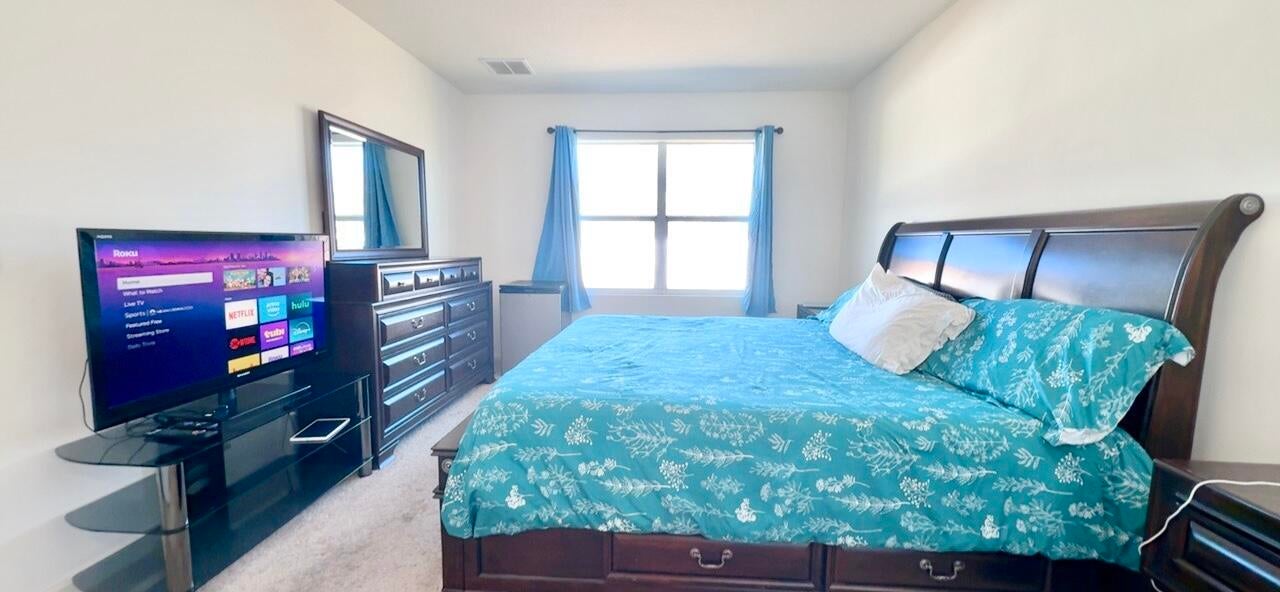 Built in 2023, this highly desirable Cali floor plan blends modern design, smart technology, and everyday functionality in a thoughtfully designed split layout offering 4 bedrooms and 2 bathrooms. Upon entry, you're welcomed into a bright, open-concept living space ideal for both relaxing and entertaining. The heart of the home is the expansive kitchen, featuring stainless steel appliances, abundant cabinetry, a walk-in pantry, and a huge center island that provides generous space for meal prep, casual dining, and gathering with family and friends.This smart home is equipped with modern features designed for convenience, efficiency, and peace of mind. The private primary suite is tucked away from the secondary bedrooms, creating a peaceful retreat.The spa-inspired ensuite includes dual sinks, a stand-up shower, a separate toilet room for added privacy, and a spacious walk-in closet. The secondary bedrooms are well-sized and share a guest bathroom with a tub and shower combo, perfect for family or visitors. Enjoy outdoor living on the covered patio overlooking a huge backyard with plenty of room for a pool, outdoor kitchen, play area, or future entertaining space. With contemporary finishes throughout, smart home technology, and move-in-ready appeal, this home offers the perfect combination of comfort, style, and modern living. Call now to schedule a tour!