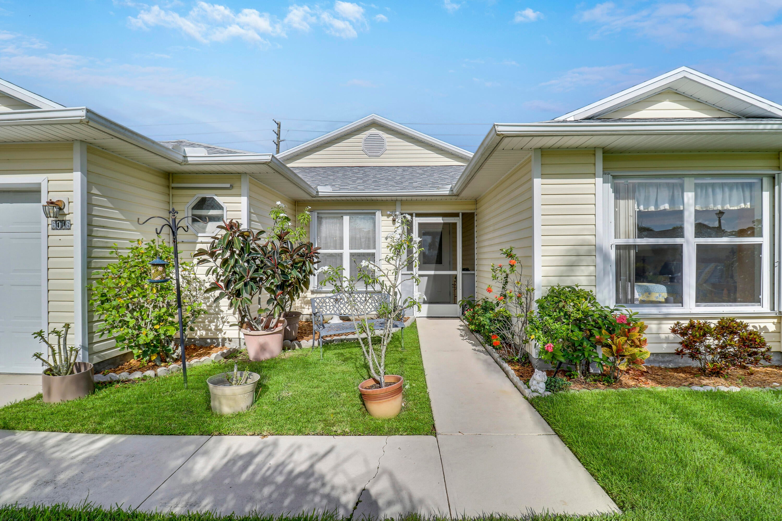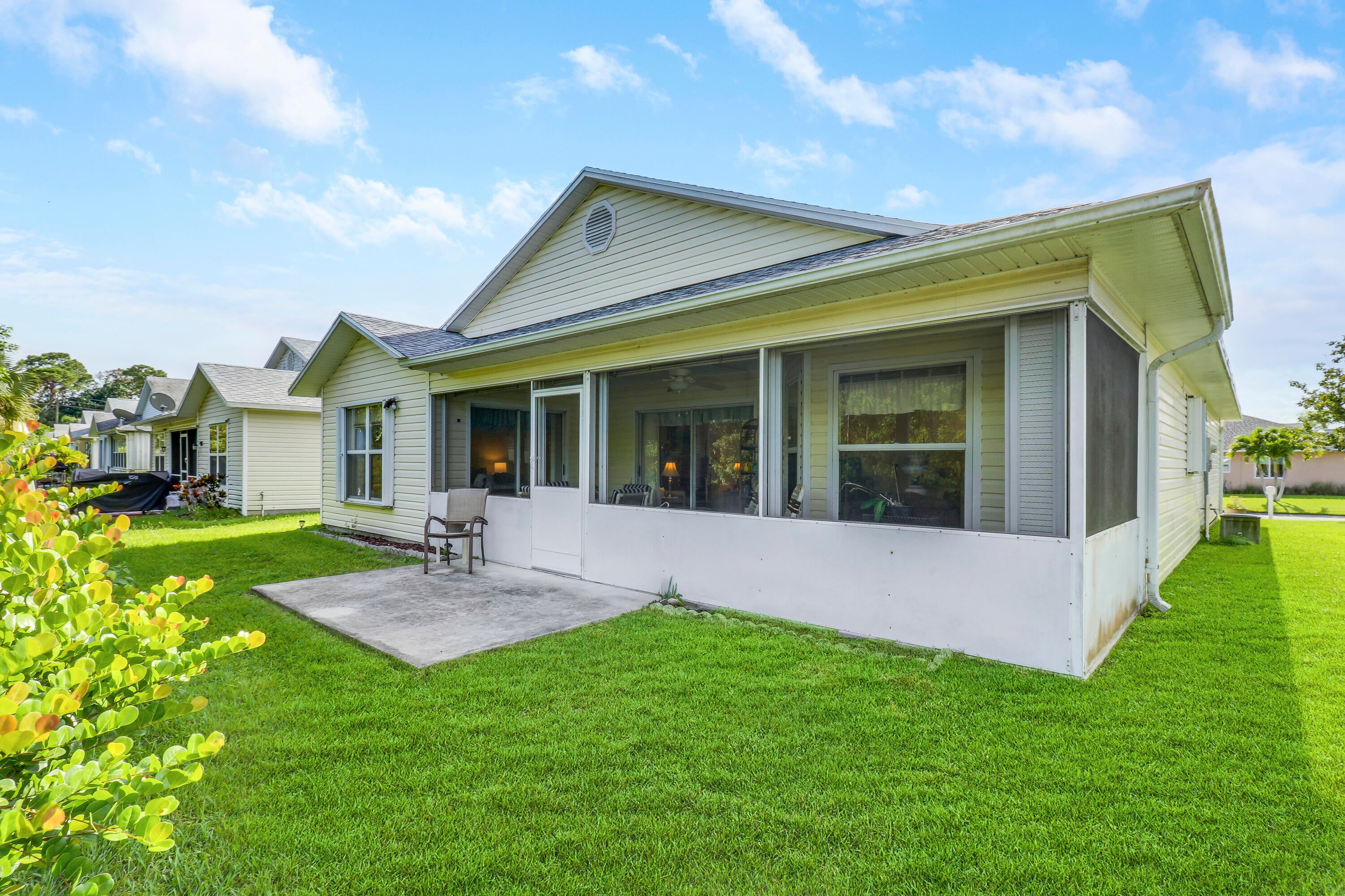 Welcome to this charming, well maintained 2-bedroom, 2-bath home with a 1 car garage located in the active 55+ man-gated community of Palm Grove. This home features a spacious kitchen with resurfaced cabinets, breakfast bar, and eat-in area, along with a large formal dining room ideal for entertaining. The primary suite offers his/her closets and a private bath with garden tub and separate shower. The home backs up to a small canal providing added privacy and includes a screened in patio perfect for relaxing or enjoying your morning coffee. Palm Grove offers a low HOA and amenities including clubhouse, pool, pickleball, tennis courts, and more. Just minutes from the hospital, dining, shopping, beaches, fishing, and downtown Fort Pierce.