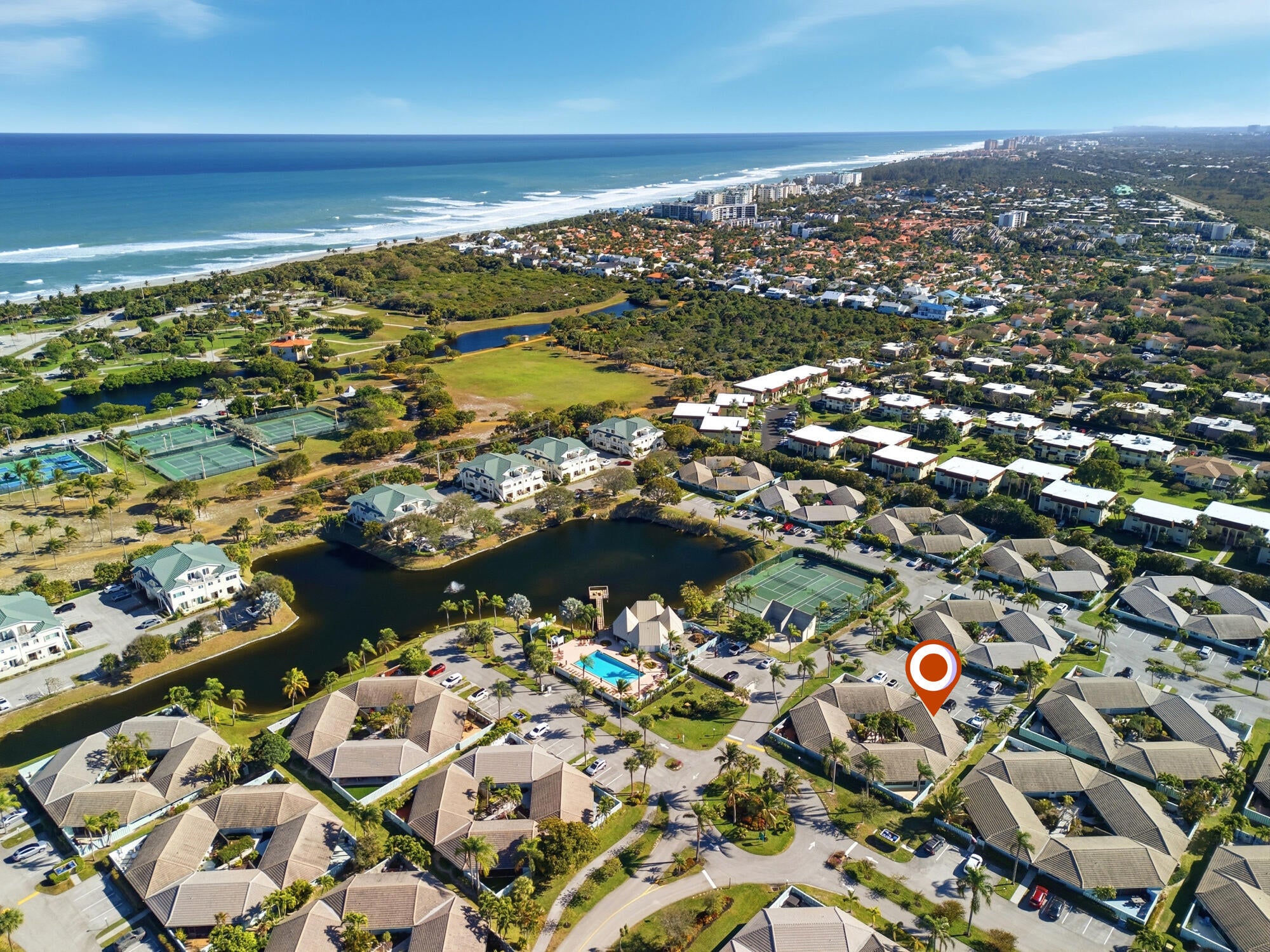 Located within a 6 minute WALK to Jupiters best beach! 1 Mile from Love street, Utiki, Guanabanas, Square Grouper, Lucky Shuck, Topside, The beacon, and much more. Enjoy your beach front Villa in Bella Vista. 2 bedroom, 2 bathroom split floor plan. A/C is 6 years old and the roof was replaced in 2016. Great investment opportunity, priced to sell. Entertaining any and all offers. Seasonal rentals go for $6-8,000 a month; or enjoy it as your new home. Tennis courts, and Pickleball courts located within a 3 minute walk from your front door as well as Carlin Parks outdoor workout stations and track.