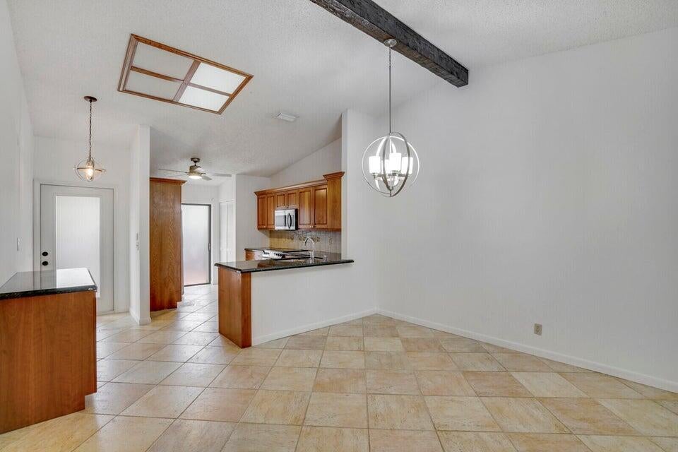 Villa living is like living in a house! This one has a fenced open patio in the front and open patio overlooking green space in the back. The interior has vaulted ceilings, updated kitchen and bathrooms, tile throughout. sliders in kitchen, living room and main bedroom. Plus washer and dryer. Extra space in the FL Room with storage area. All ages welcome! Close to the pool, walking path and shuffle board courts. Located in well maintained, centrally located subdivision.