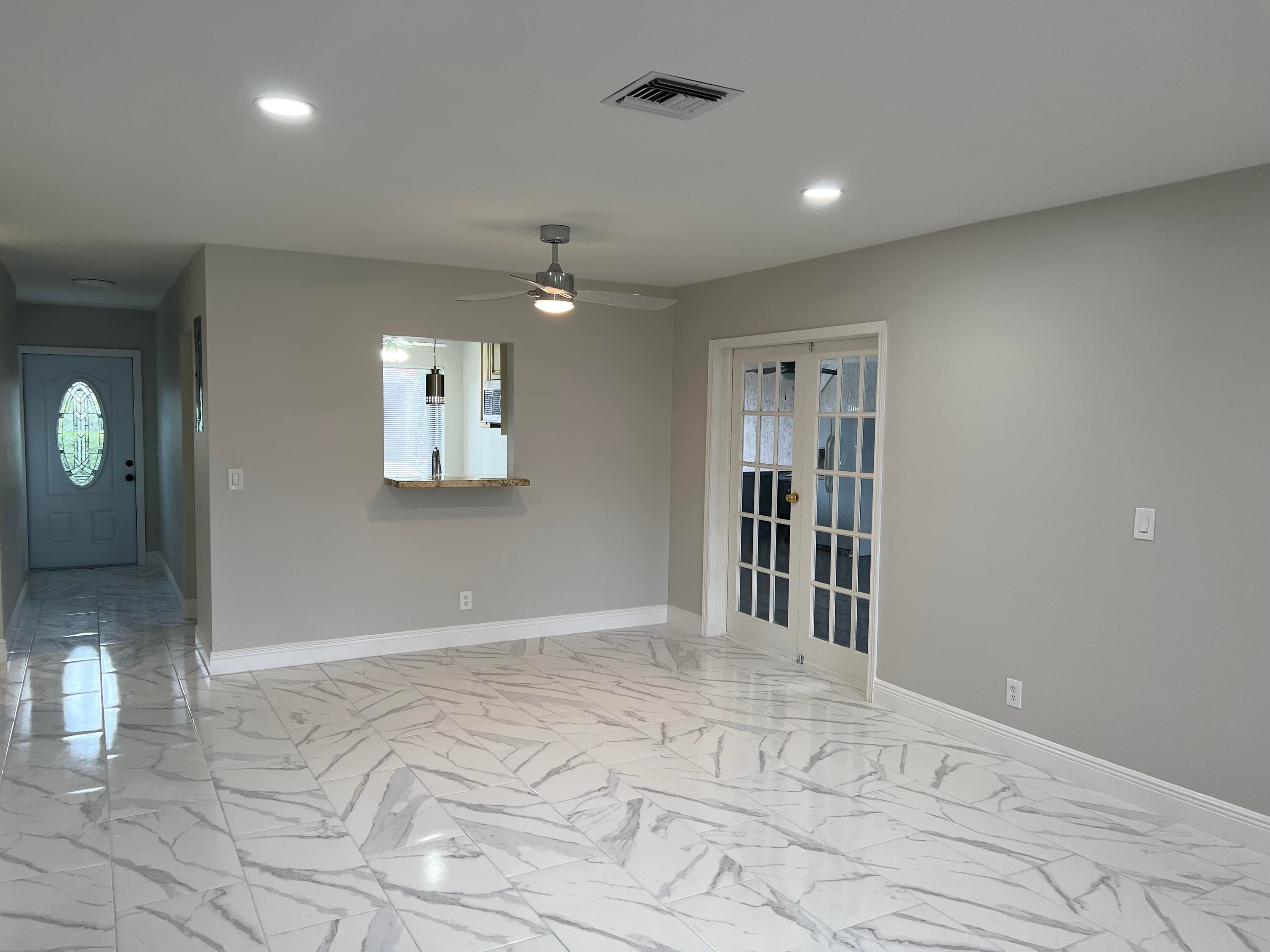 Renovated, New Stainless steel appliances, bathroom vanities ,2 walk-in showers, new toilets, new window treatments. Wood Kitchen cabinets with granite. New 5.1/4 baseboards,freshly painted. New up to code curcuit breaker box. freshly painted driveway. French door leading out to the large screened in patio partially covered with storage room. A/C 2020, All Appliances 2023. Acordian shutters throughout. 1 person must be at least 55 and have a 650 credit score, No kids under 15. Cable,internet,lawncare and pest control incl Close to shopping ,, both major hwys. approx 6 miles to the beach & downtown Delray. Service animal allowed with proper documentation